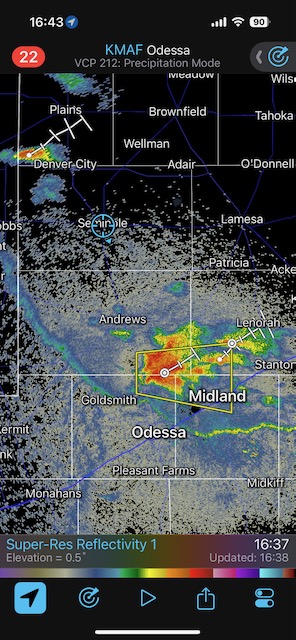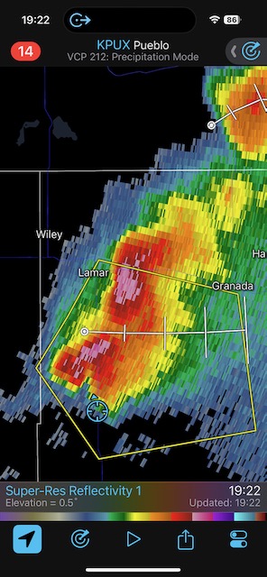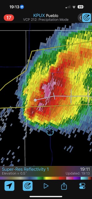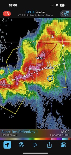 iPhone shots and radar screenshots below.