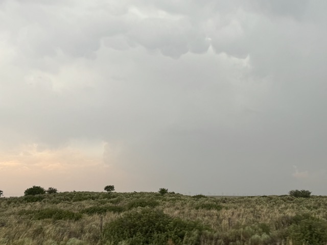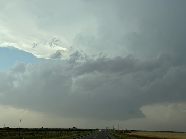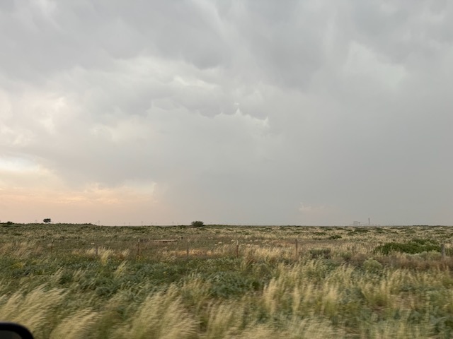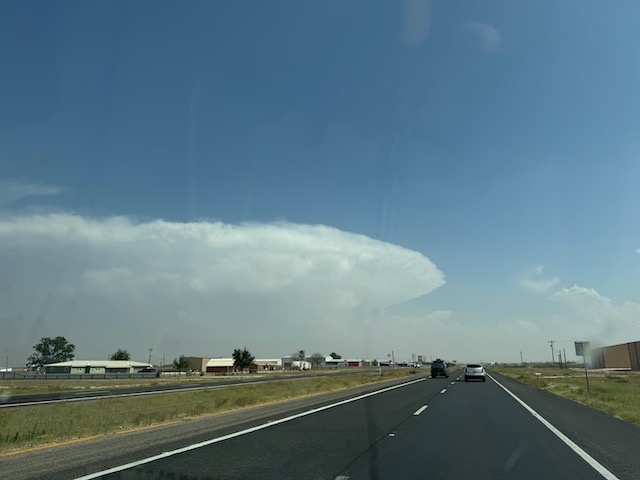 This week was comprised of mad dashes south and north and south and north on the High Plains. Today we had to get ourselves south from the OK Panhandle to a boundary that was south of Lubbock. Tornado chances would be maximized on this boundary. We made it in fairly good fashion to Andrews, with a big and bad cumulonimbus developing to our SSE. Unfortunately, the boundary had progressed a bit farther south than anticipated, and the developing storm down near Odessa was moving away from us. With another supercell getting going not far to our northwest, I elected to turn around south of Andrews and go for the easy catch. Yes, the Odessa/Midland storm produced a pretty tornado south of I-20, and it is possible that we could have seen it had we continued to the south.