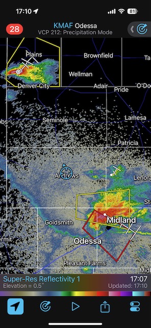 First two are looking SSE at the Odessa supercell. Thereafter are pics of the Denver City/Seminole severe storm.