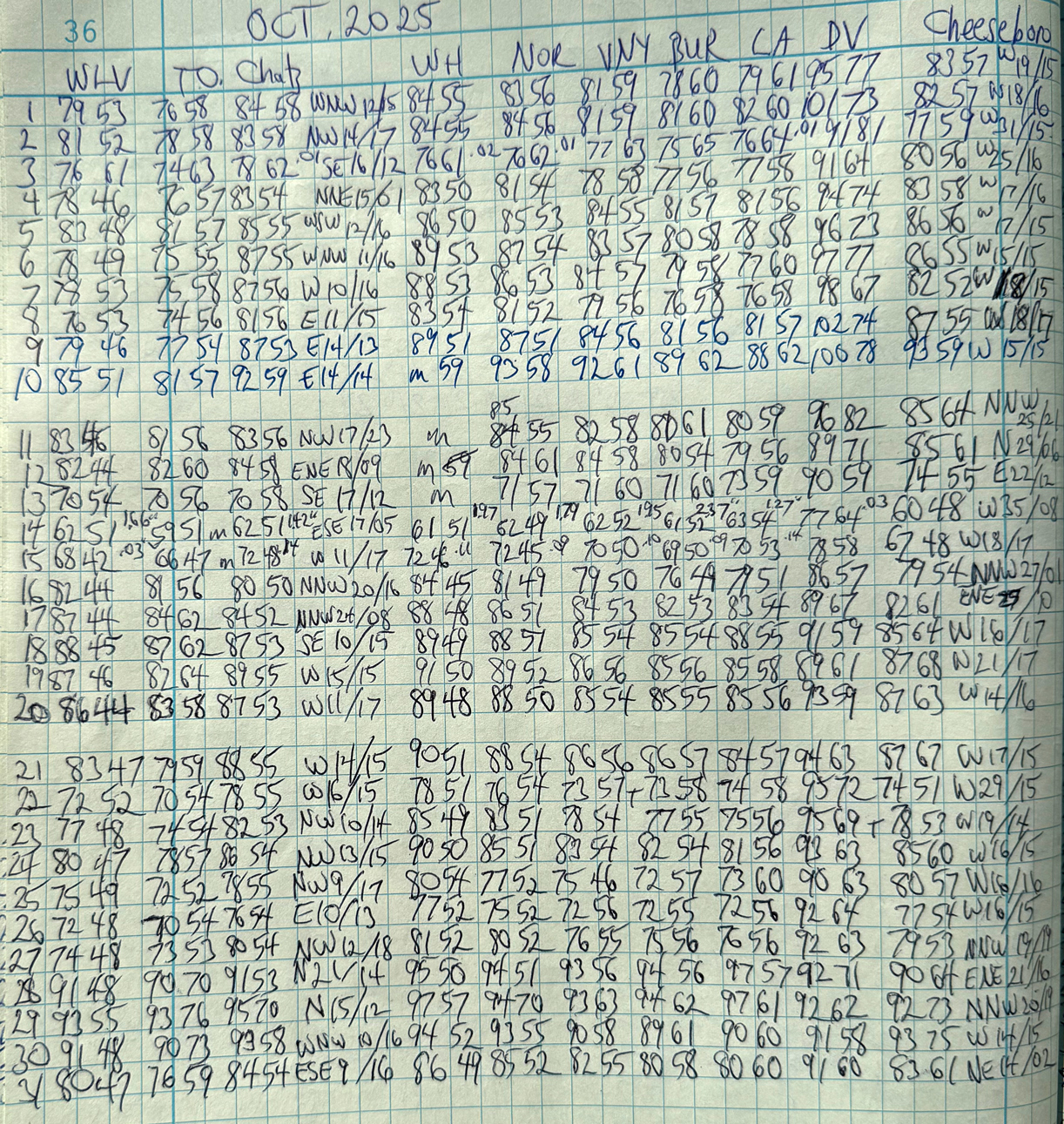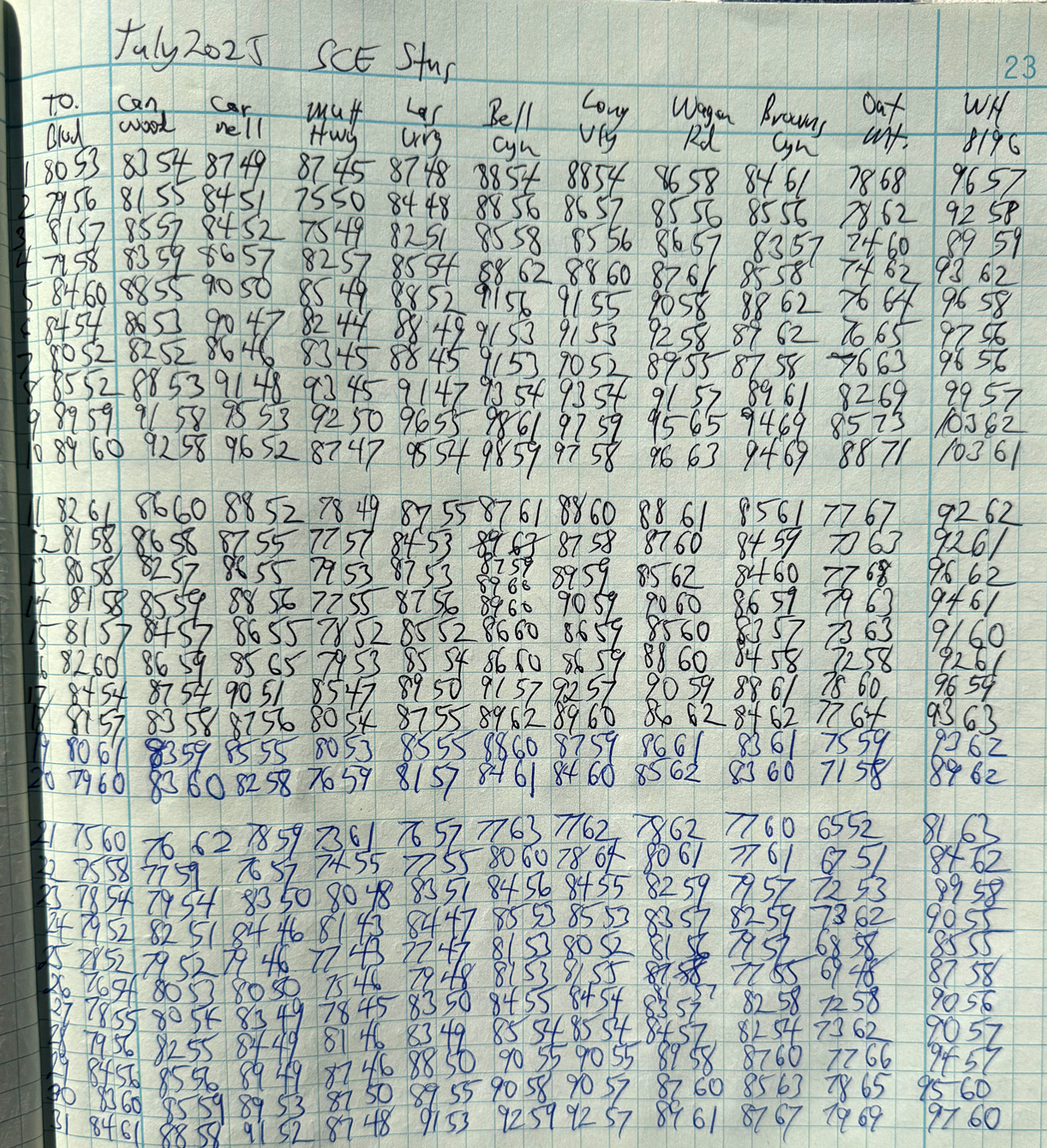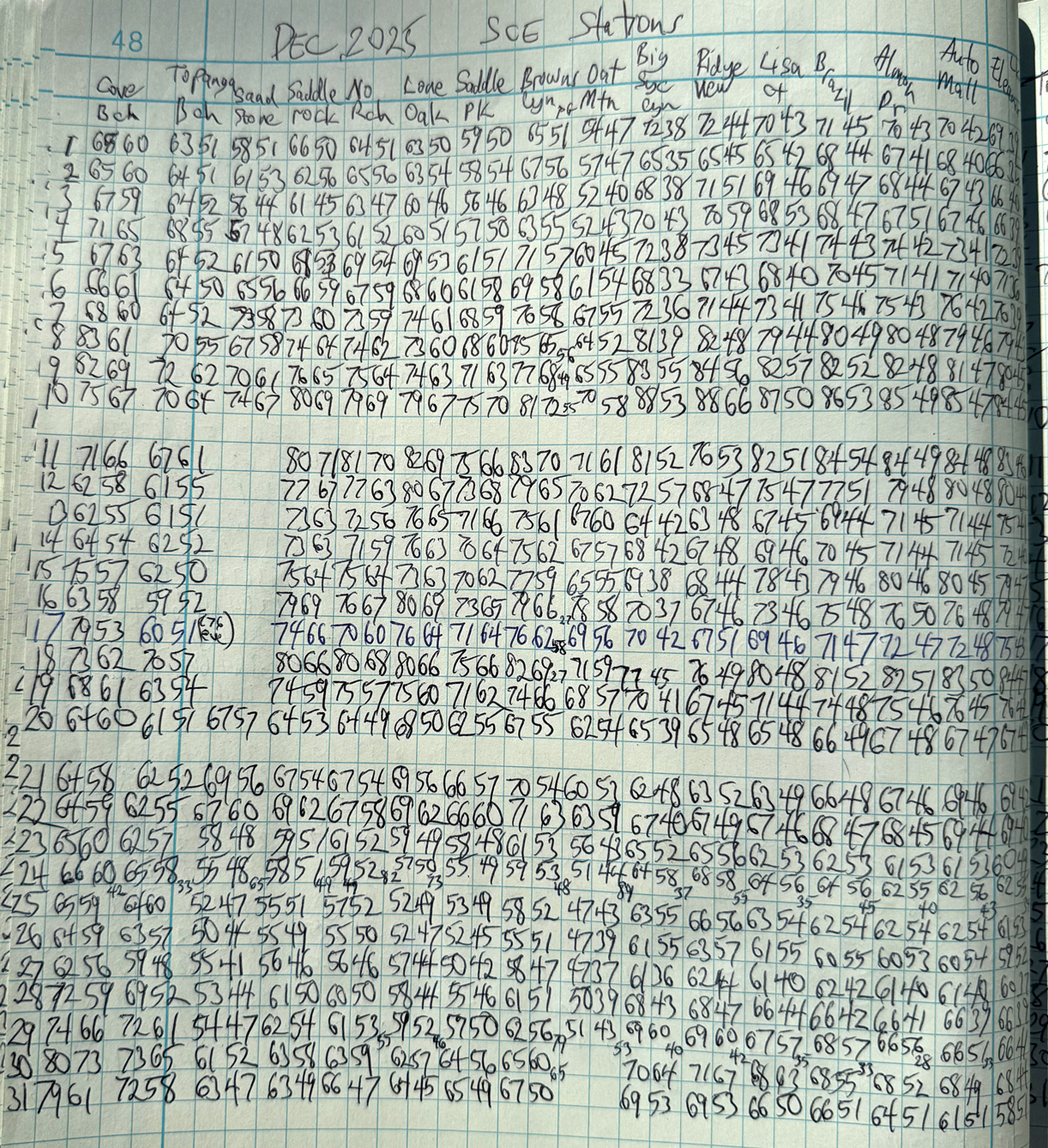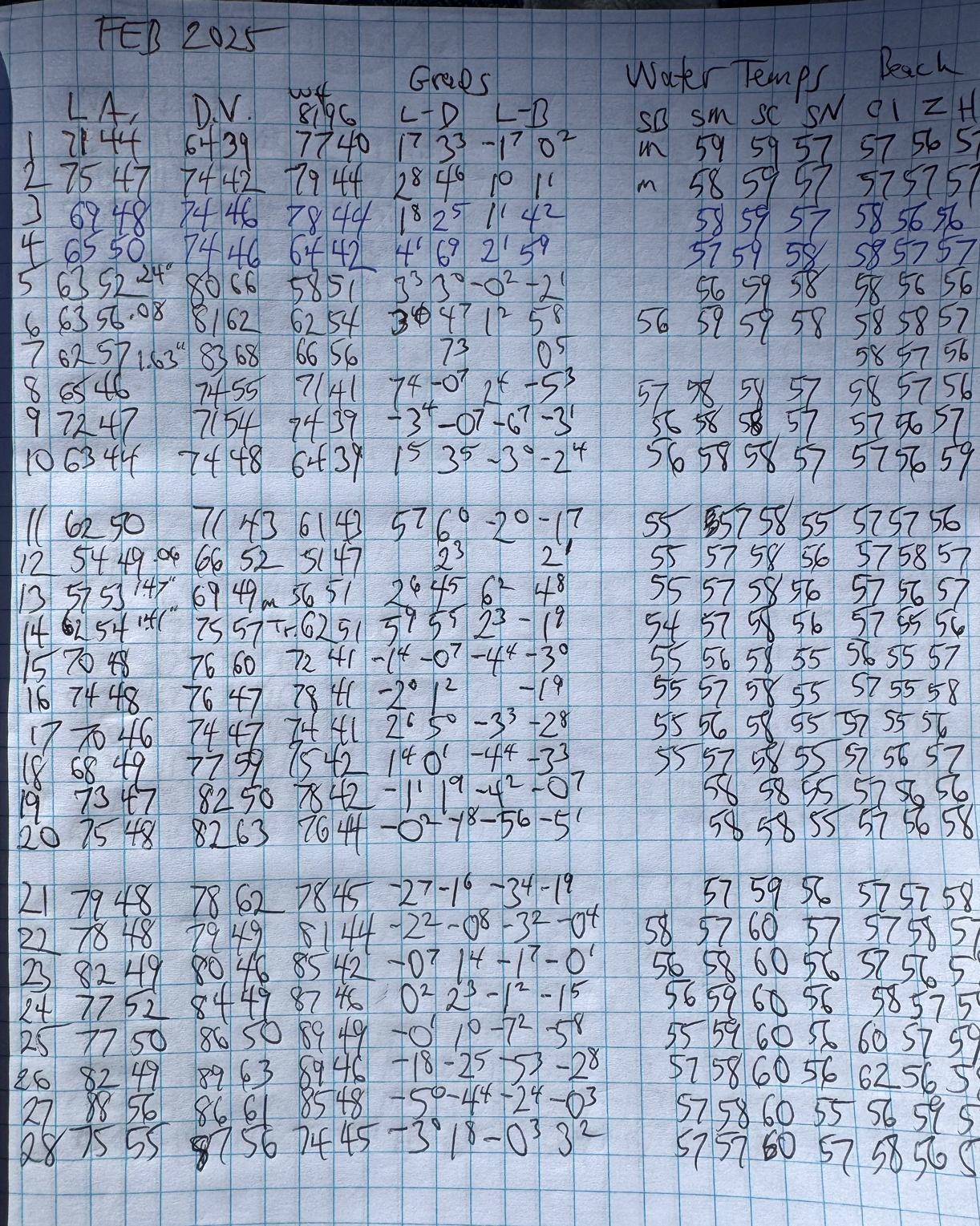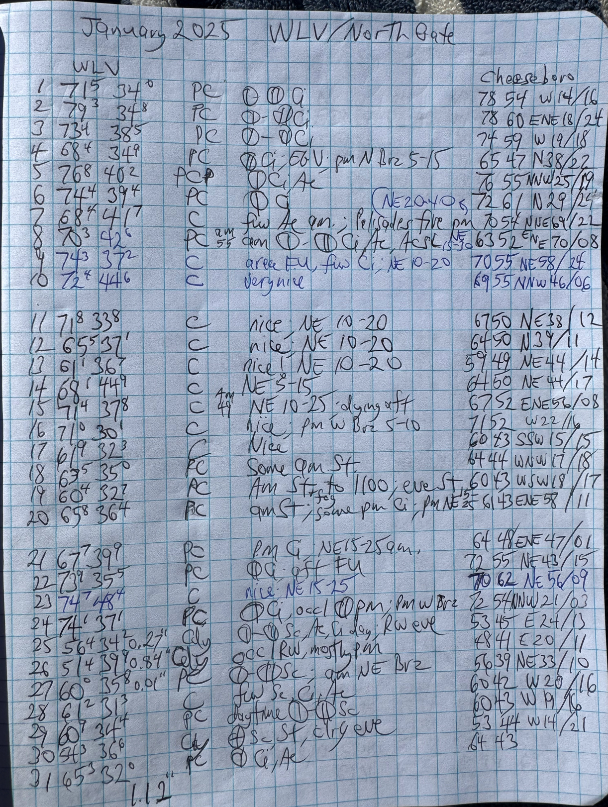 This page contains links to scans of my original hand-written daily weather records from Dec 1997 to about the present (2025 as of now) for Westlake Village primarily. For Dec 1997 to mid 1999 I was in Agoura Hills. Also, this link is for the same daily and monthly records for 1977 to 1997 at Woodland Hills.