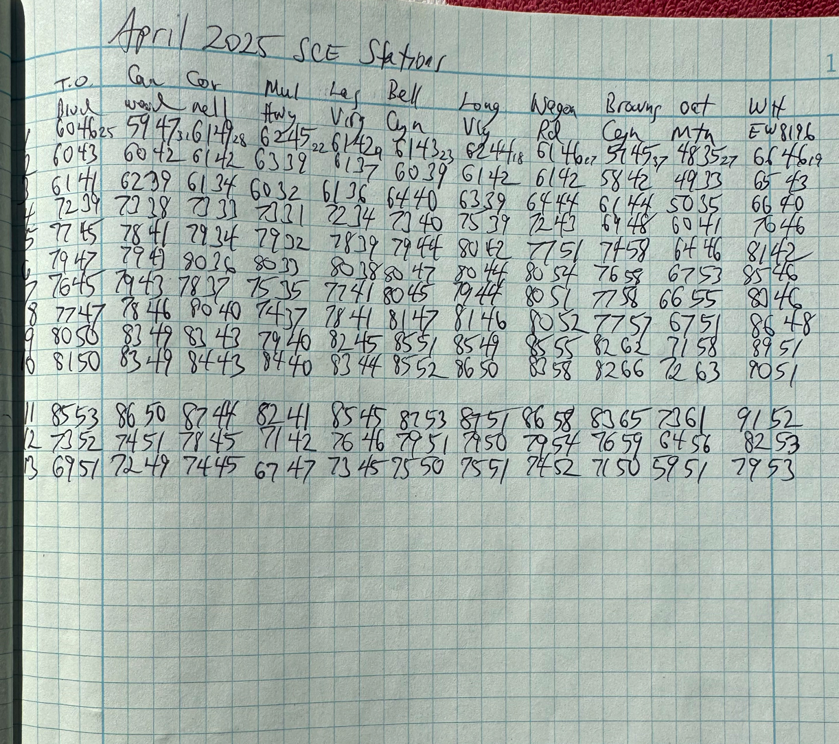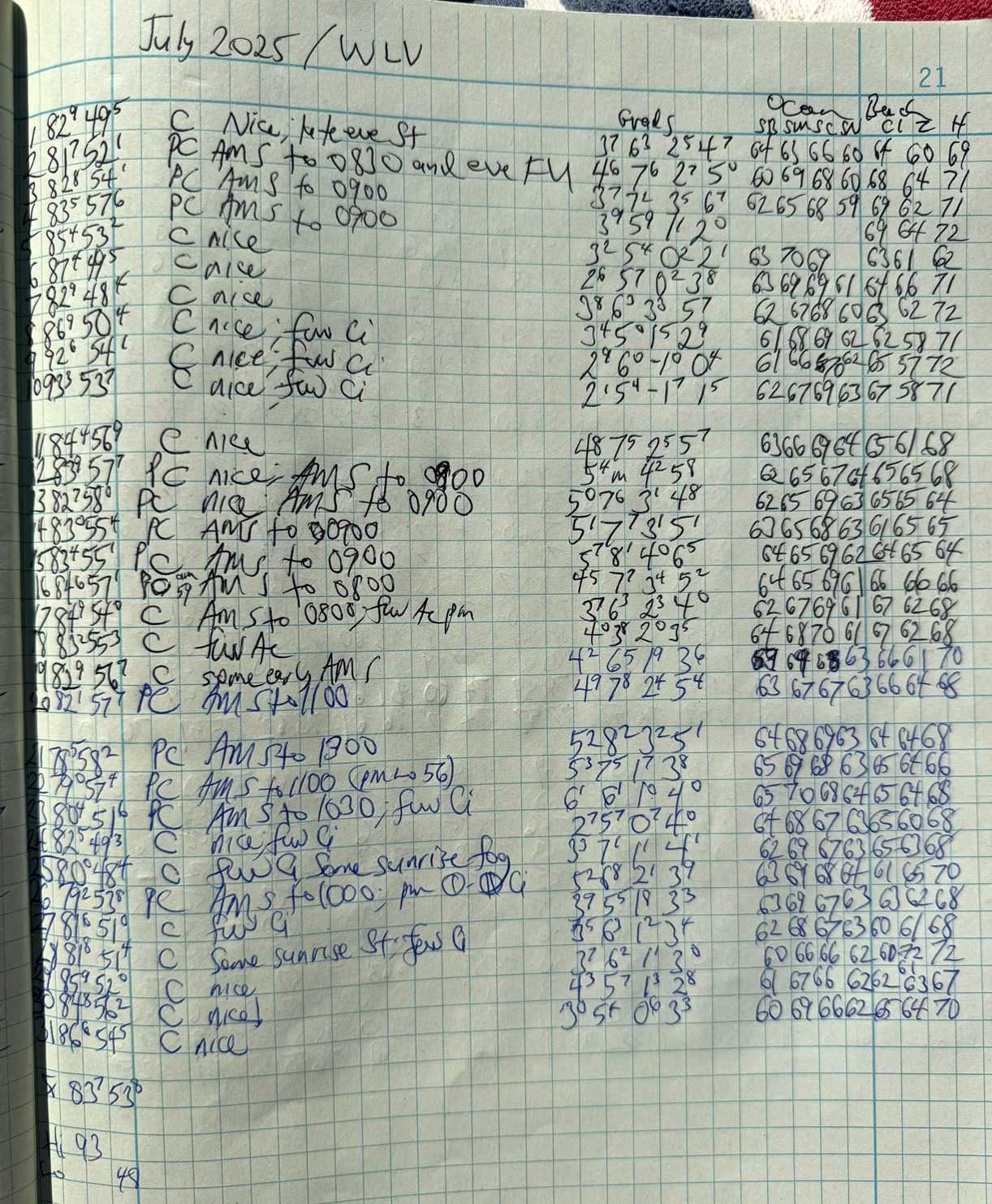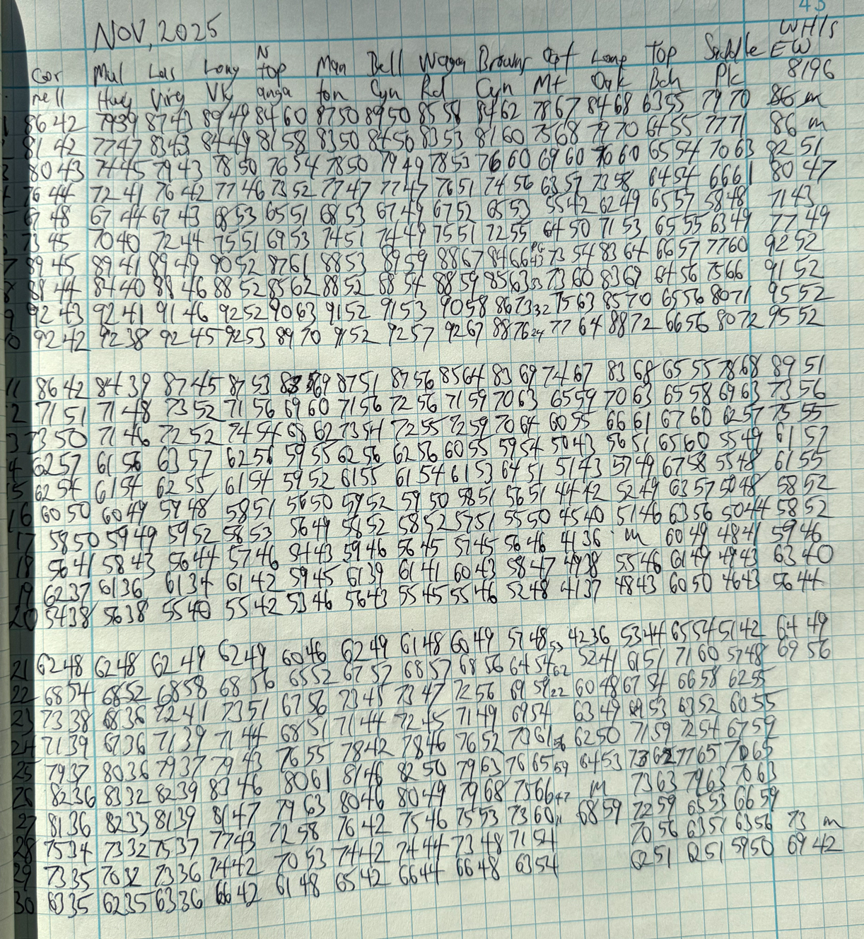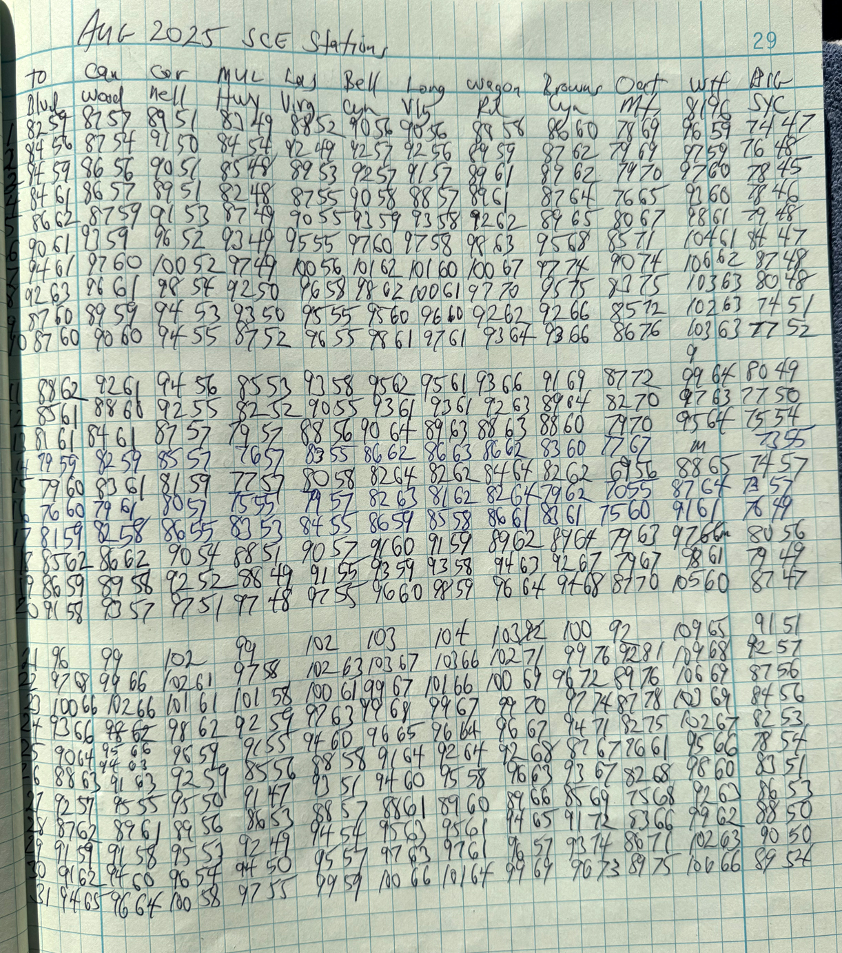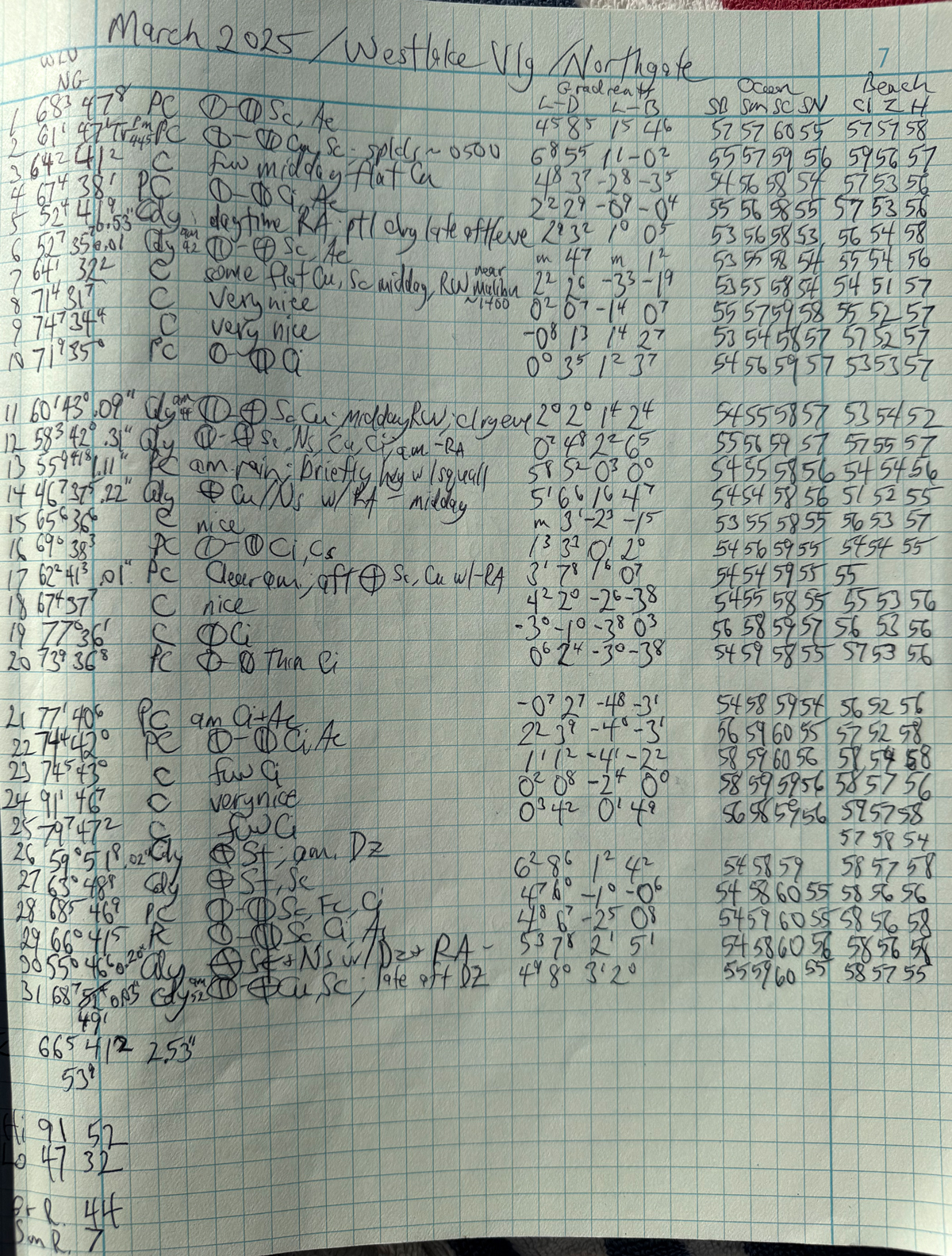 This page contains links to scans of my original hand-written daily weather records from Dec 1997 to about the present (2025 as of now) for Westlake Village primarily. For Dec 1997 to mid 1999 I was in Agoura Hills. Also, this link is for the same daily and monthly records for 1977 to 1997 at Woodland Hills.