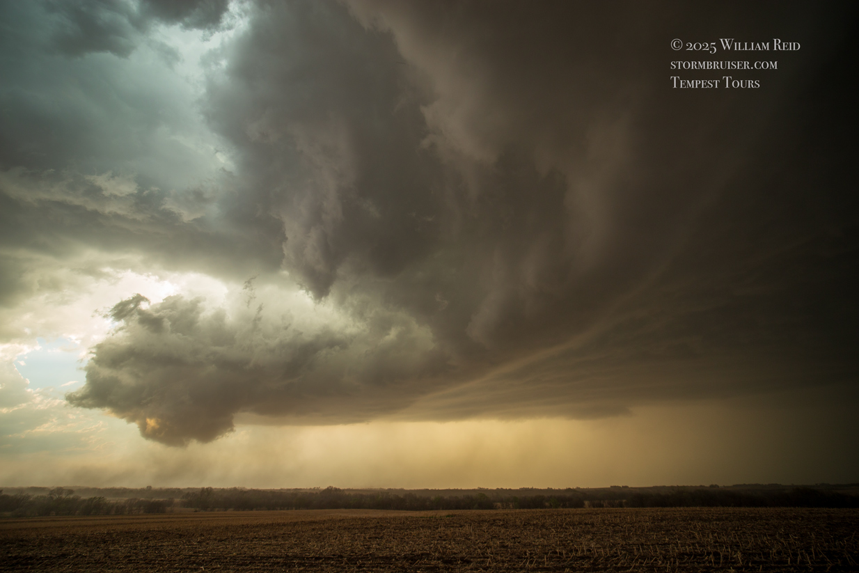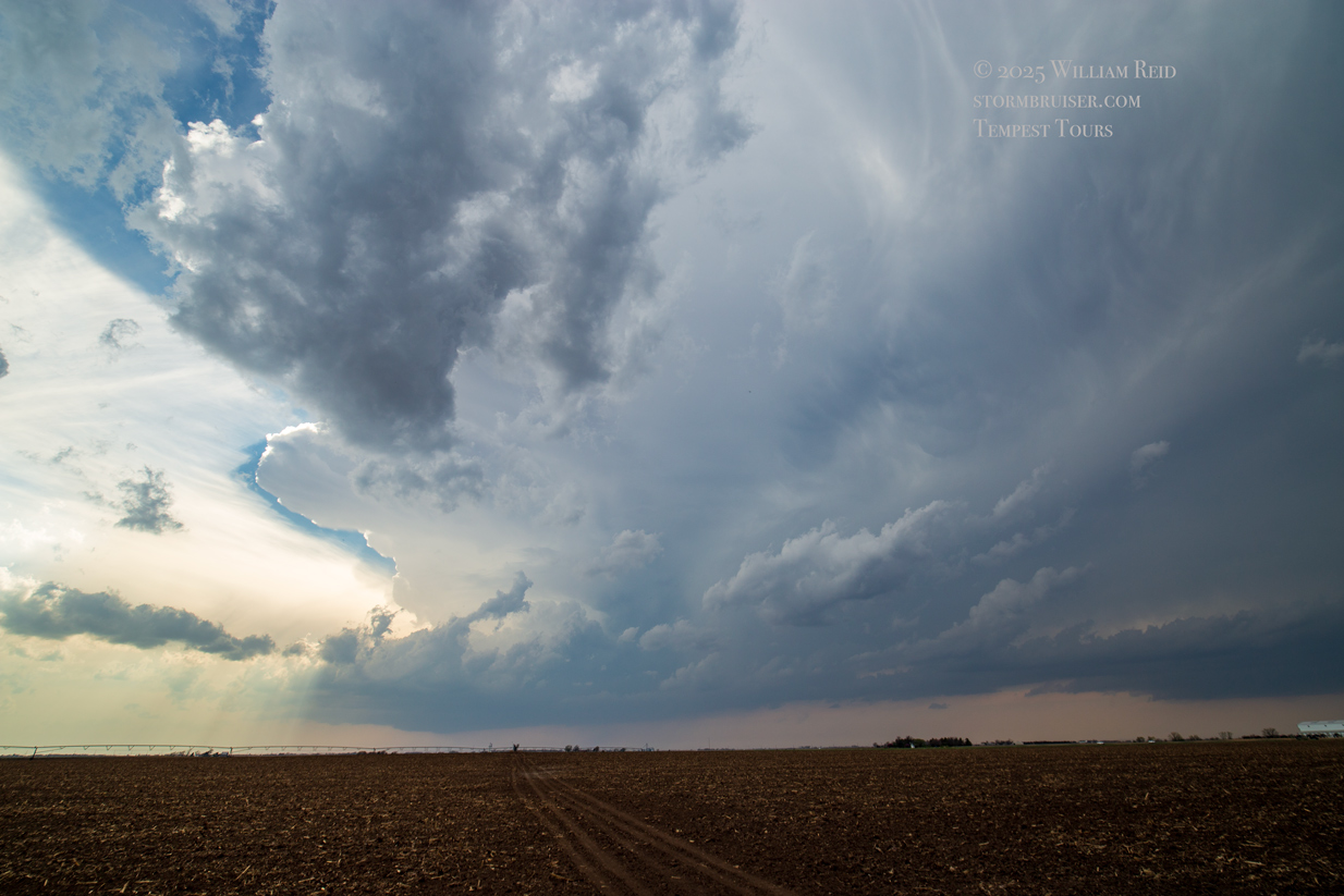 Our first Tempest Tours chase day for the season, with Tour One out of OKC, had fairly good prospects with a 5% tornado area by SPC showing up east-west along I-80 in eastern Nebraska. We just had to get ourselves through OK and KS in time! The low-level moisture was somewhat low-end, with dews near 60F south of a front. This would mean rather high storm bases, at least starting out.