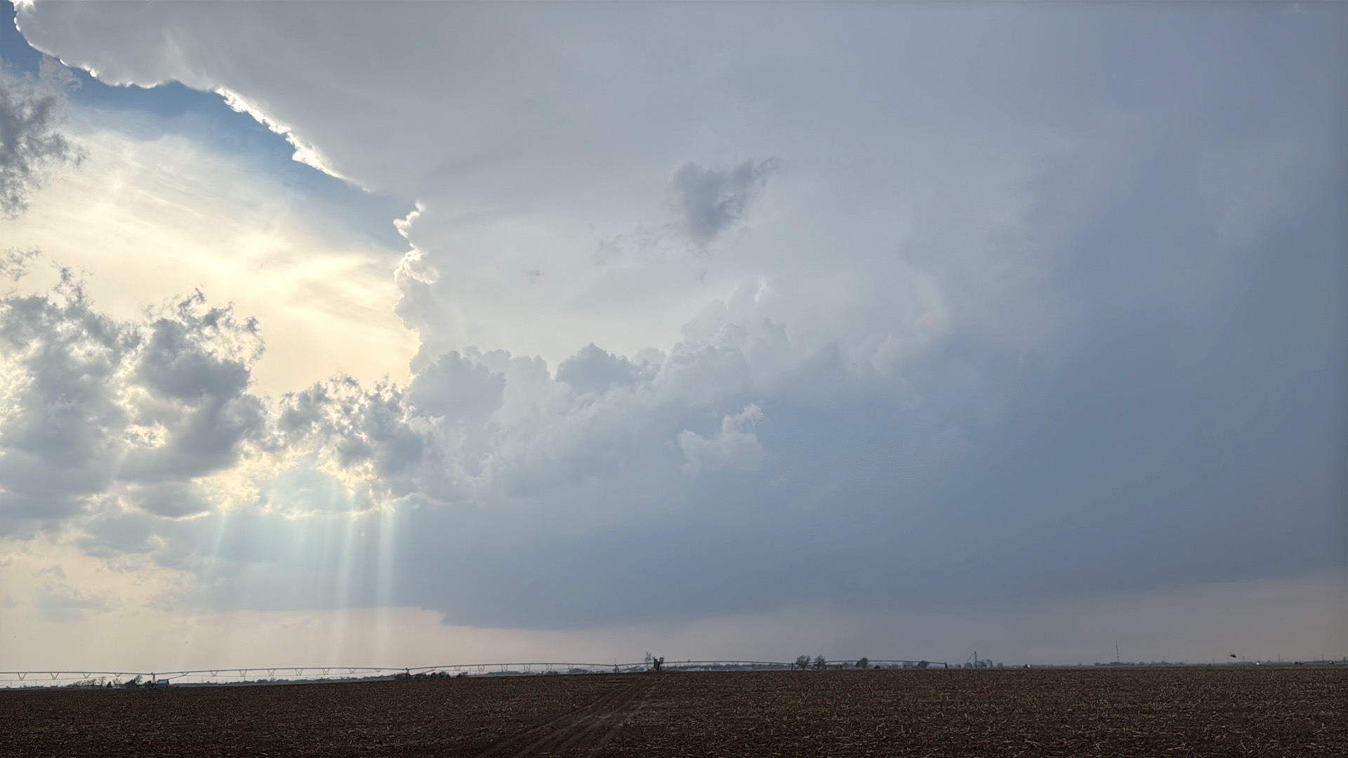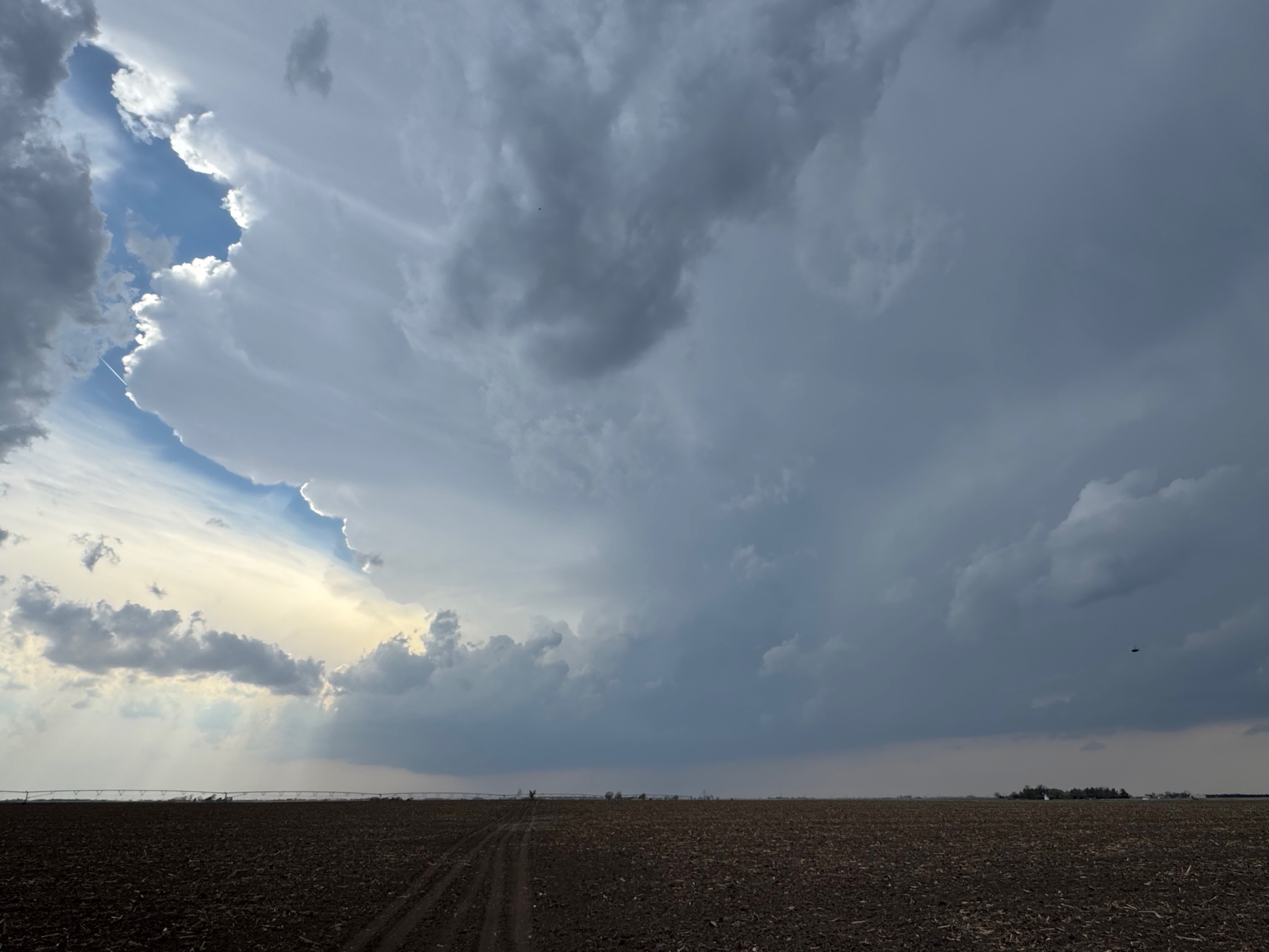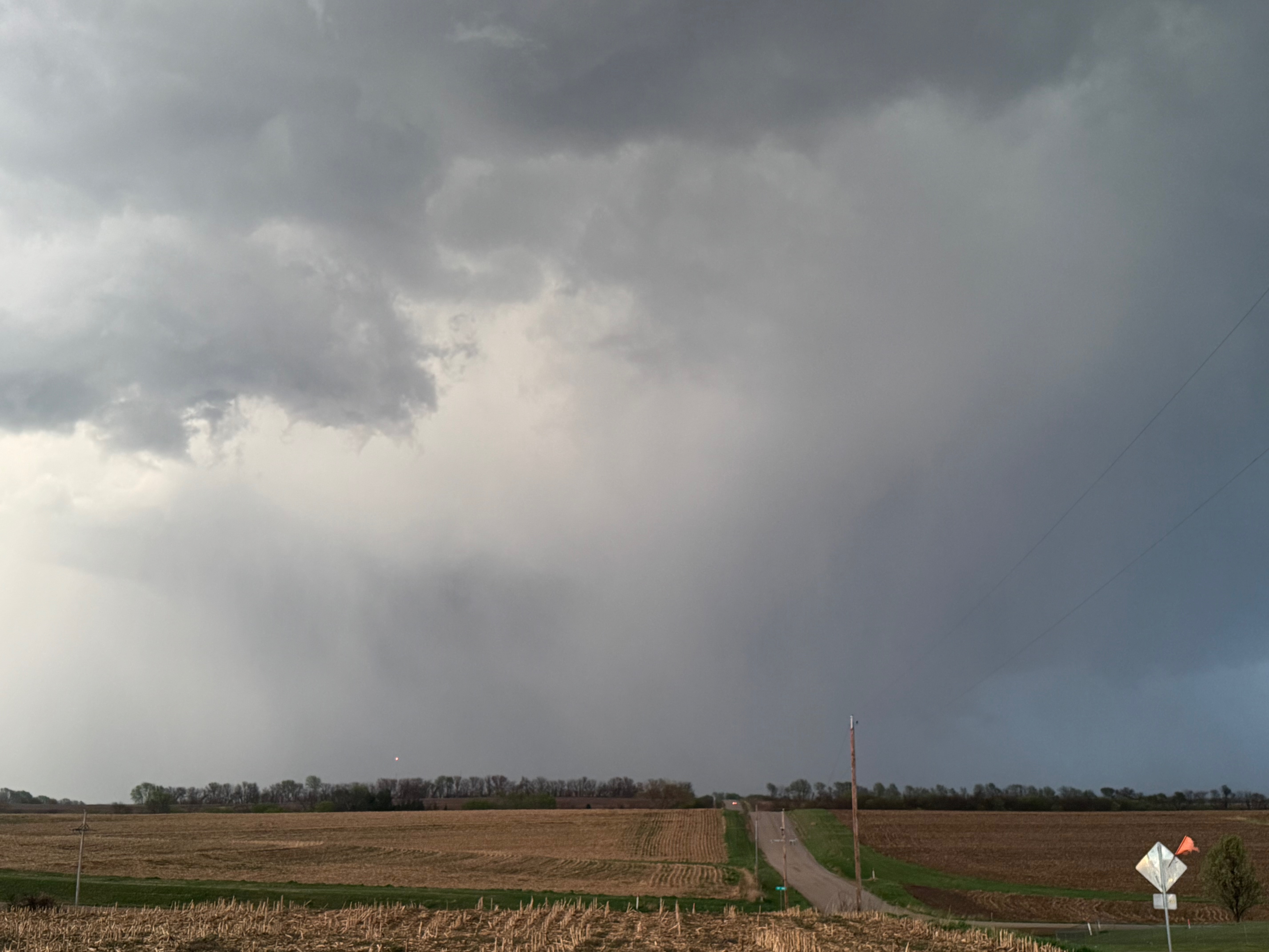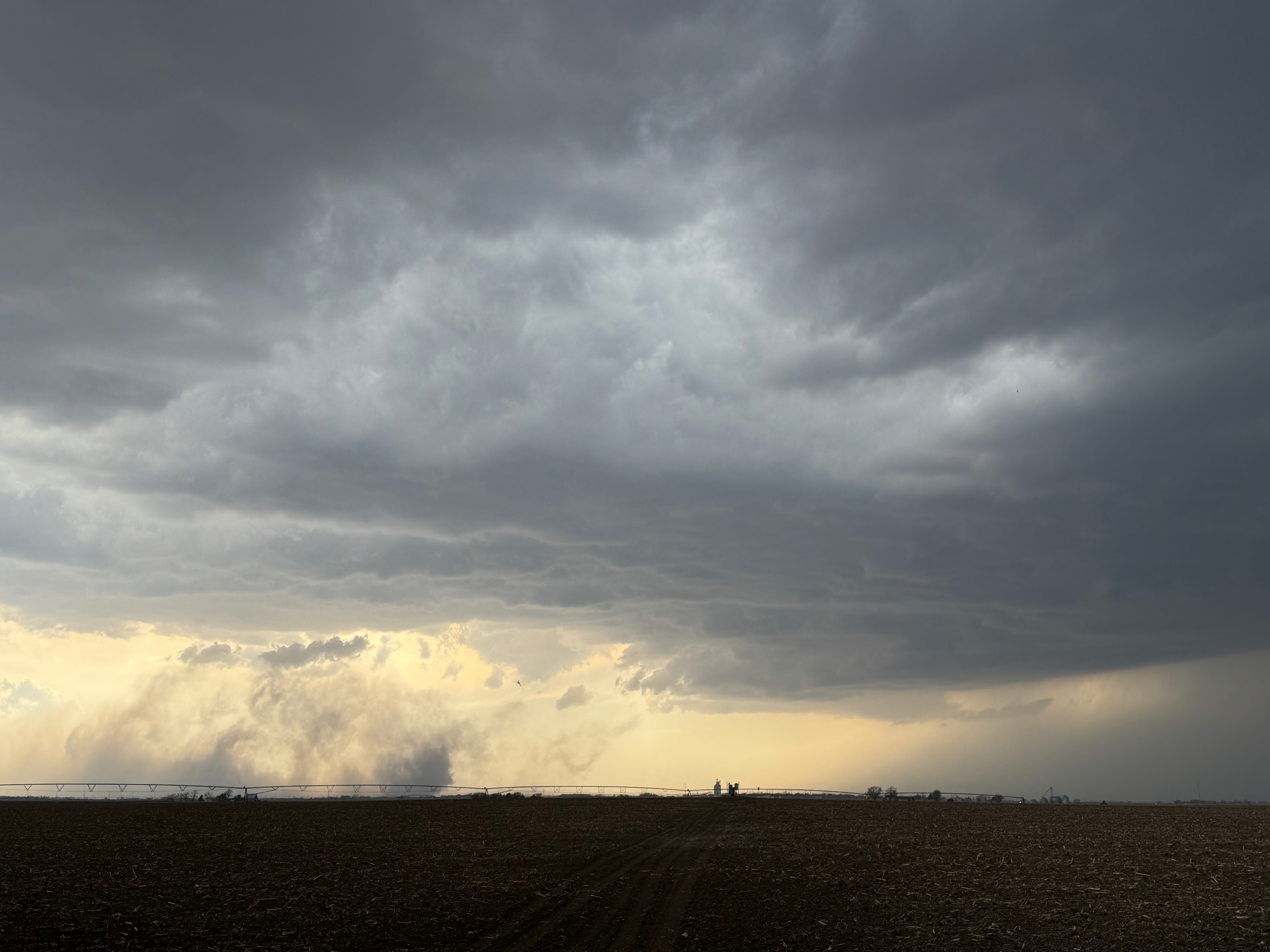 The environment for tornado-making was expected to get a little better around the Missouri River and into Iowa a county or two as a low-level jet kicked in around sunset. We stayed with the supercell to U.S. 75, but ran out of daylight and roads as the storm crossed the river. Some of my shots towards the east at dusk (below) showed suspicious stuff going on beneath the storm base, at the same time that Iowa spotters and chasers were reporting tornadoes. We were unable to stay close as the river crossings we required were not available.