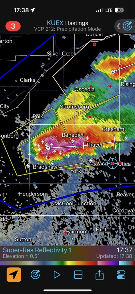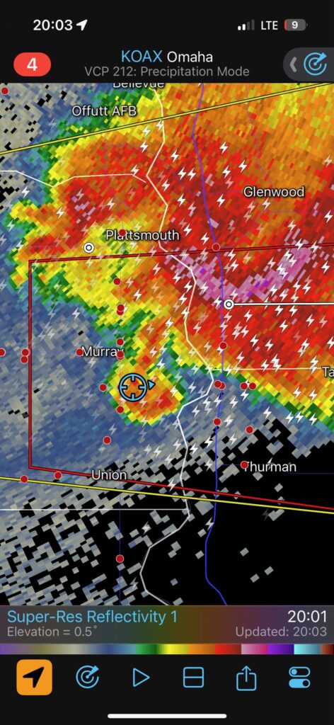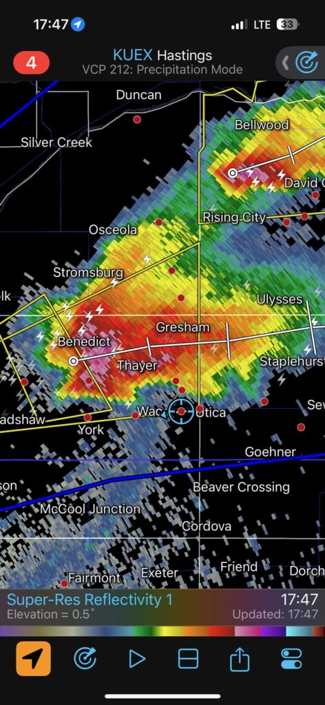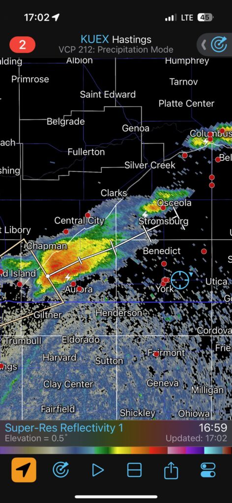 The radar screen grabs below show us right there in a nice hook echo for a bit around 8 p.m. CDT. We had some RFD wind, but I don’t recall experiencing any big hail or damaging wind.