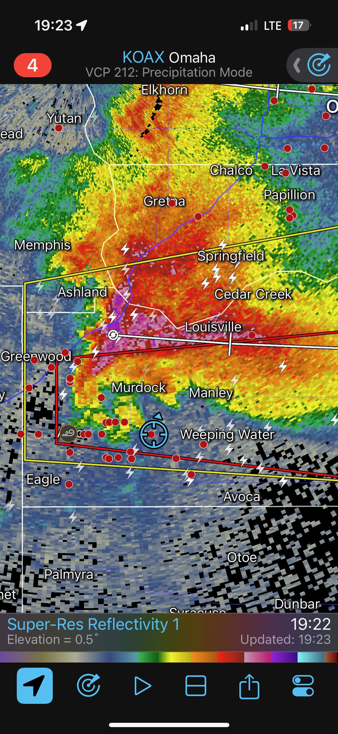 Note: check times on the radar screen grabs. They are not all in the right sequence. Times are all CDT.