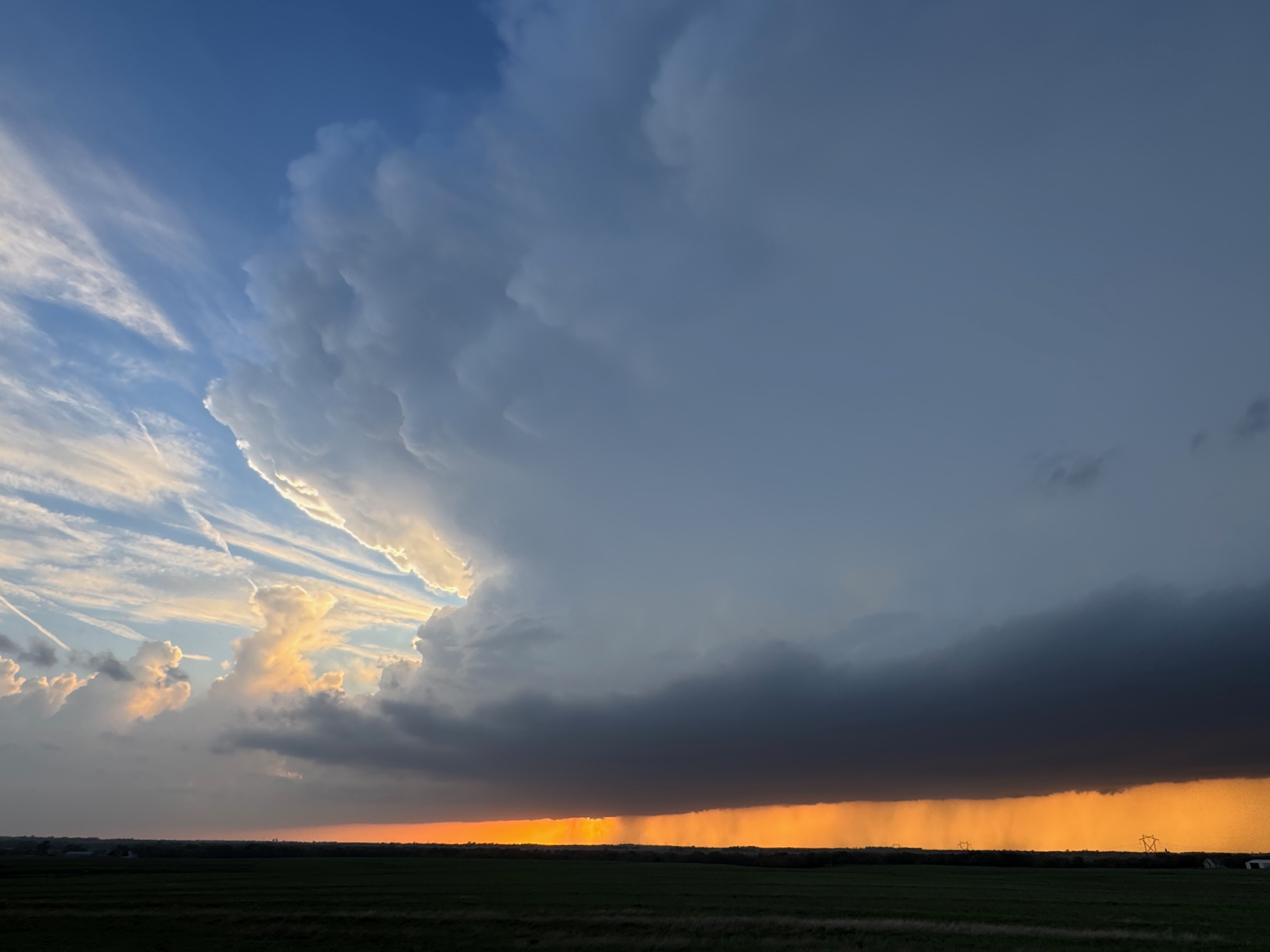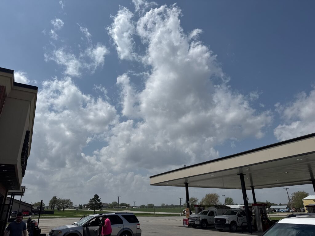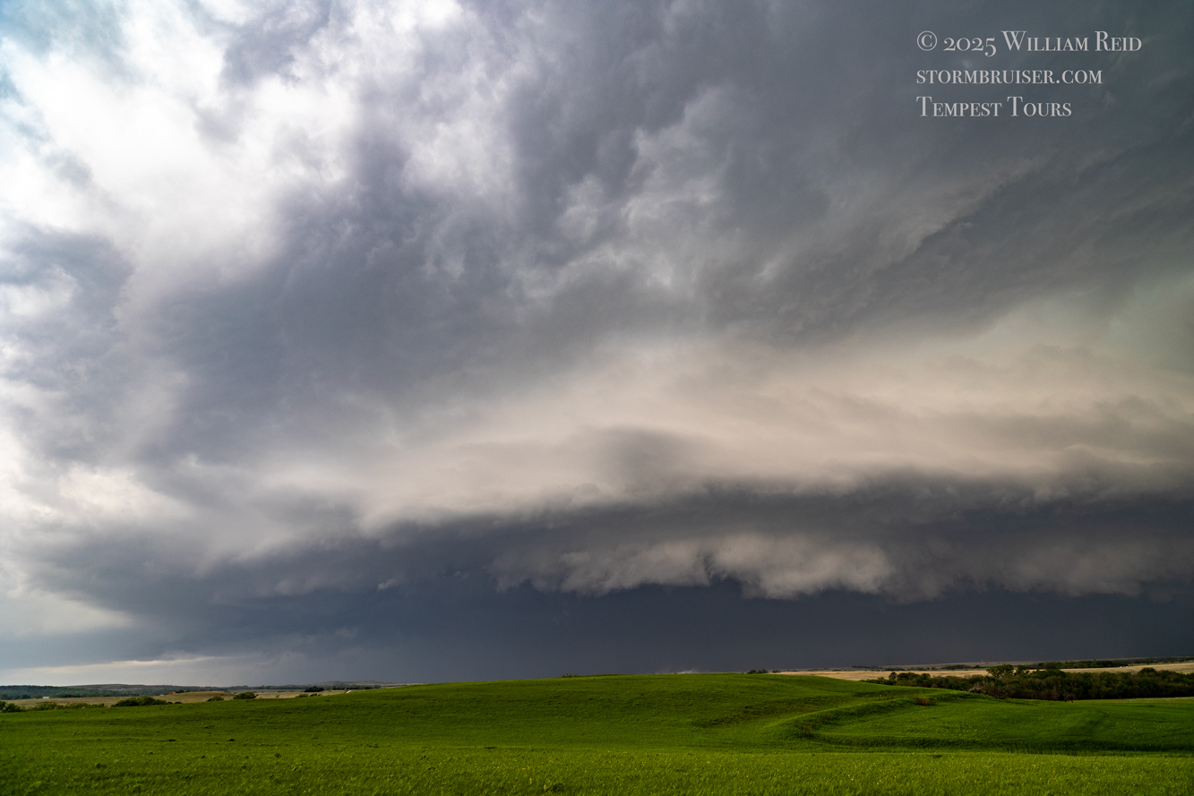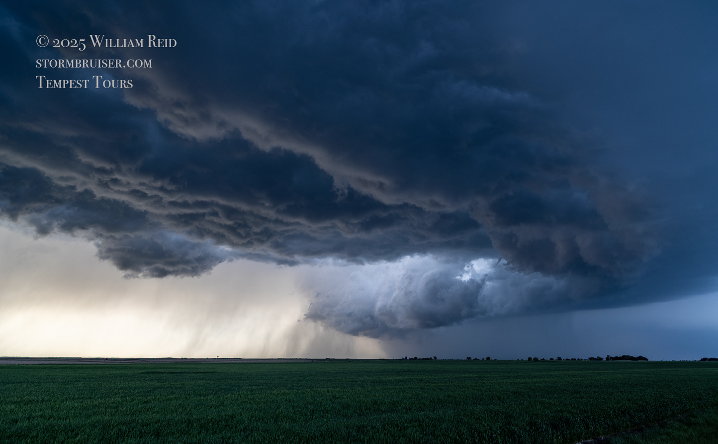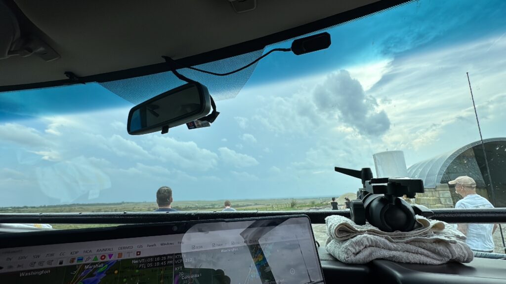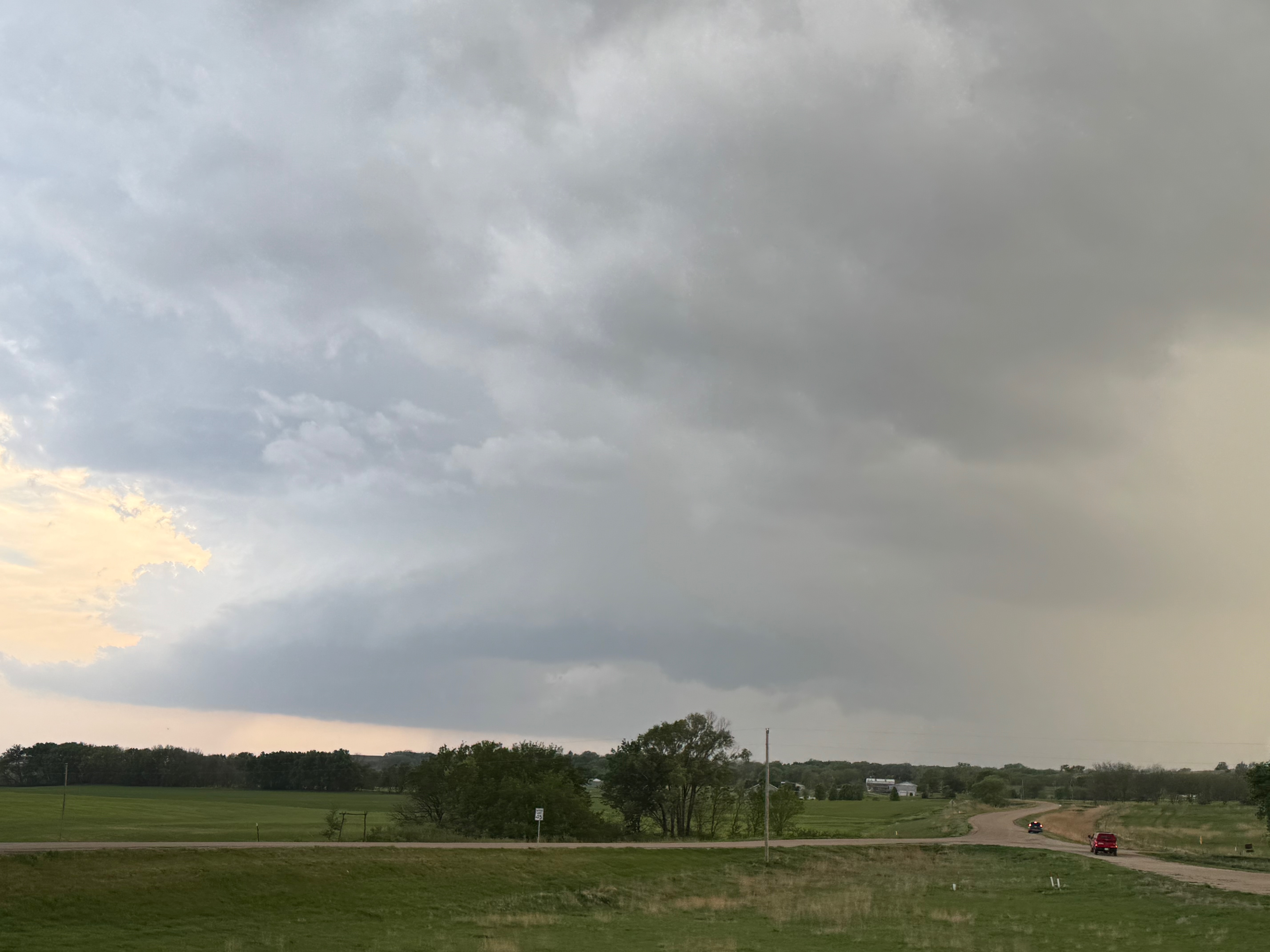We had time to kill at a cool old church in Kelly, KS (near Seneca), and were then drawn southward towards strong development along the front near Manhattan. We positioned near Wamego and Waubaunsee and viewed some storm structure along the leading edge of activity that was moving to the northeast. This stuff already looked rather linear and was undercut. There was an inflection point here and there with an associated lowering. I didn’t see anything close to a tornado.