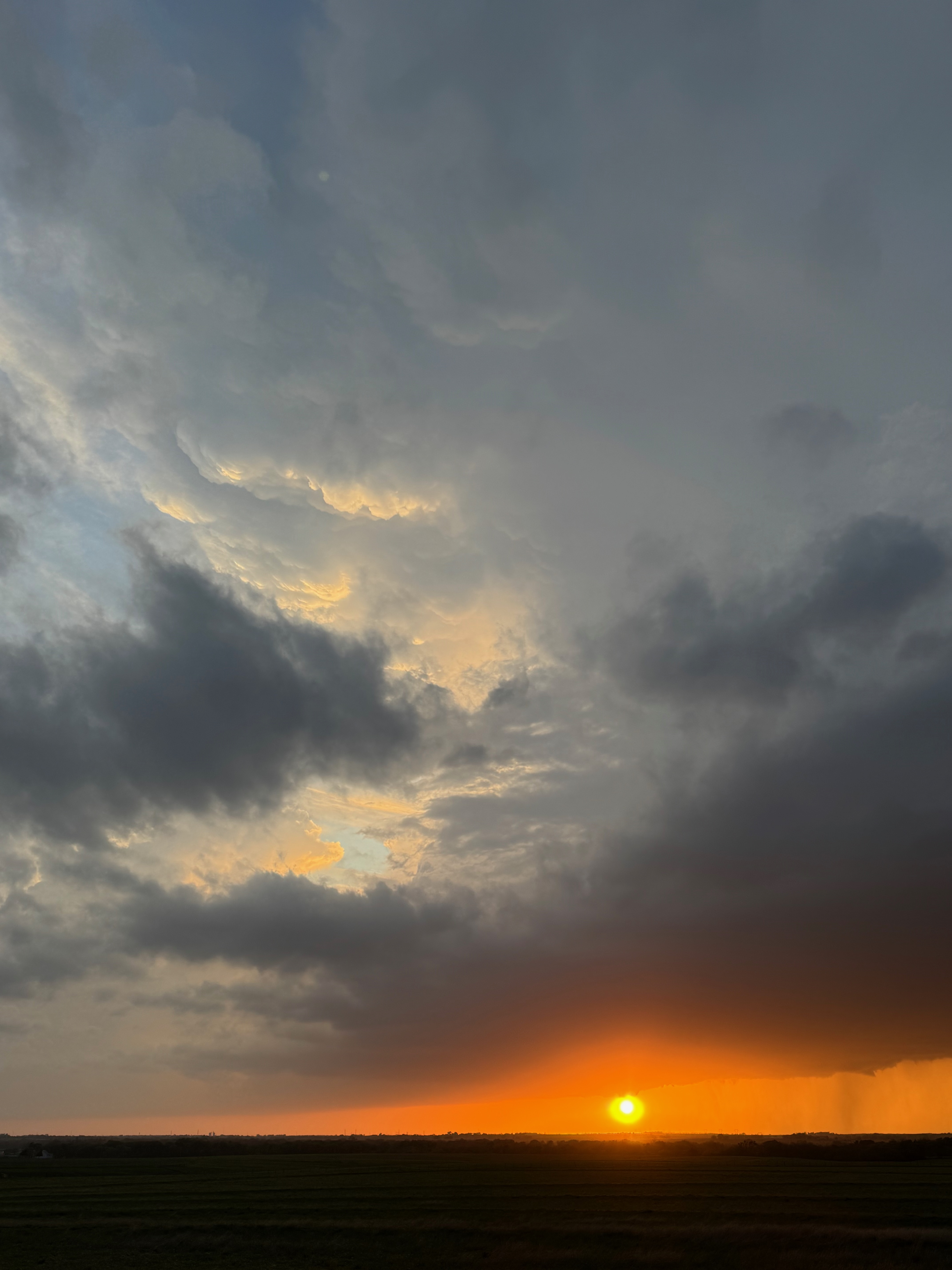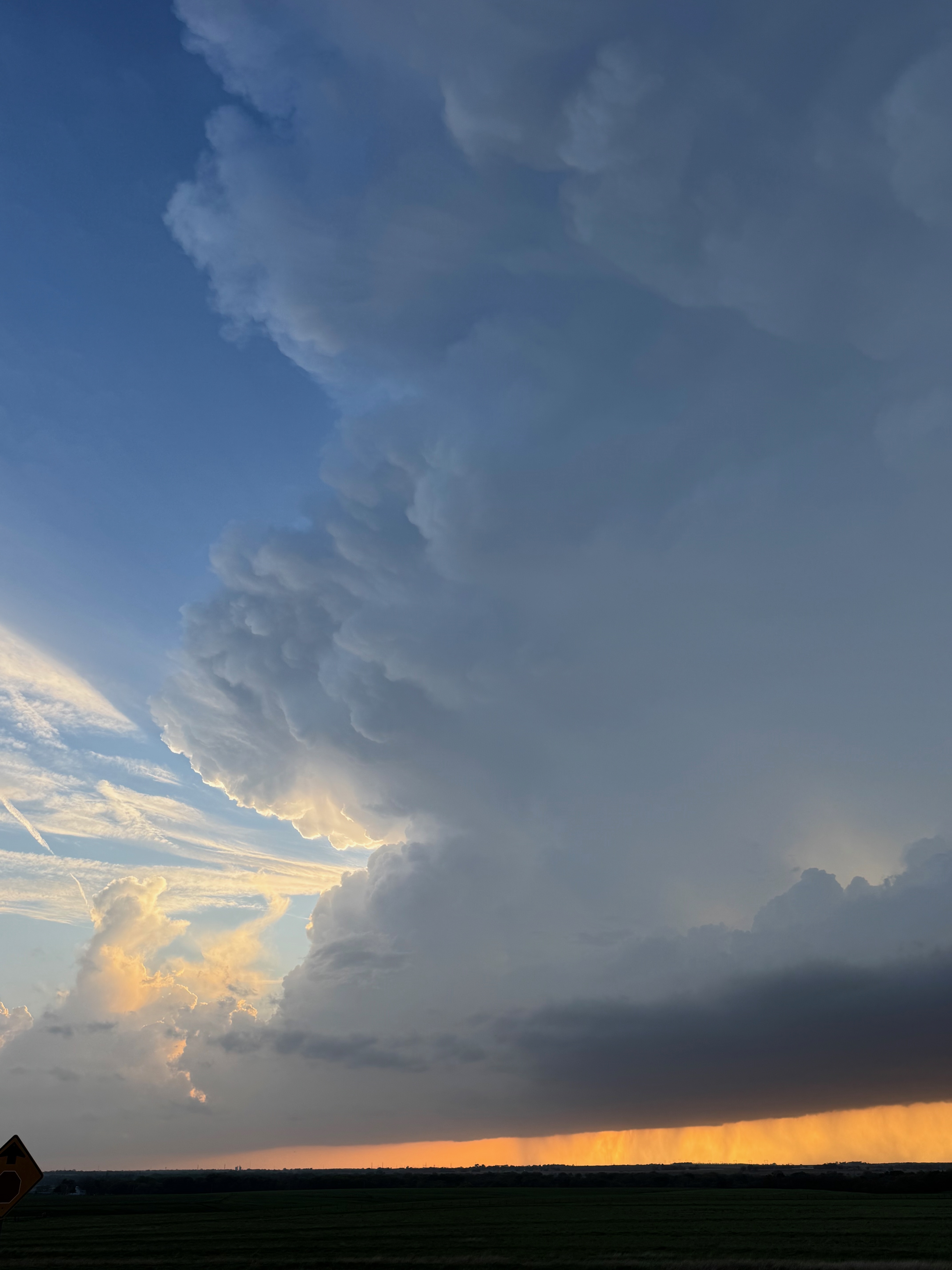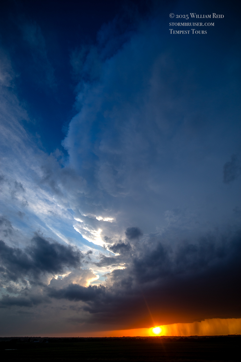 Since our storm looked so-so, it wasn’t worth staying with. We went west on I-70 and checked a tornado-warned cell near Enterprise. The base had a big RFD cut, but the lower levels had a stable look. After the pretty sunset we made our way SSW to Park City for the night.