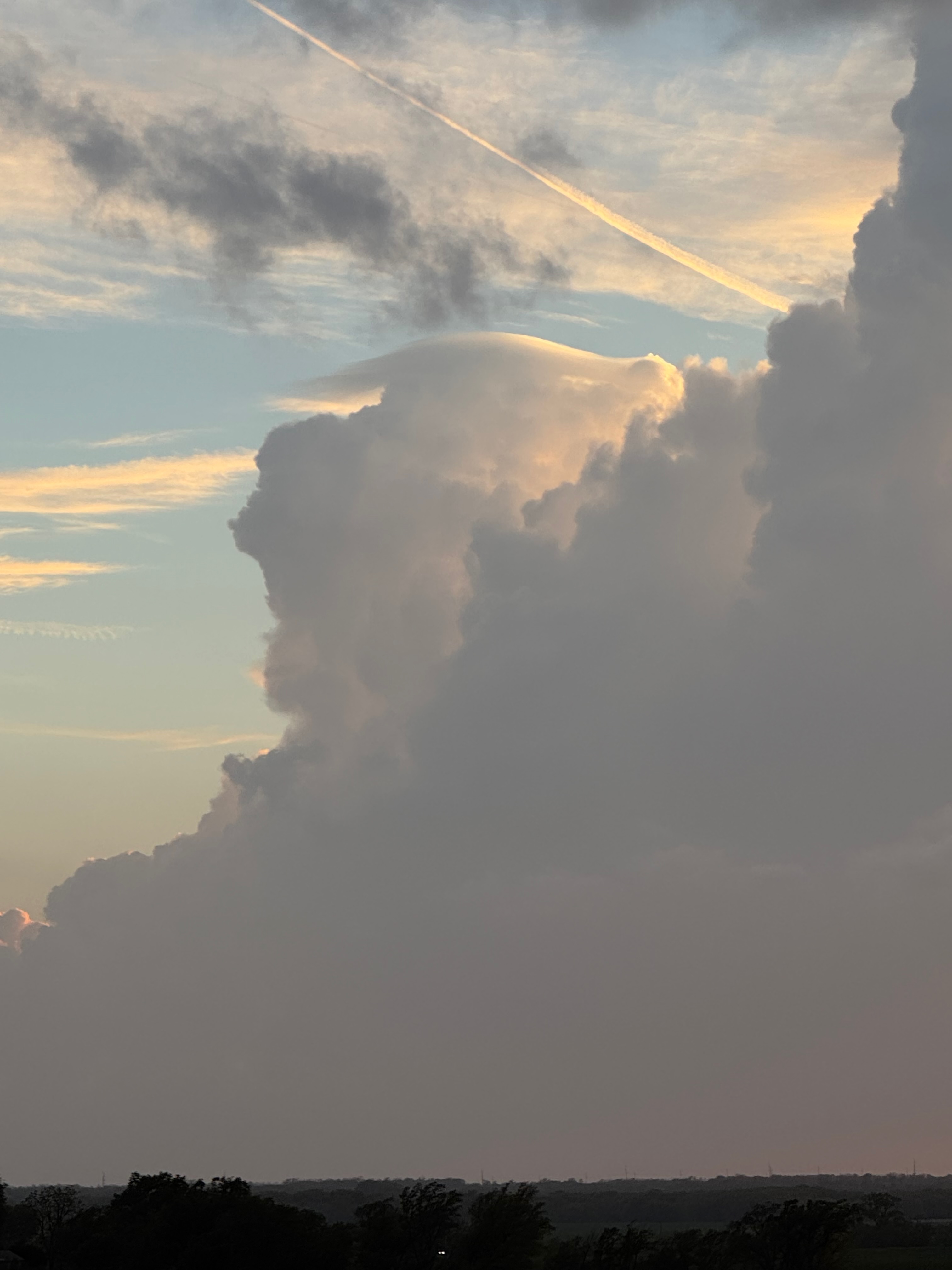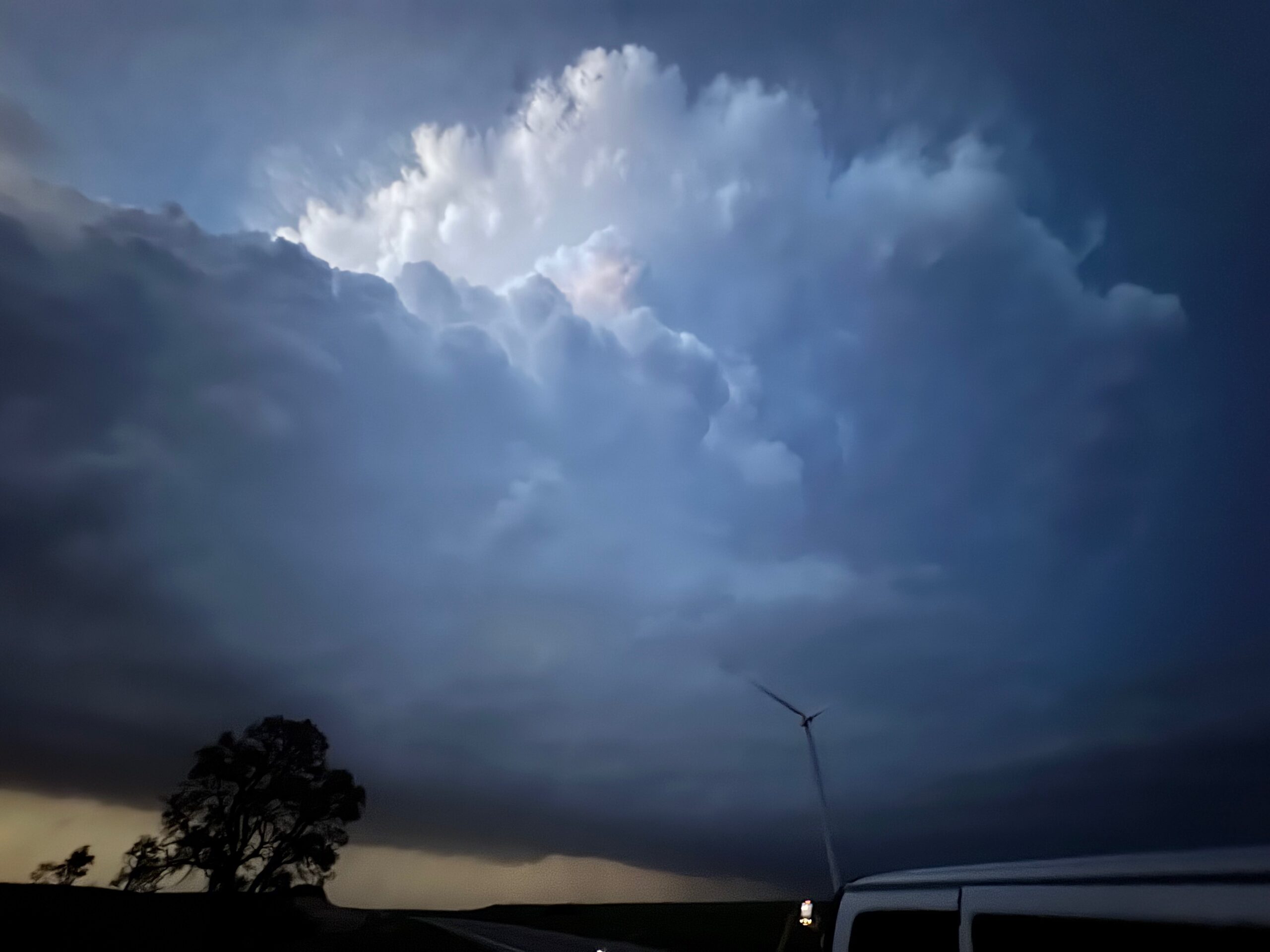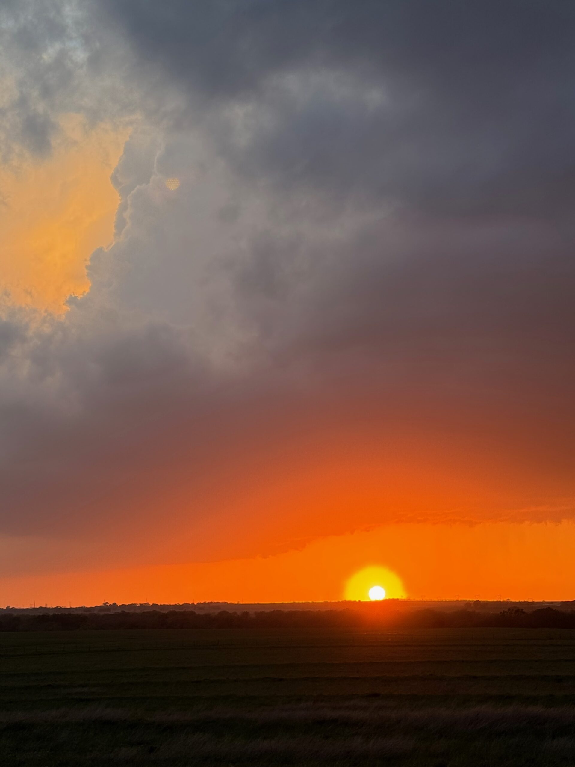Since our storm looked so-so, it wasn’t worth staying with. We went west on I-70 and checked a tornado-warned cell near Enterprise. The base had a big RFD cut, but the lower levels had a stable look. After the pretty sunset we made our way SSW to Park City for the night.