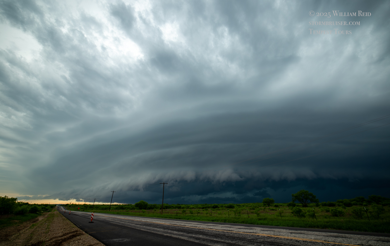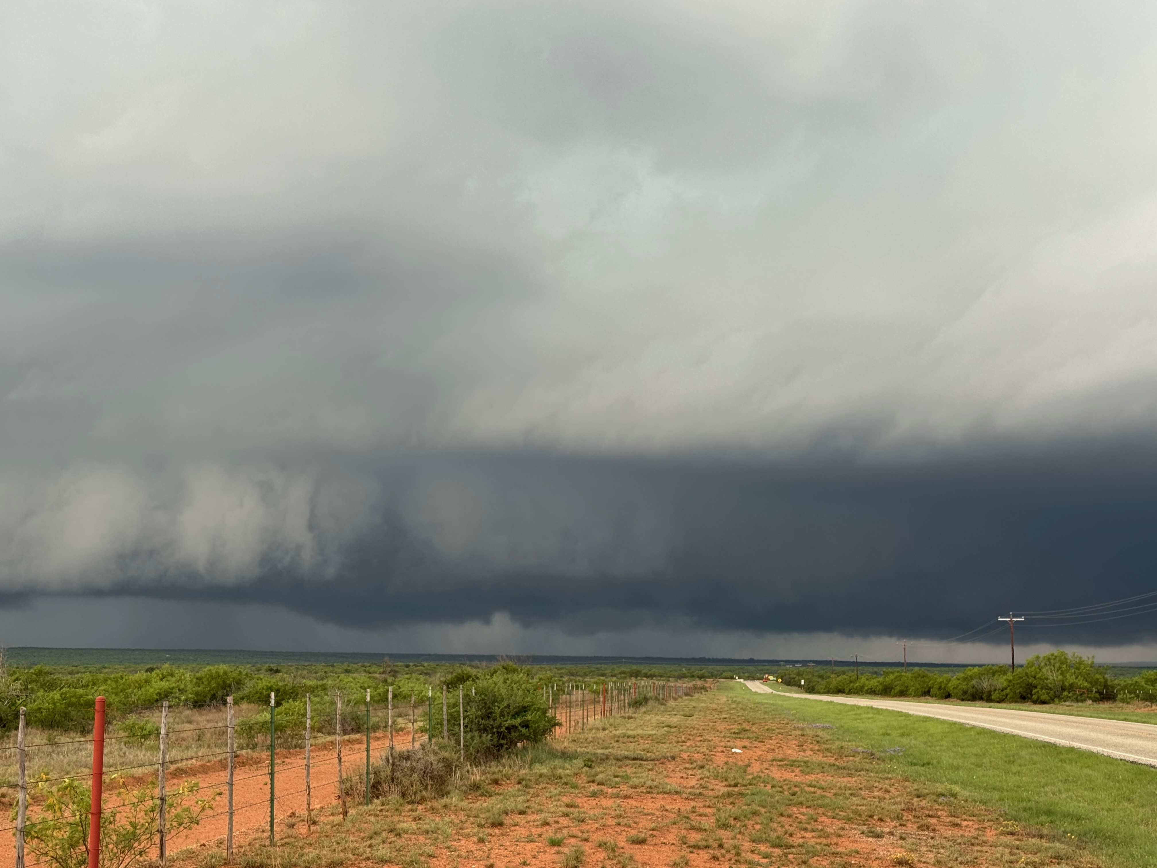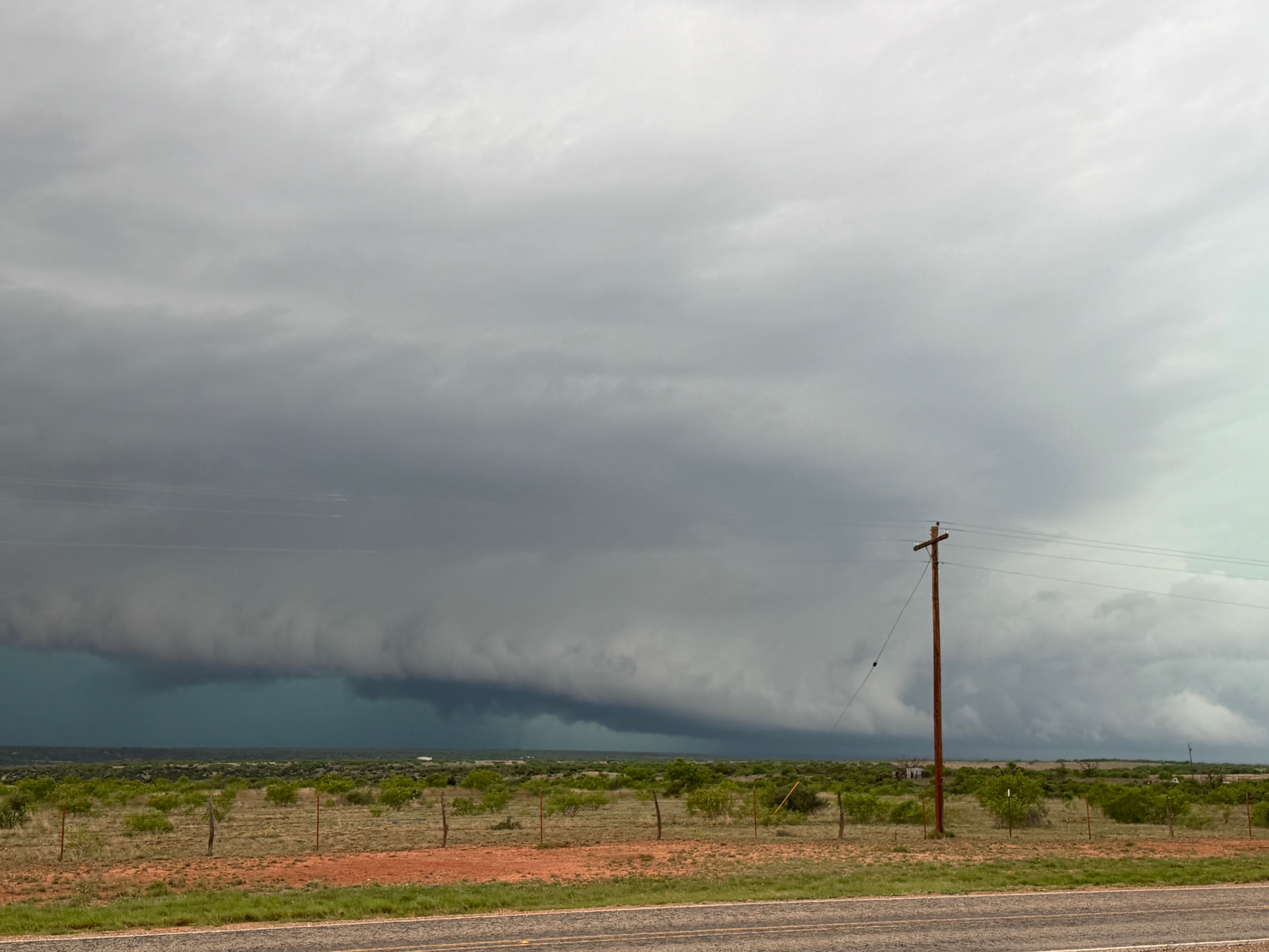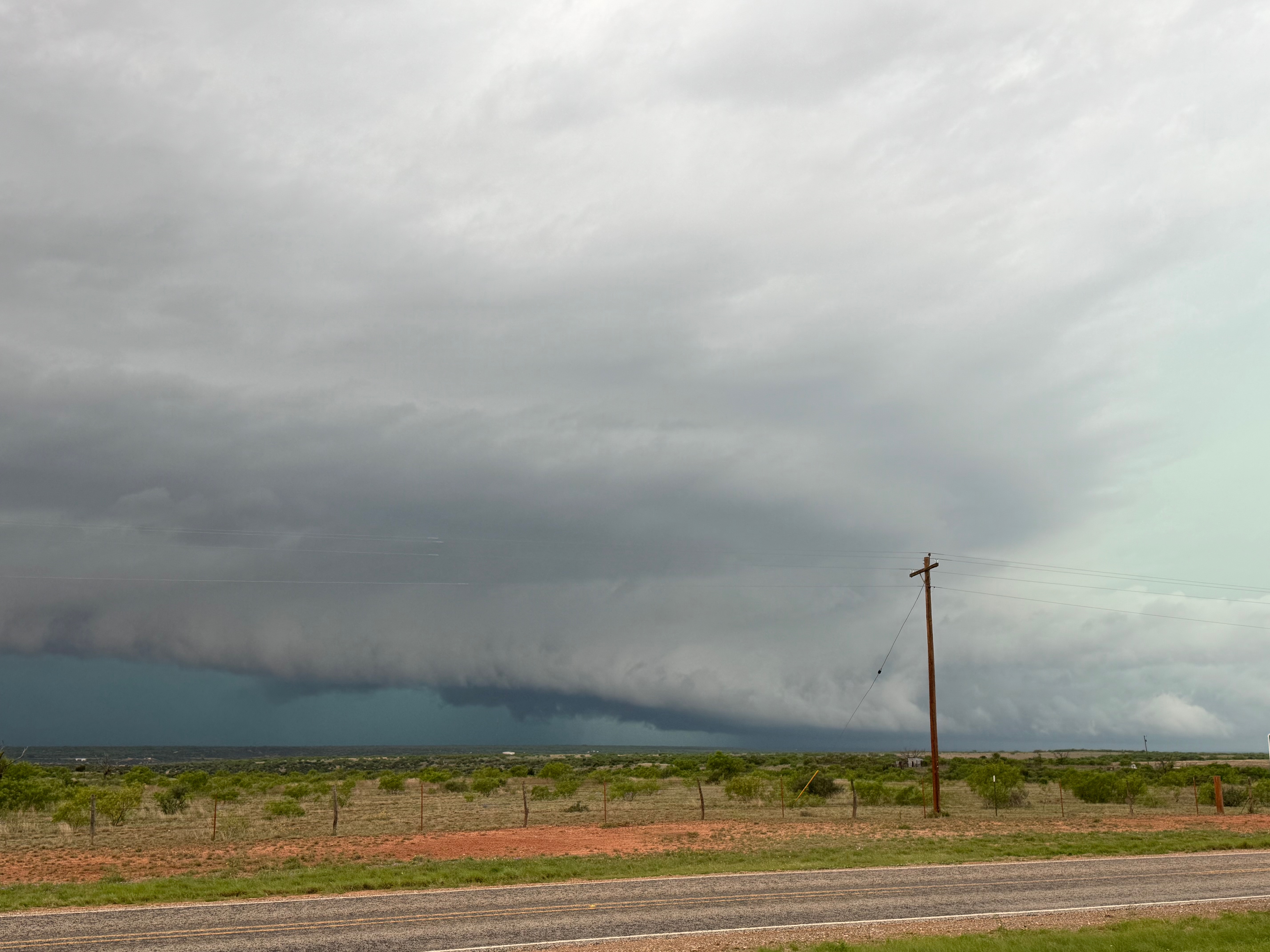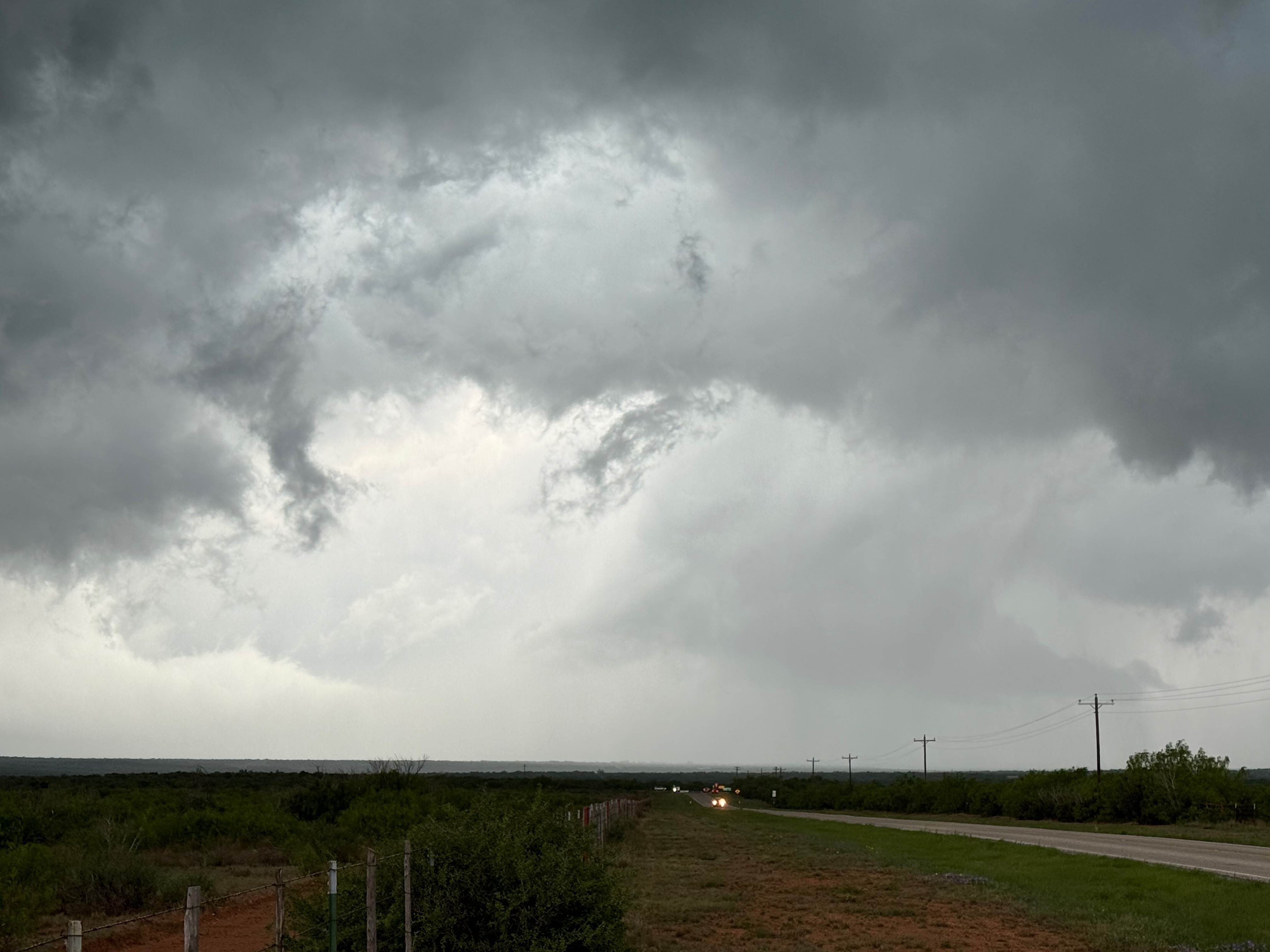 We had another very long drive to make in order to get to the best risk area, near Aspermont, Texas. The tornado potential did not look too bad at all, but the storms that we intercepted north of Aspermont were a bit HP-ish, undercut some, and eventually getting messed up by nearby storms. The storm structure was really good, though!
