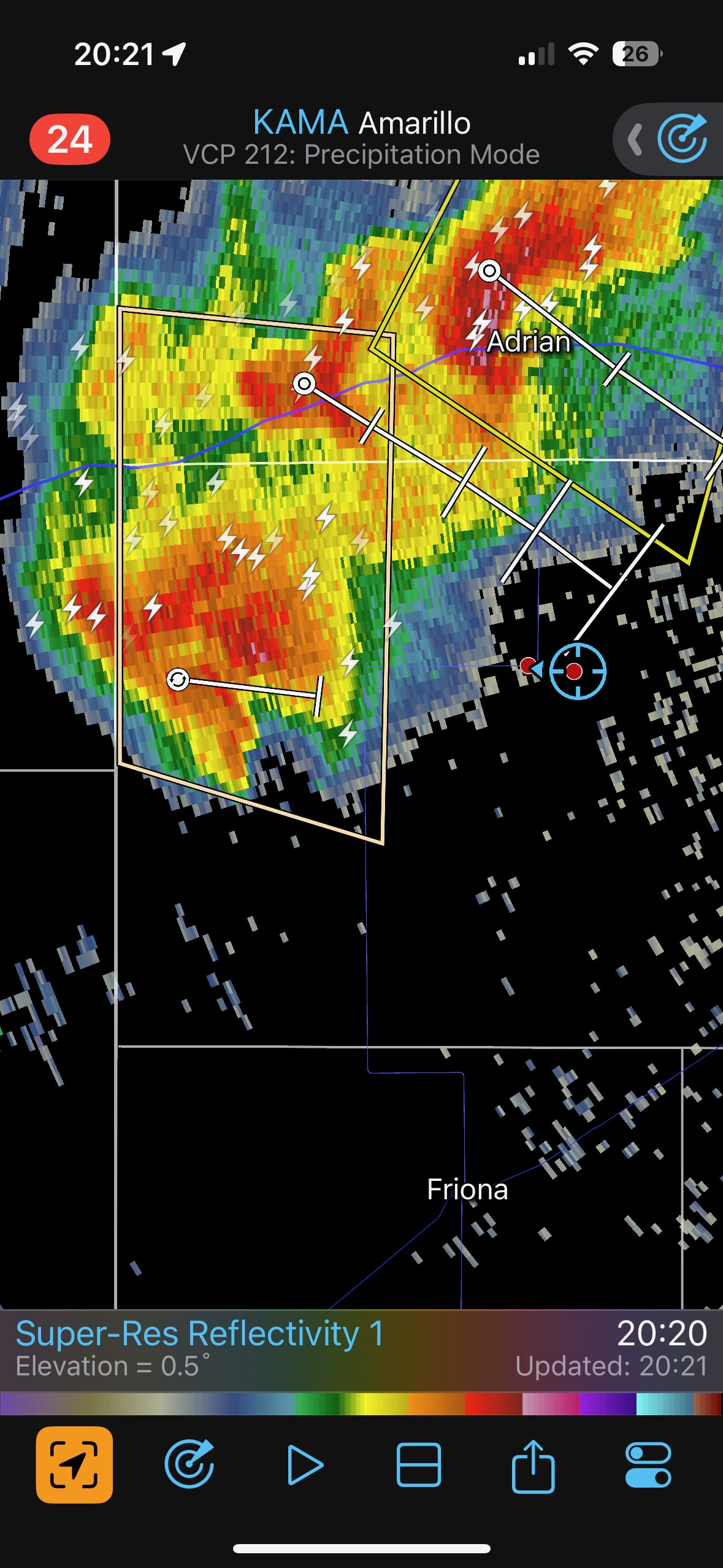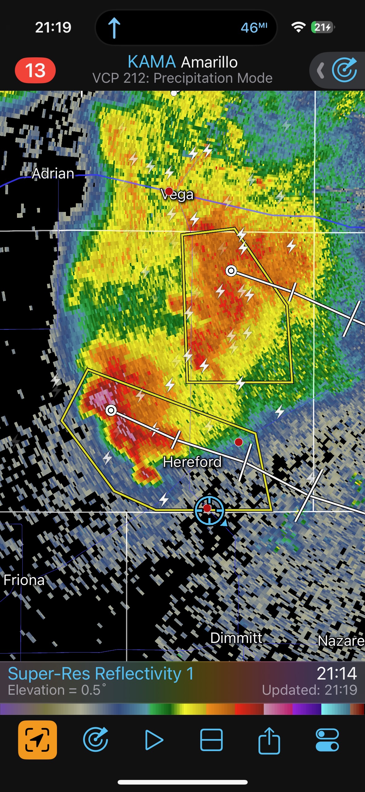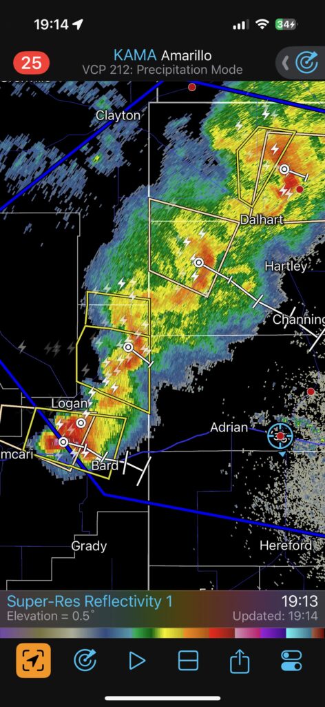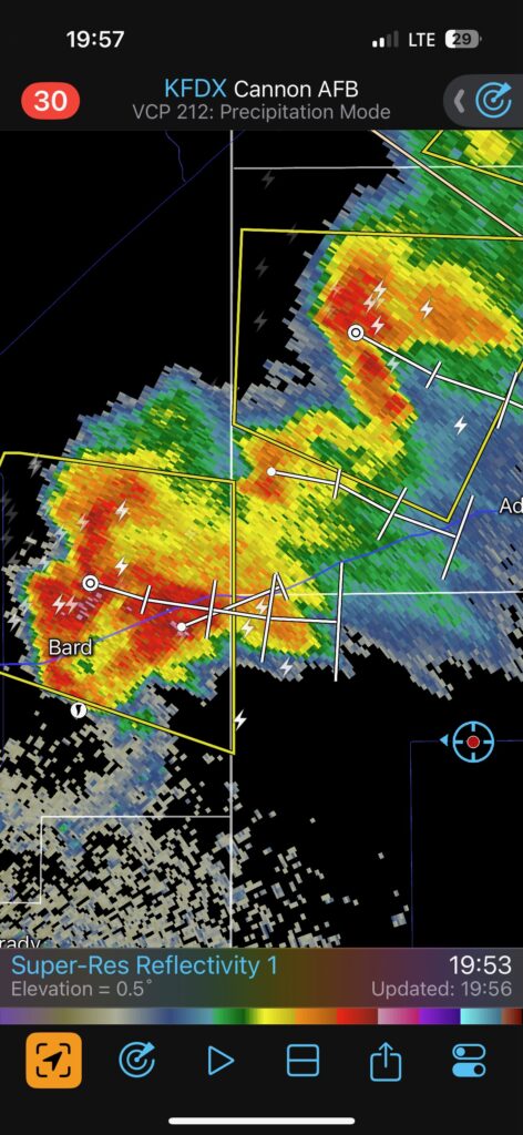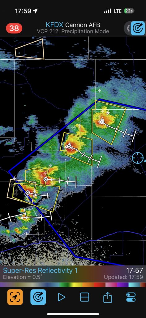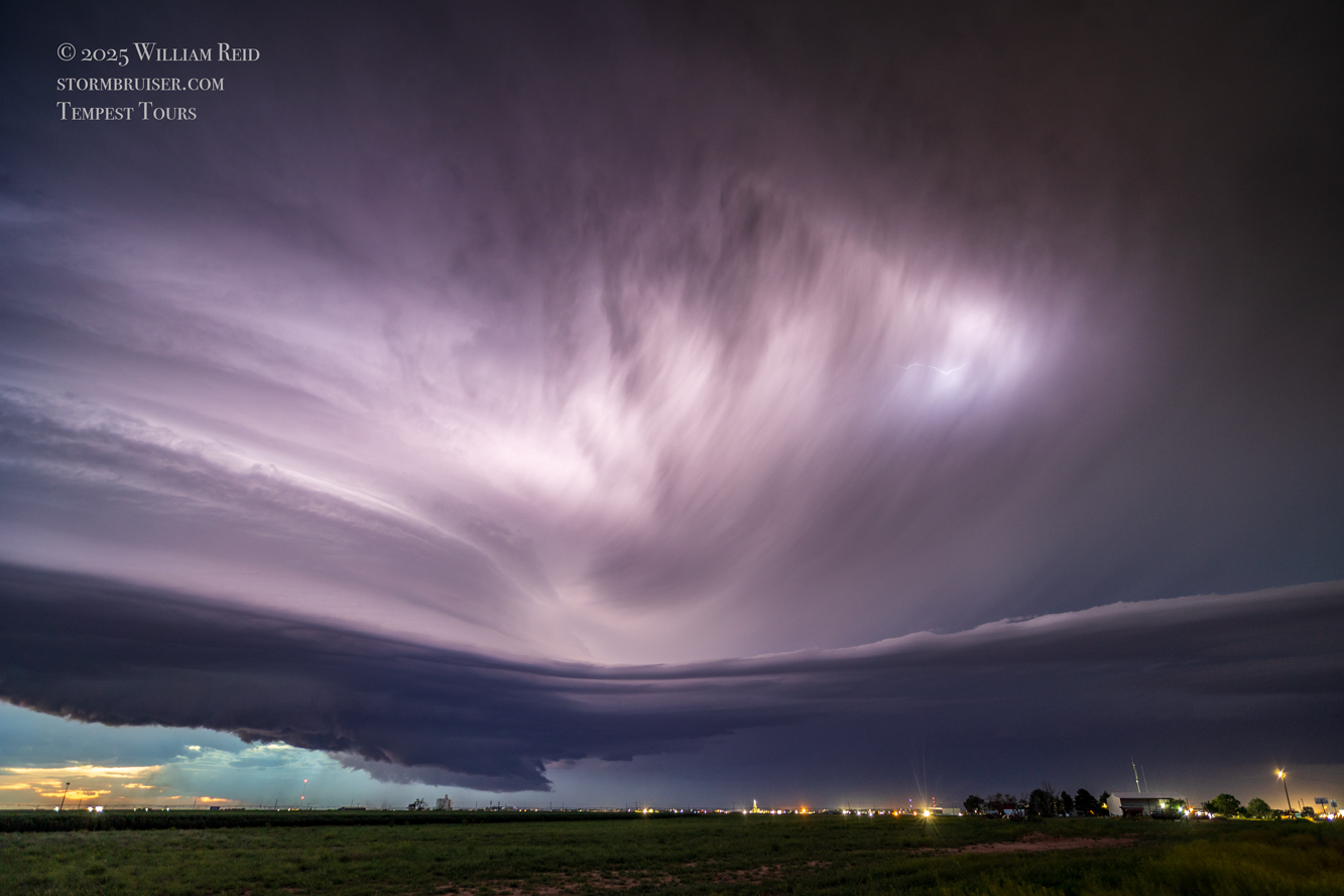 Near Hereford we stopped in front of the supercell and were treated to a decent structure and lightning show.