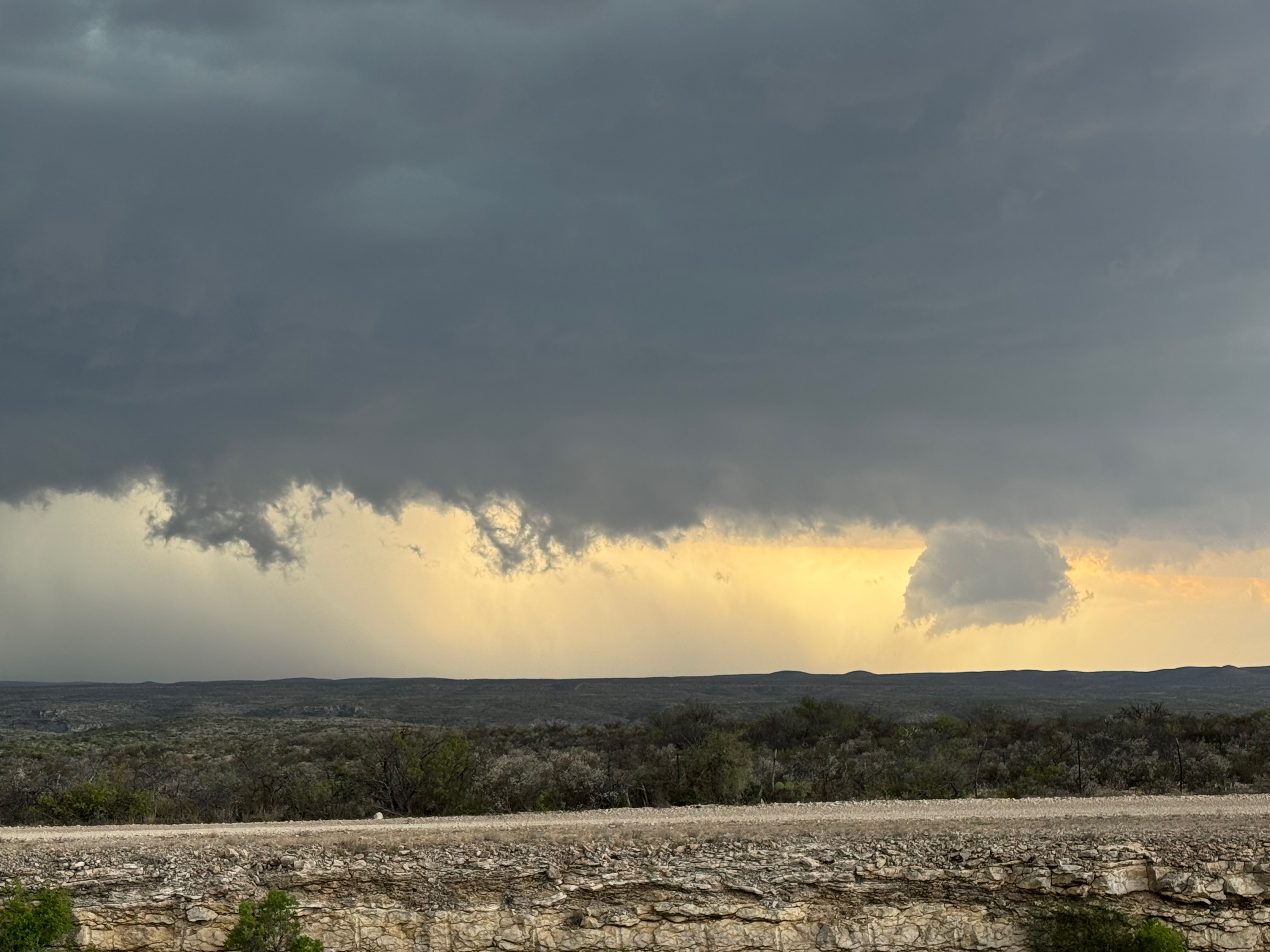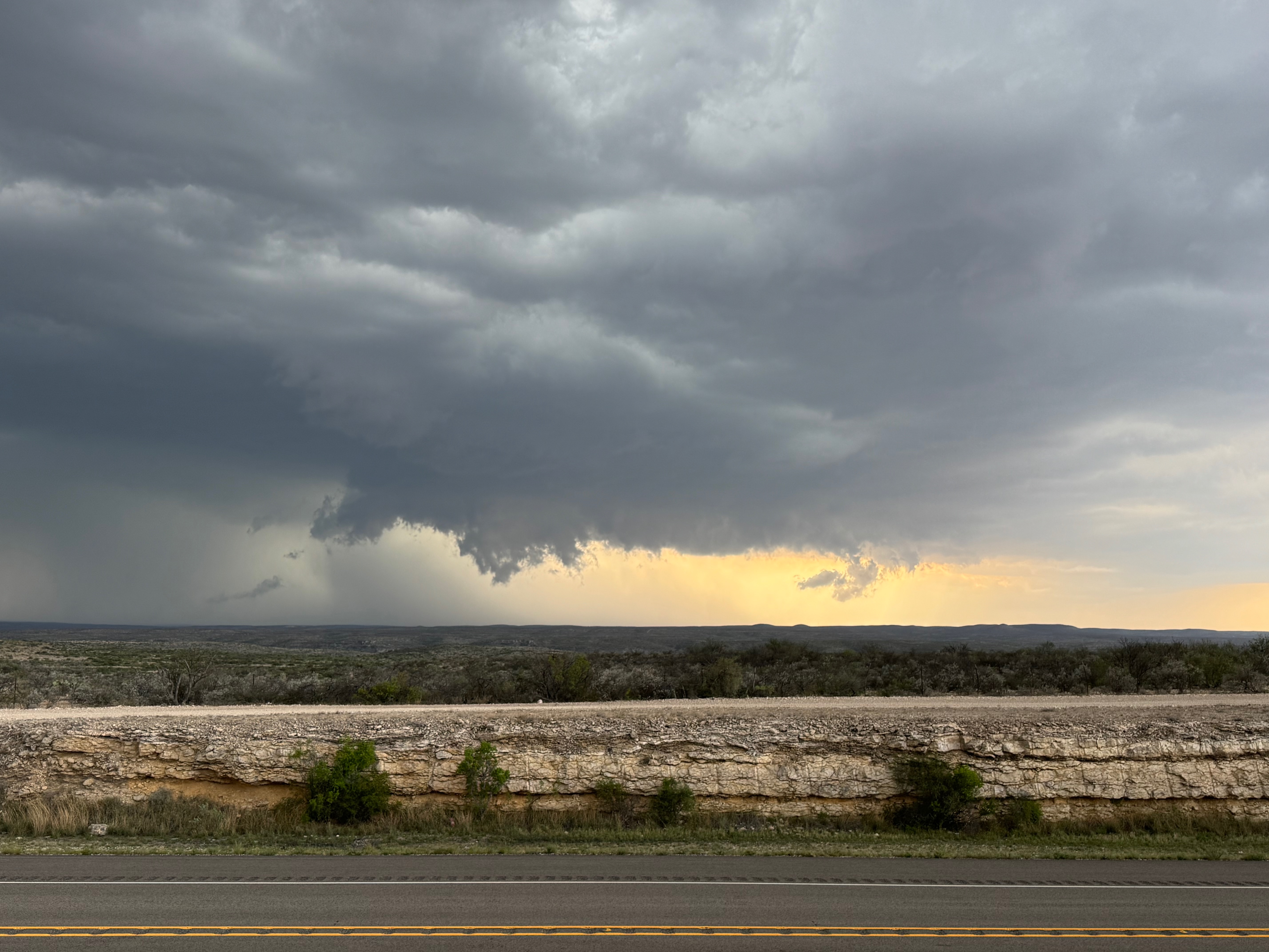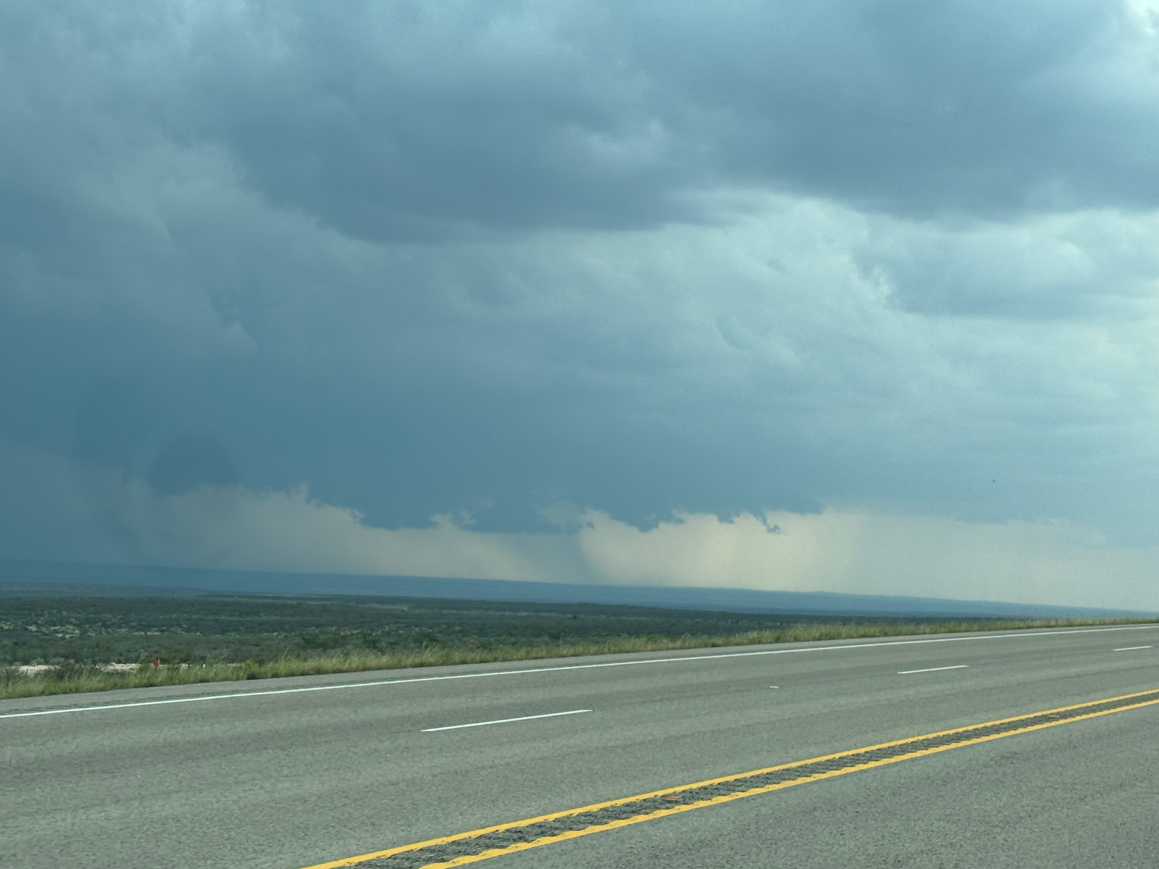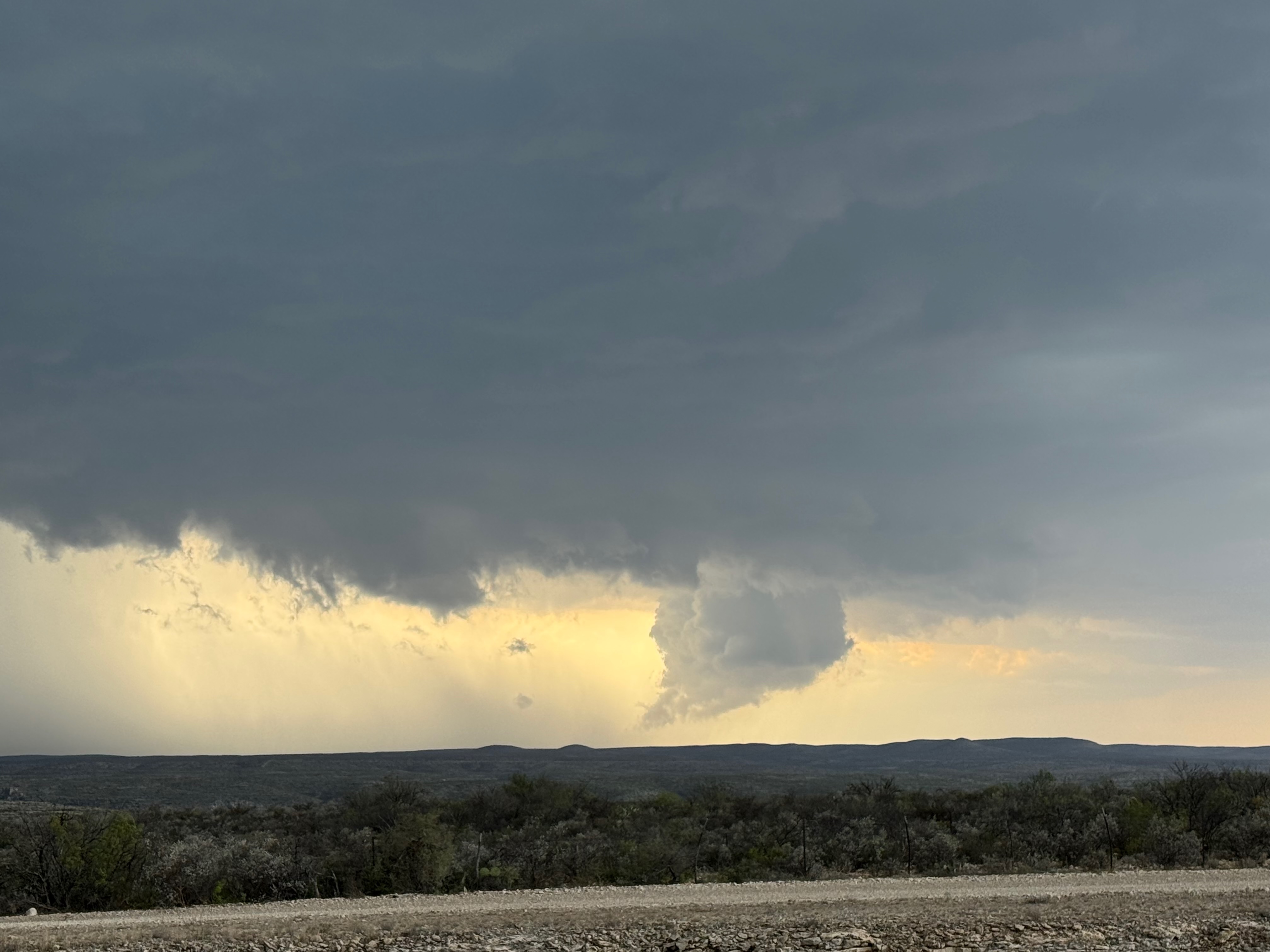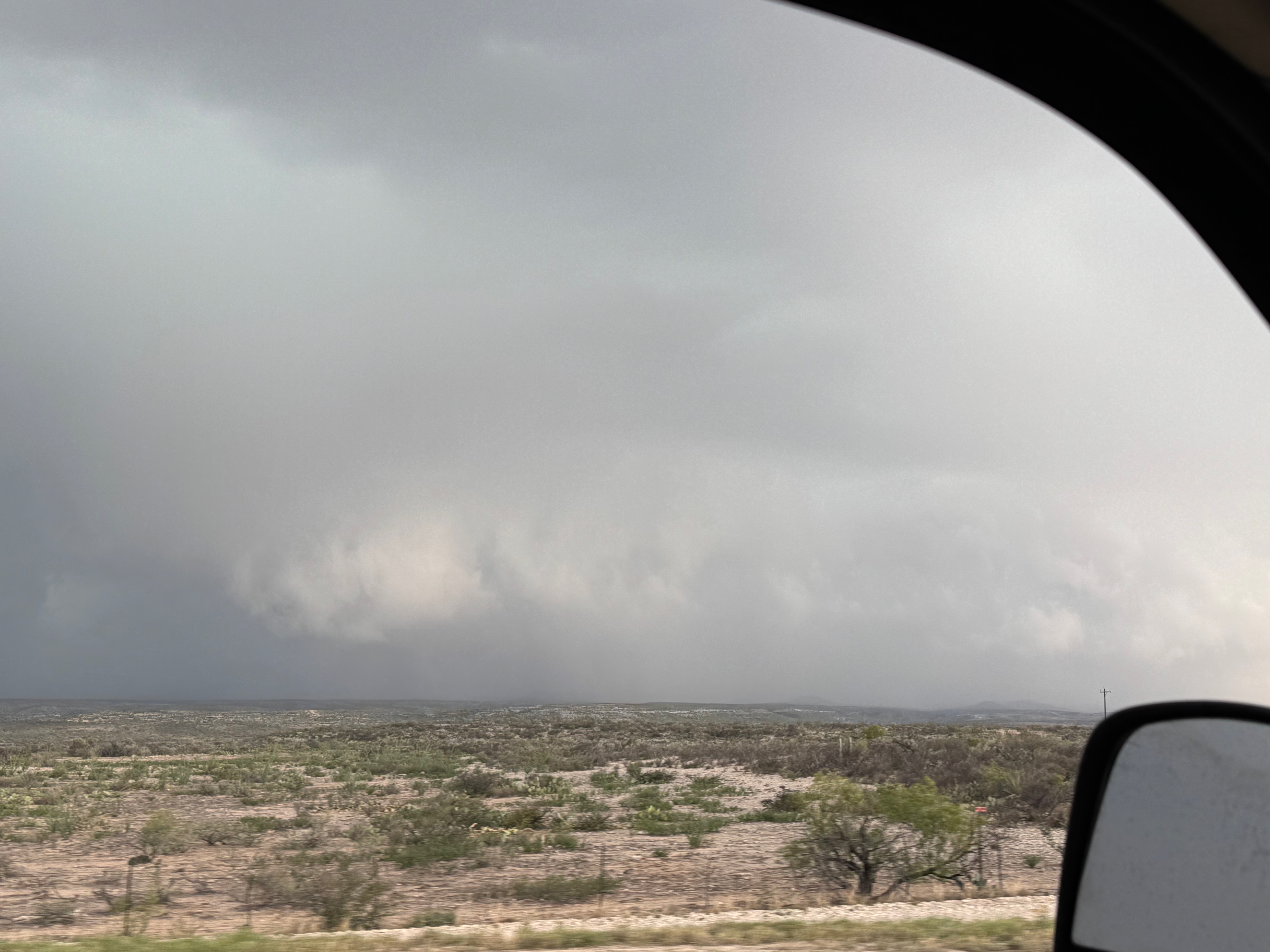We made our way to Comstock, did a quick pit stop, and then headed west towards Langtry to get in front of the beastly left-mover. It sported some nice lowerings and a splendid shelfie-cow-catcher front end. To avoid the hail core we had to scoot a few miles to the west. The storm covered U.S. 90 just to our east and blew a semi-truck over. We looked a little bit for large hail and did not come across any.