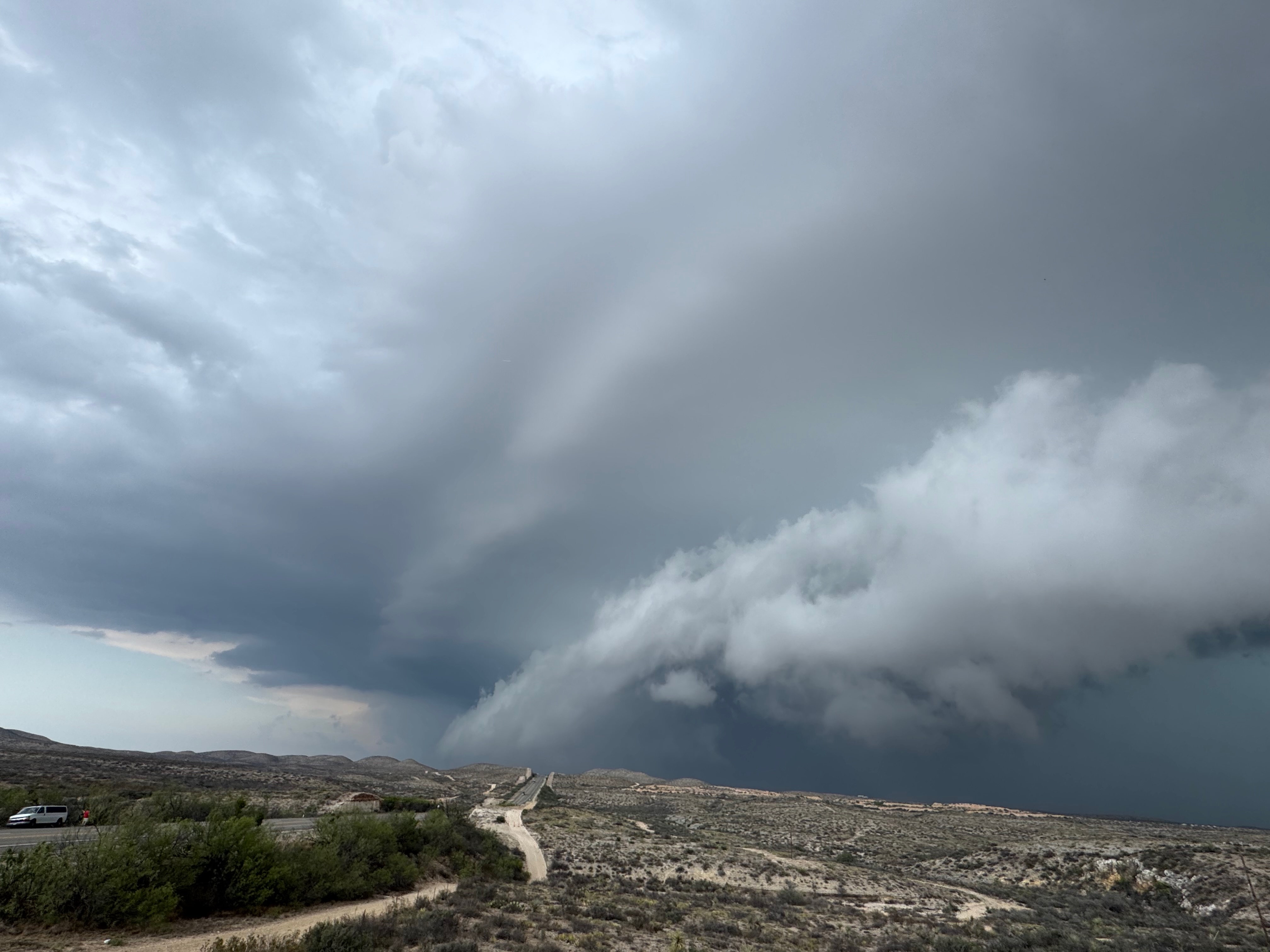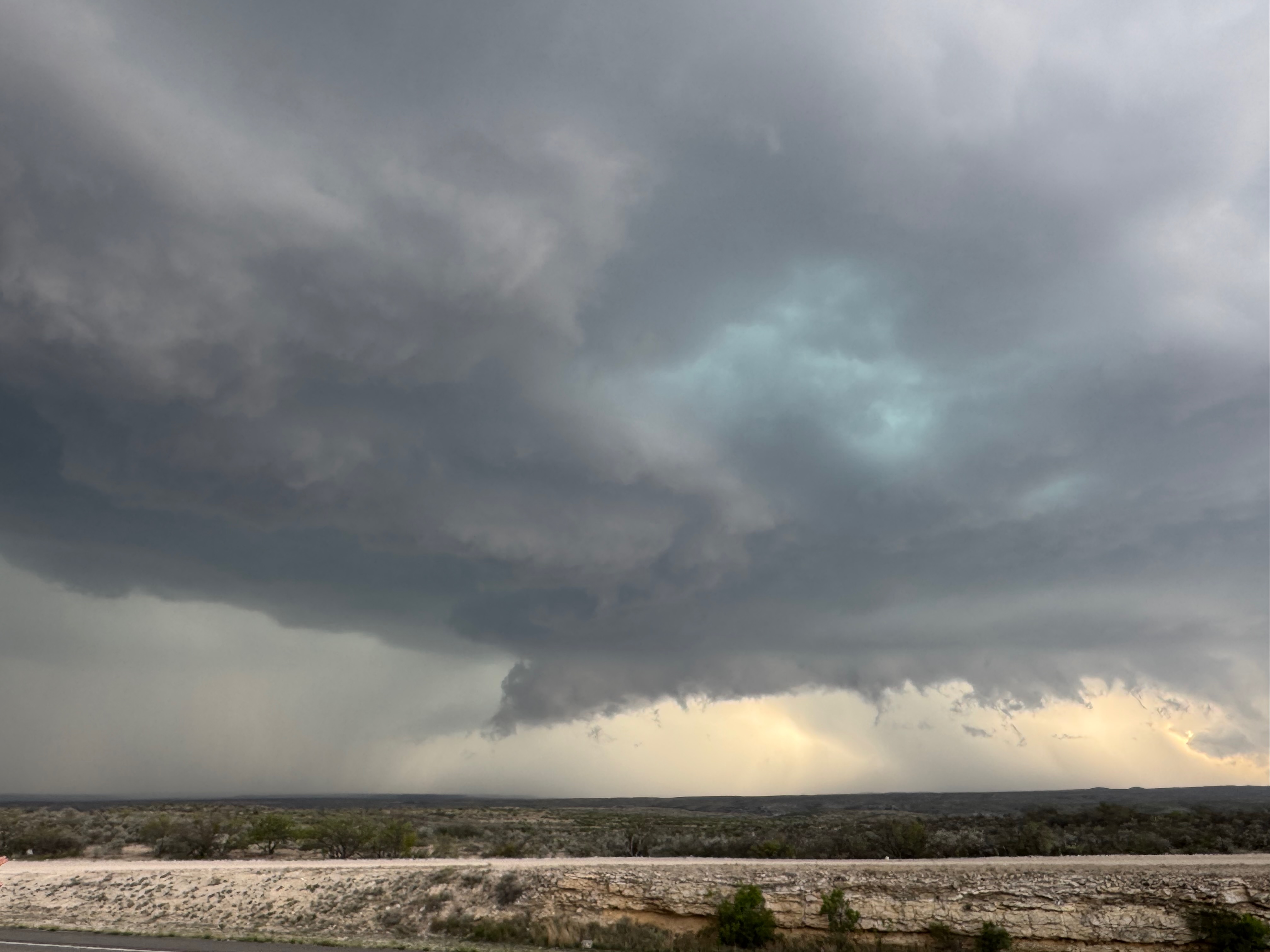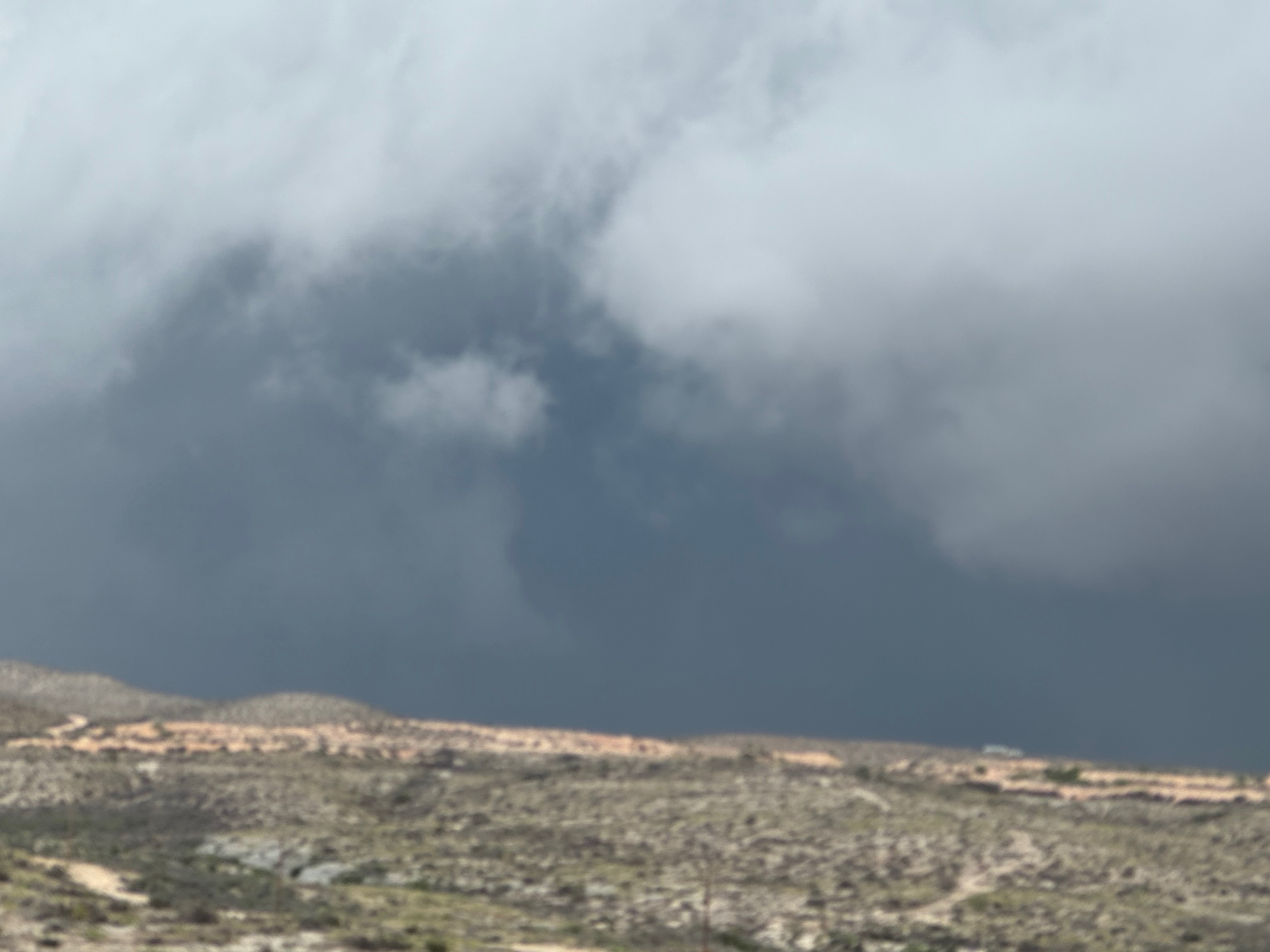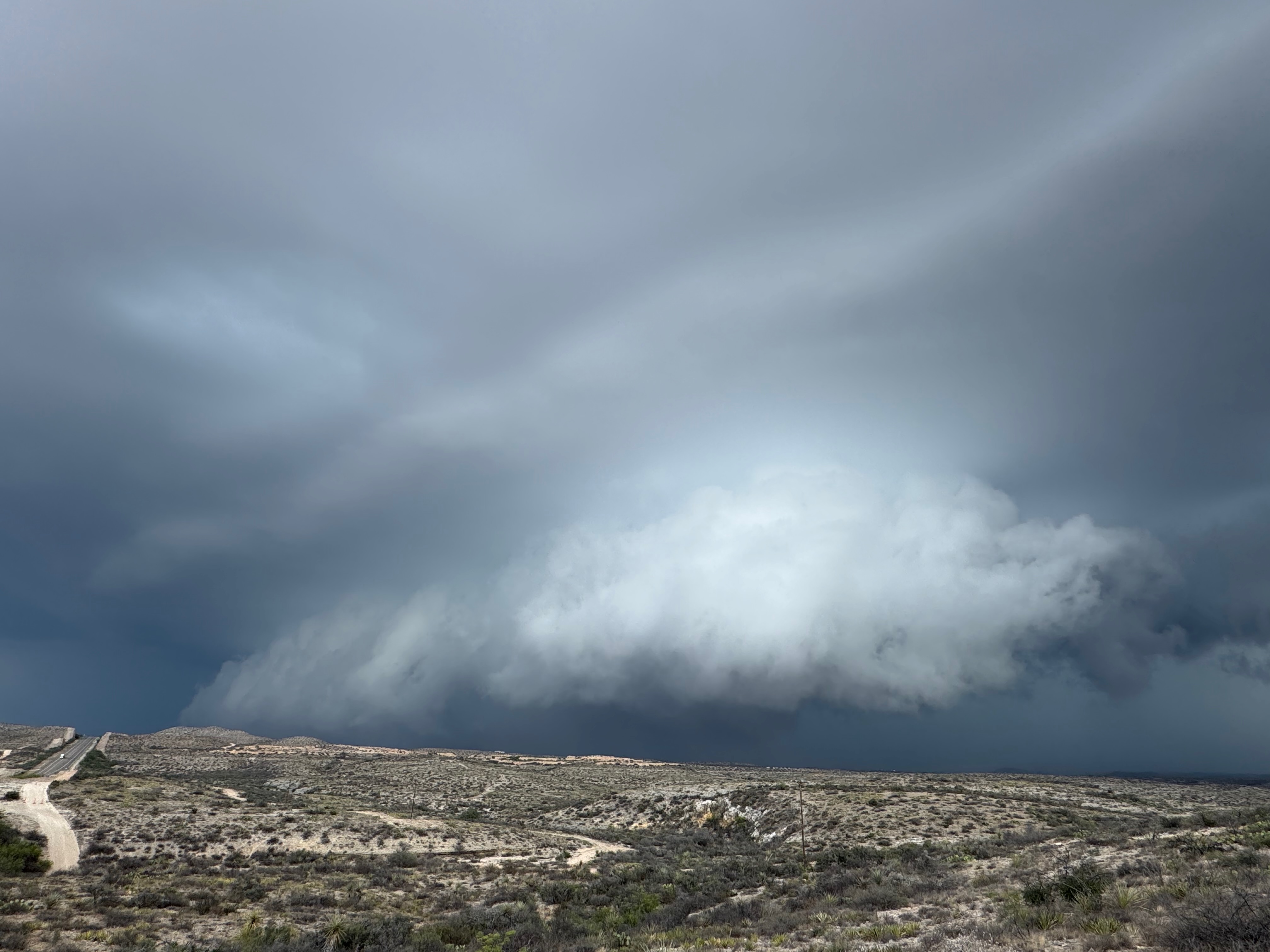 We made our way to Comstock, did a quick pit stop, and then headed west towards Langtry to get in front of the beastly left-mover. It sported some nice lowerings and a splendid shelfie-cow-catcher front end. To avoid the hail core we had to scoot a few miles to the west. The storm covered U.S. 90 just to our east and blew a semi-truck over. We looked a little bit for large hail and did not come across any.