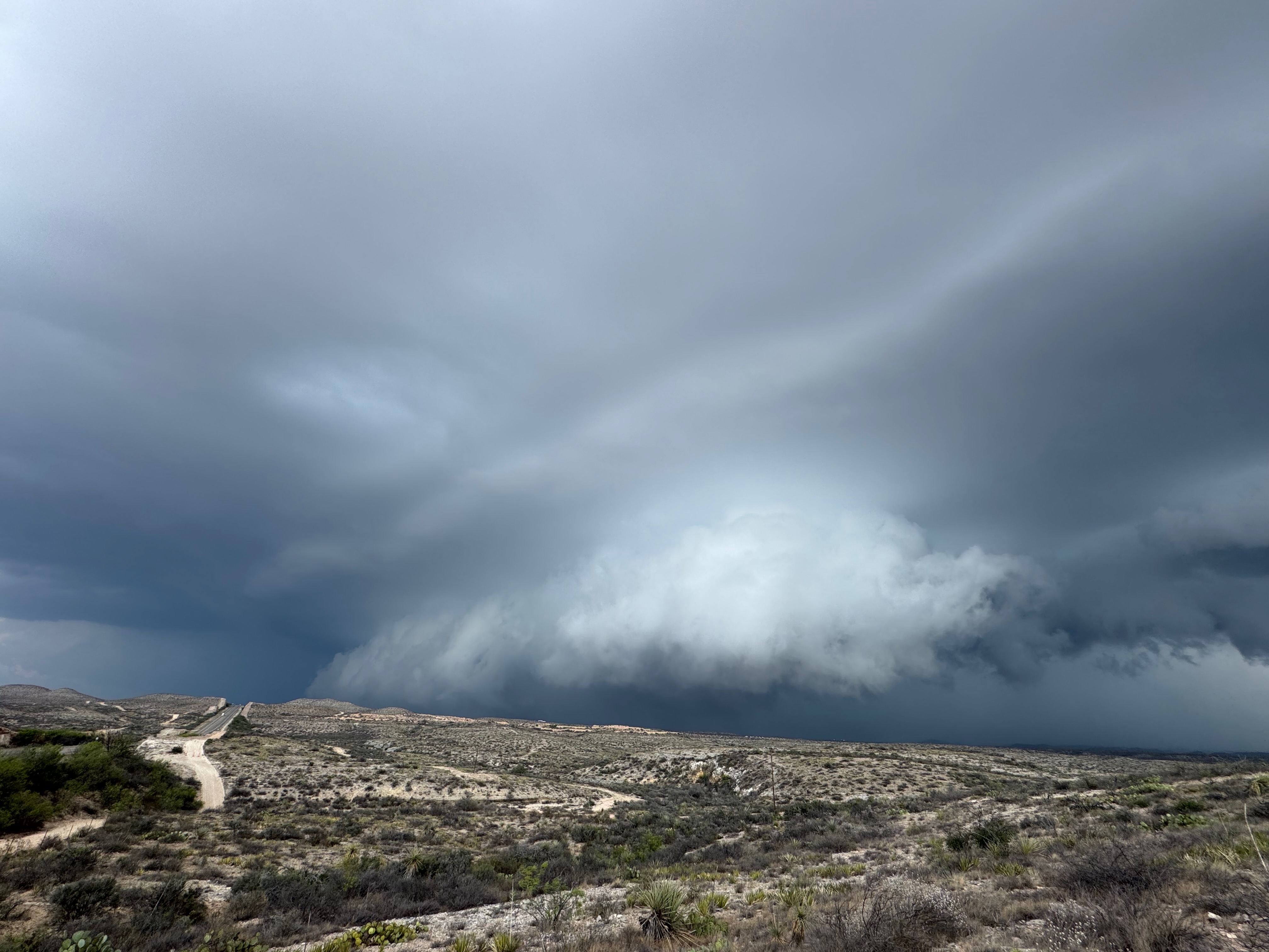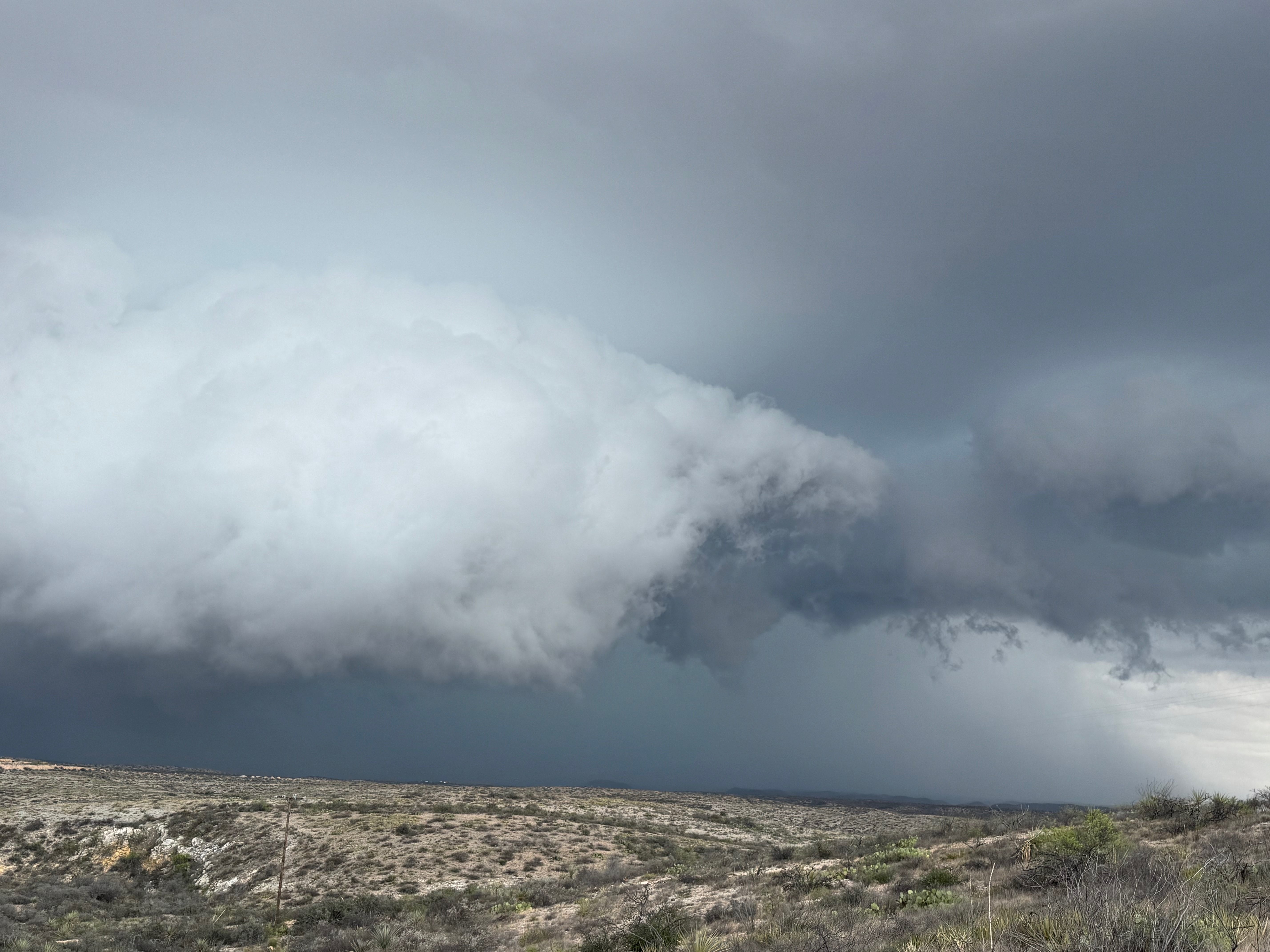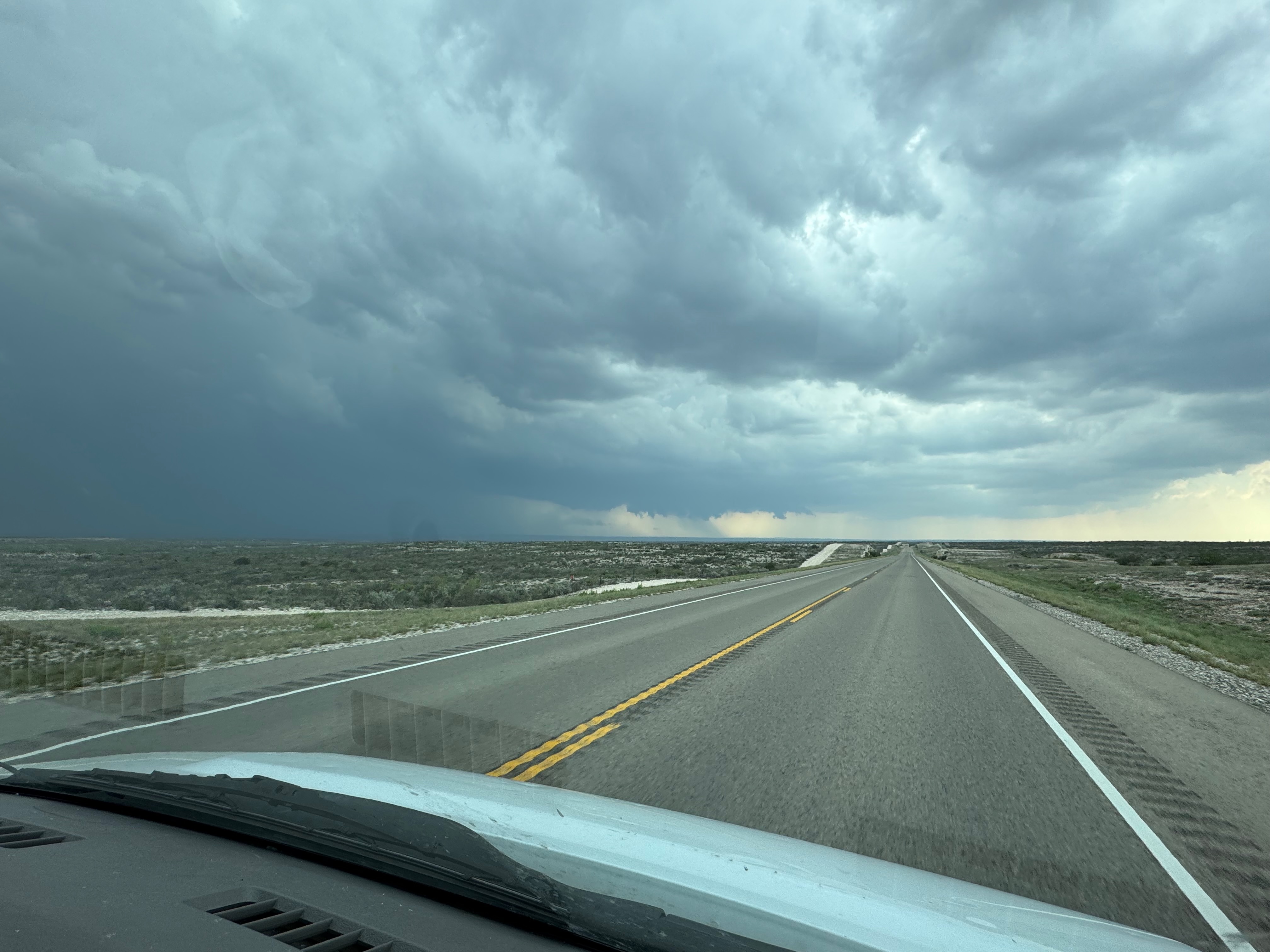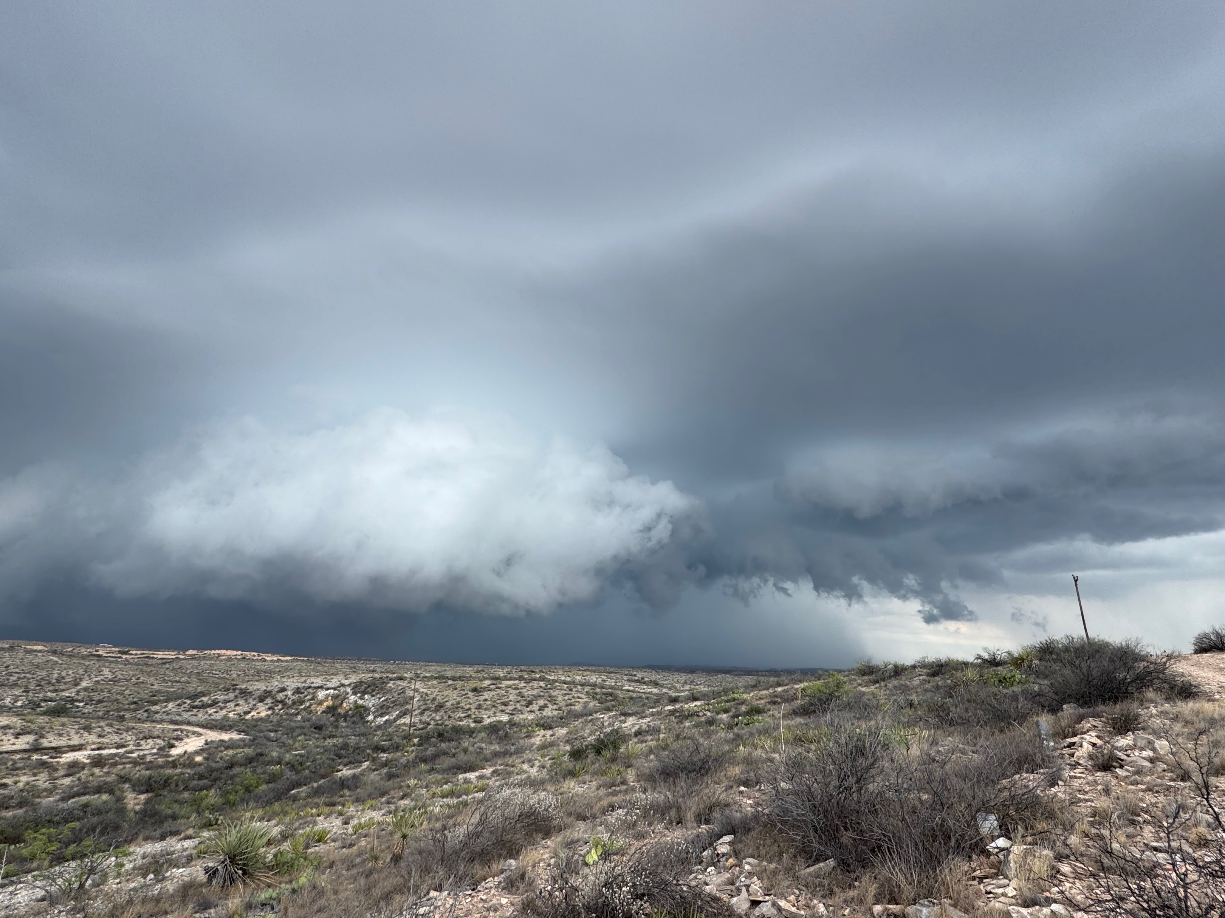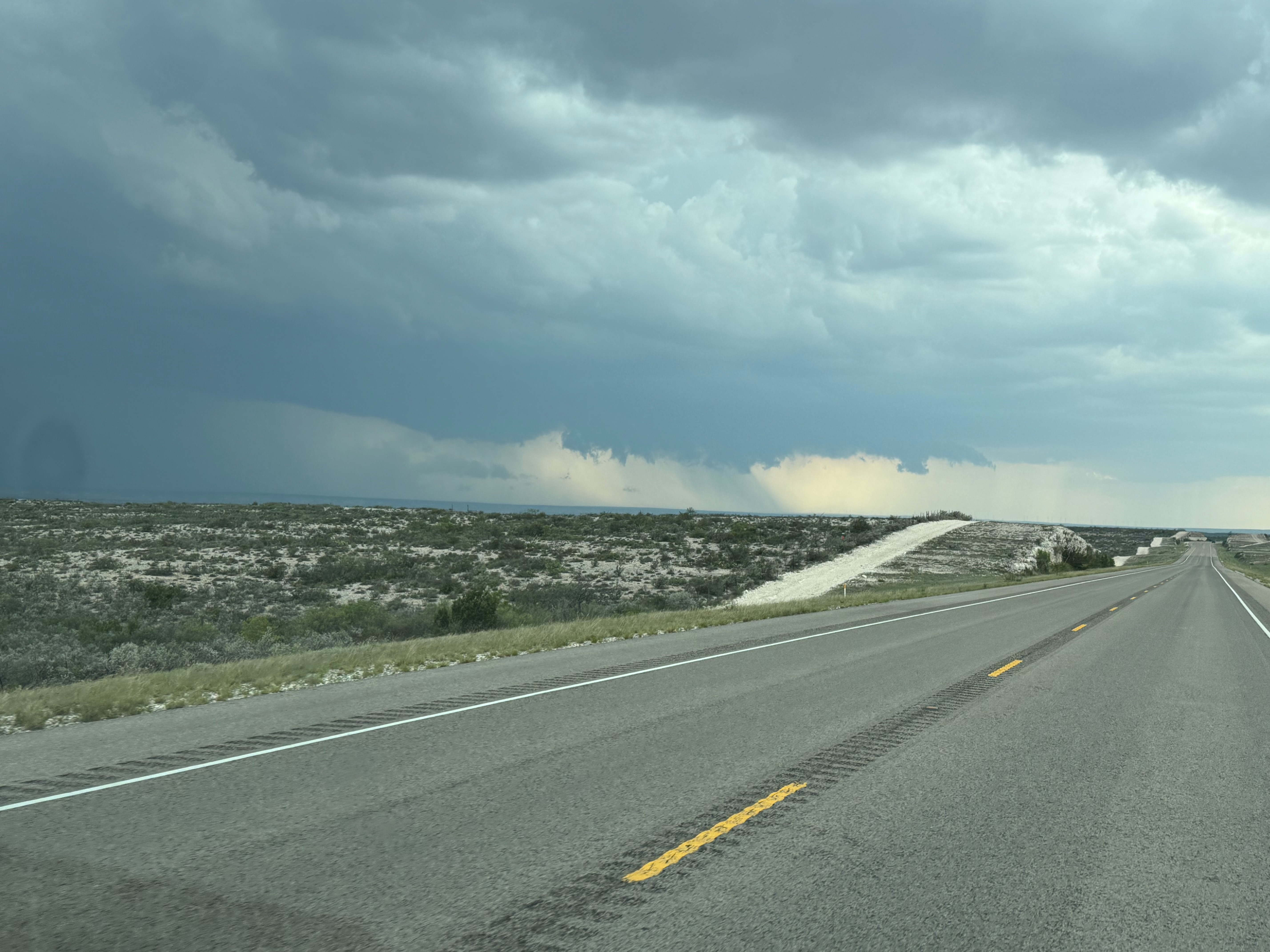 We made our way to Comstock, did a quick pit stop, and then headed west towards Langtry to get in front of the beastly left-mover. It sported some nice lowerings and a splendid shelfie-cow-catcher front end. To avoid the hail core we had to scoot a few miles to the west. The storm covered U.S. 90 just to our east and blew a semi-truck over. We looked a little bit for large hail and did not come across any.