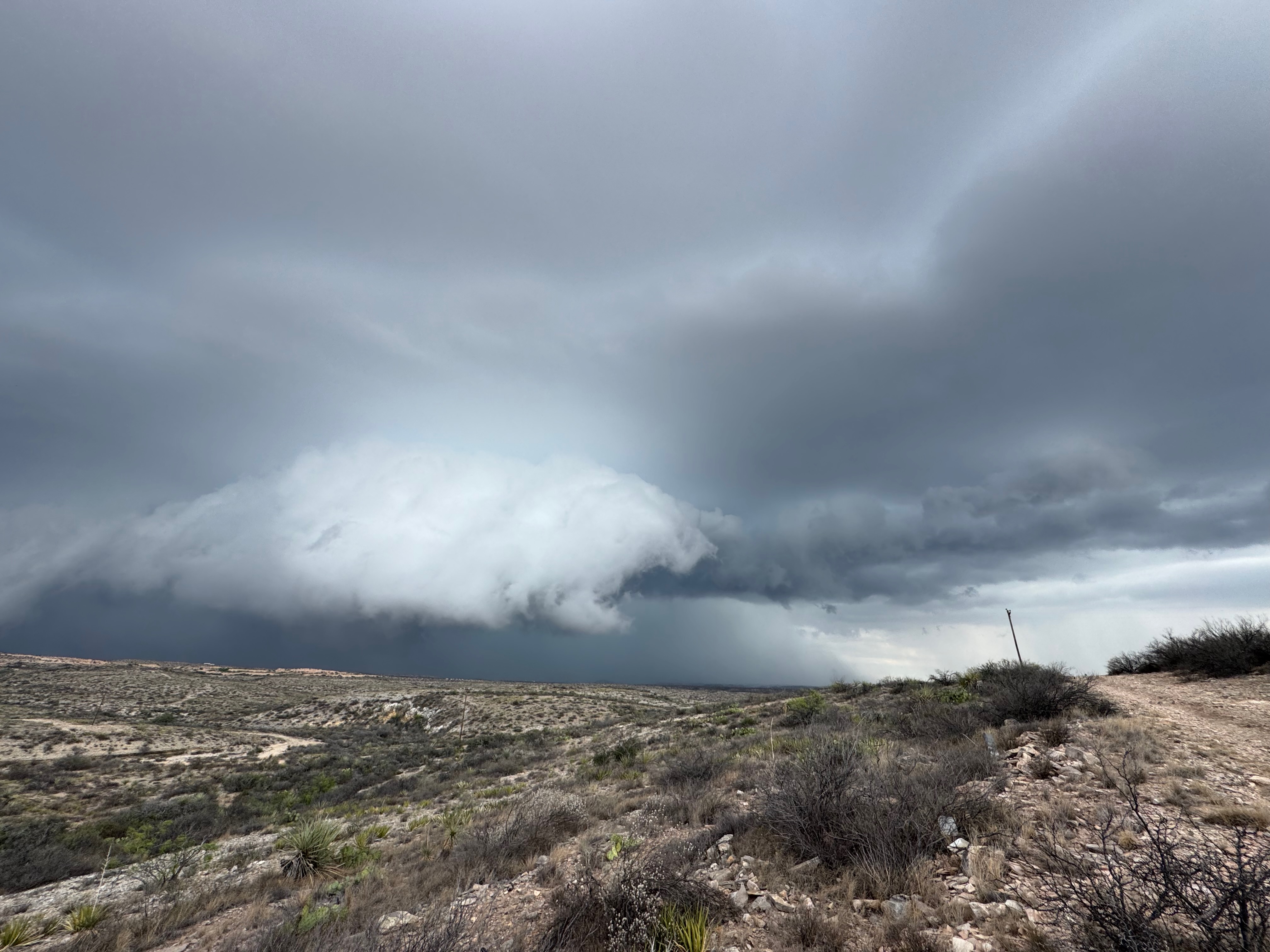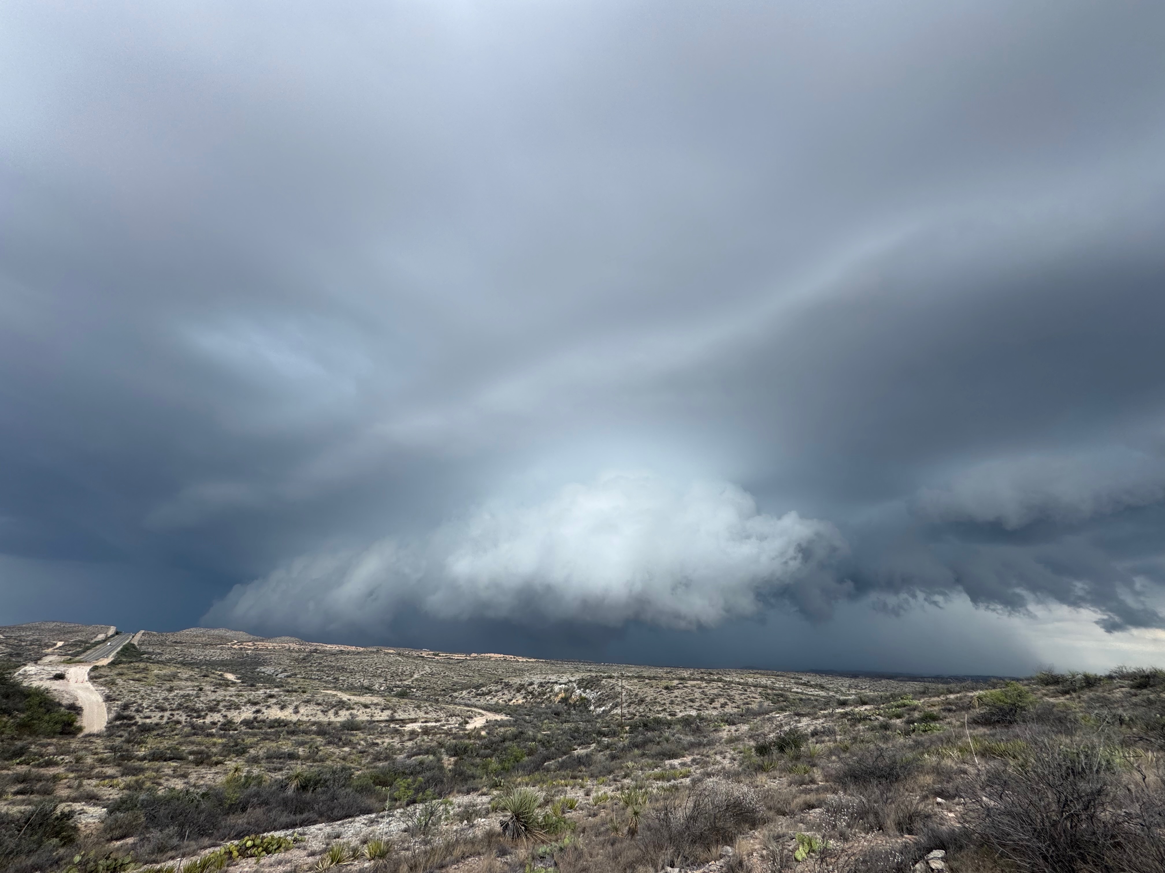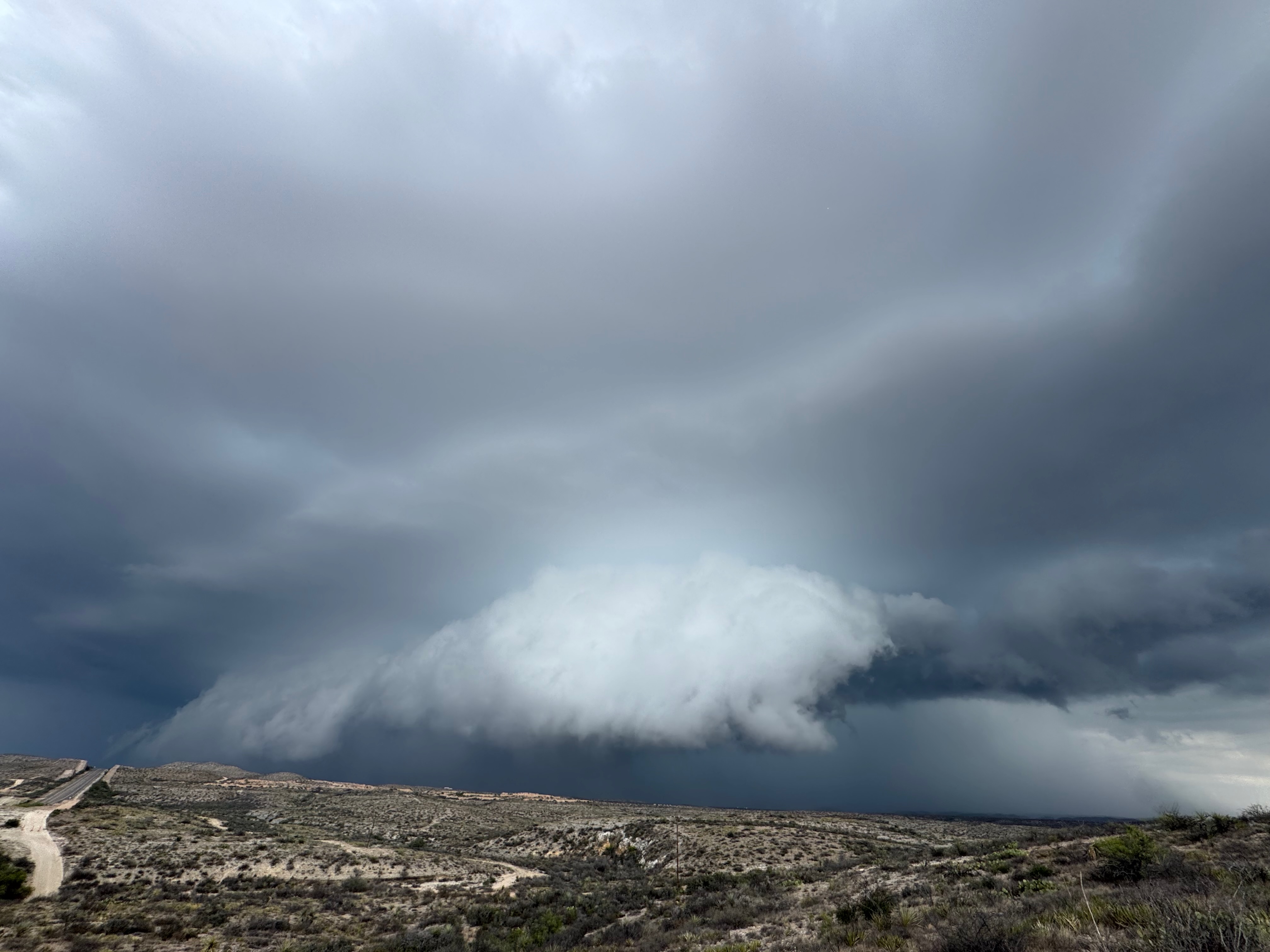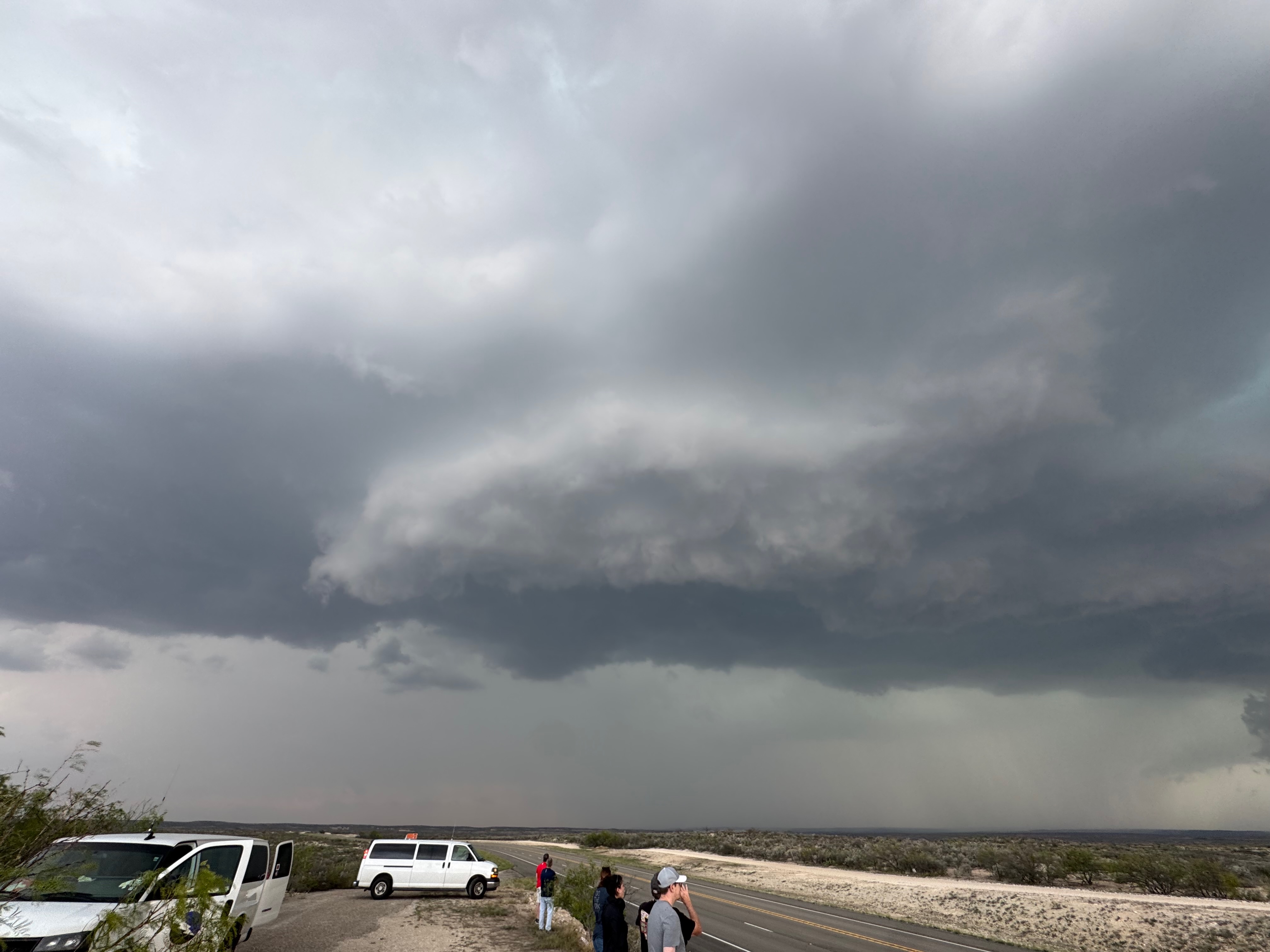 We made our way to Comstock, did a quick pit stop, and then headed west towards Langtry to get in front of the beastly left-mover. It sported some nice lowerings and a splendid shelfie-cow-catcher front end. To avoid the hail core we had to scoot a few miles to the west. The storm covered U.S. 90 just to our east and blew a semi-truck over. We looked a little bit for large hail and did not come across any.