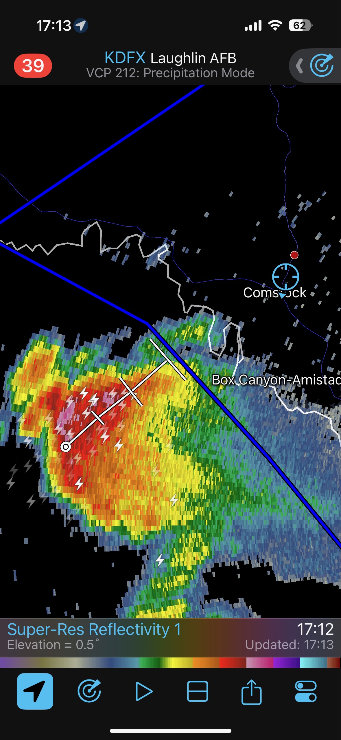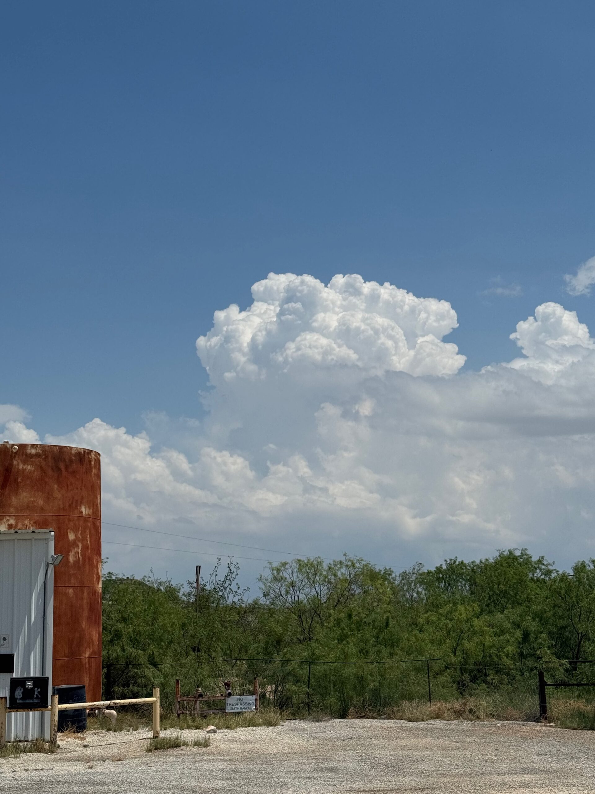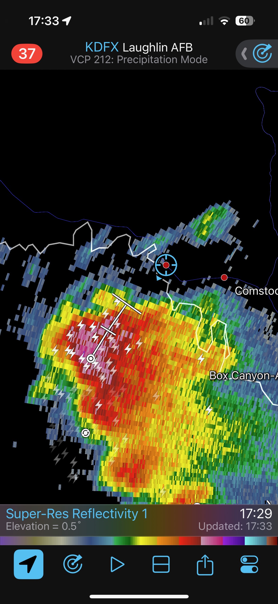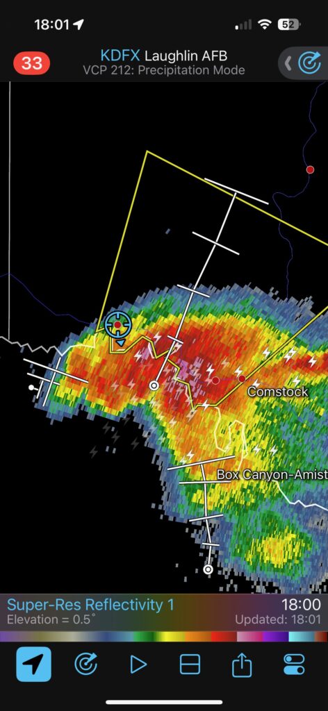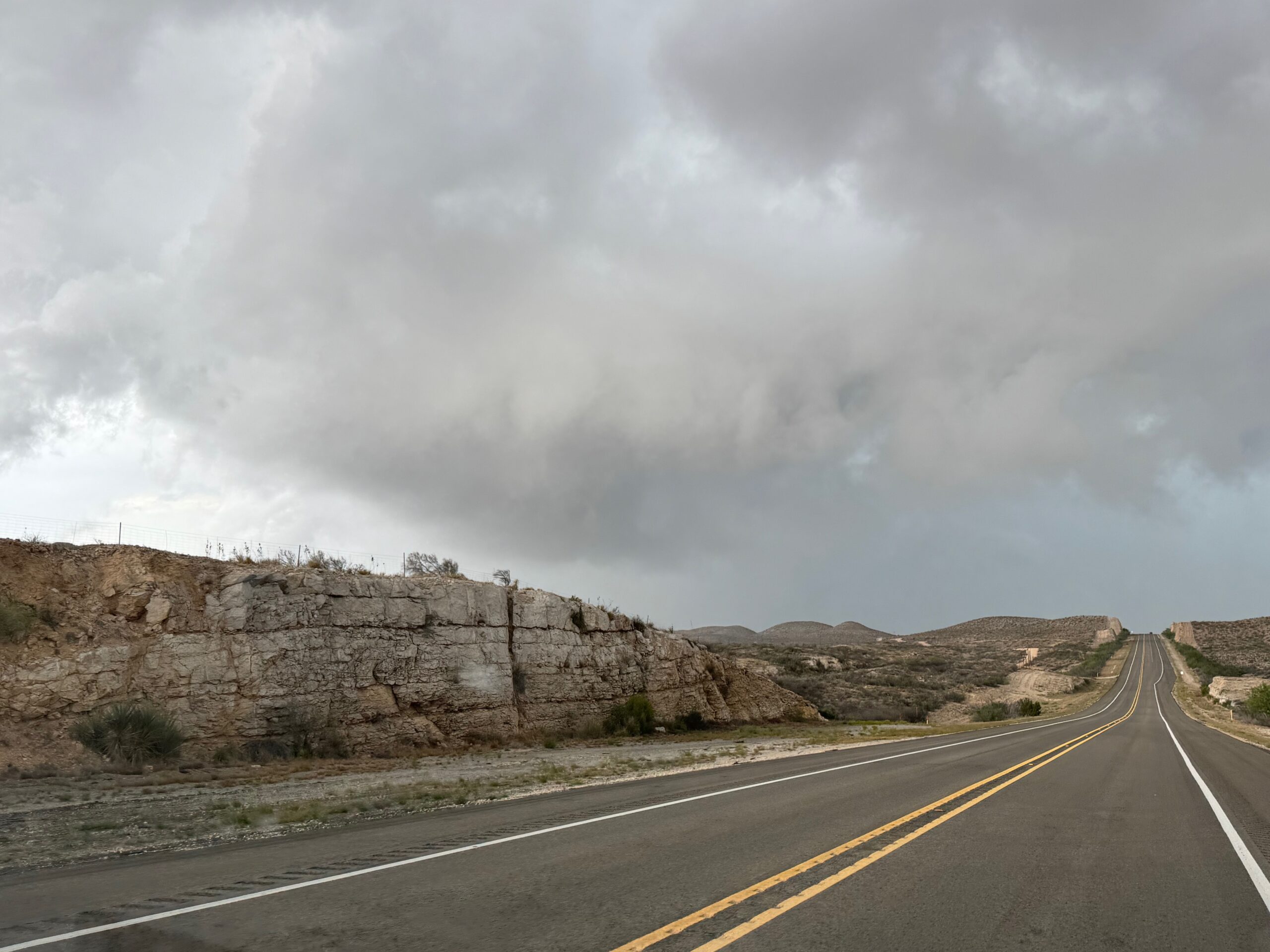 We made our way to Comstock, did a quick pit stop, and then headed west towards Langtry to get in front of the beastly left-mover. It sported some nice lowerings and a splendid shelfie-cow-catcher front end. To avoid the hail core we had to scoot a few miles to the west. The storm covered U.S. 90 just to our east and blew a semi-truck over. We looked a little bit for large hail and did not come across any.