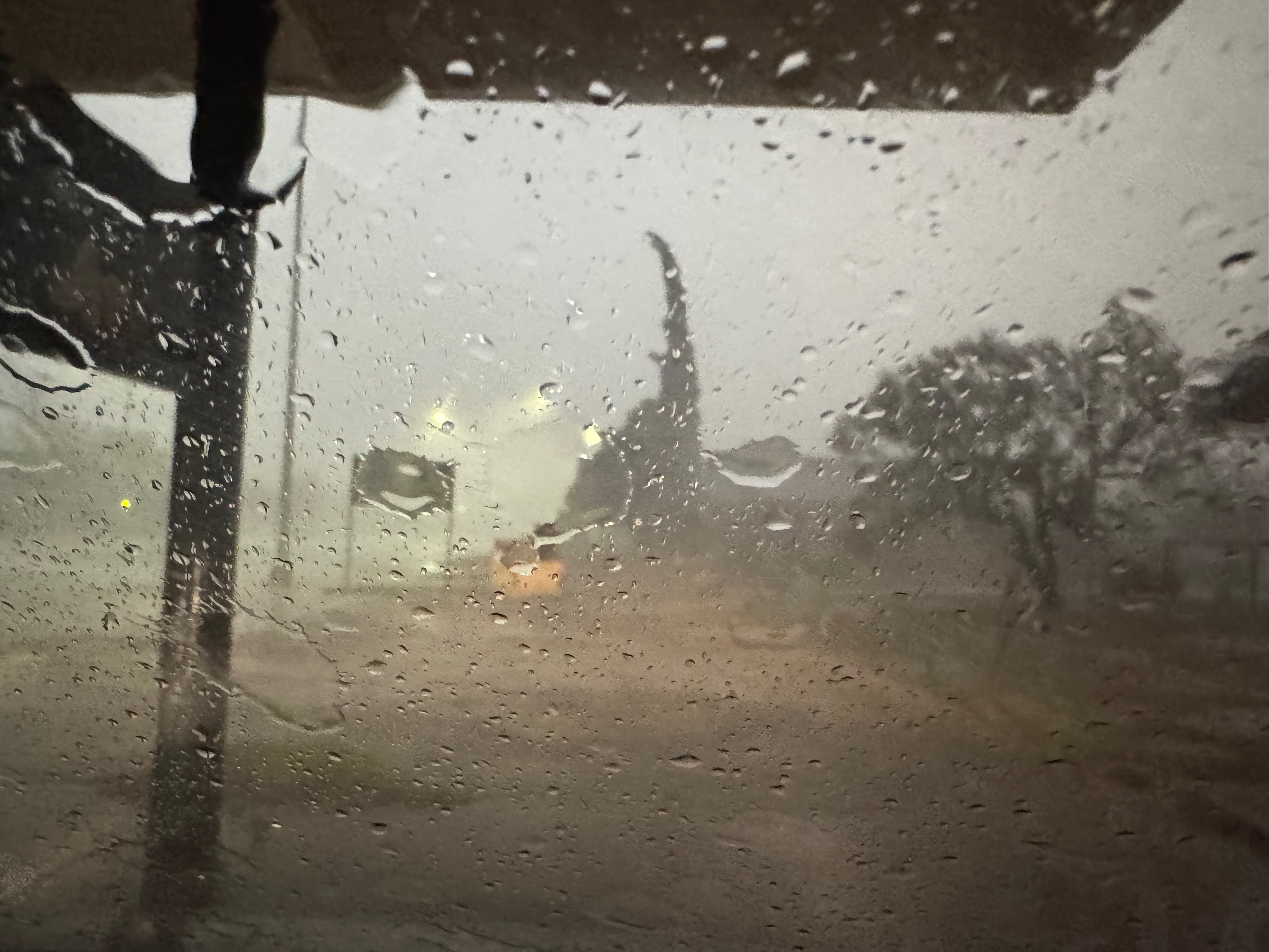 The Brownfield supercell lugged southeastward towards Lamesa. Strong inflow was filled with dust, which made it difficult to observe storm structure along Highway 137. Hail to baseball size or larger was reported, and we located a spot in Lamesa to ride out the core. We got hit with strong wind and a one-inch hail…maybe a little larger. The storm was a bit of a mess and unphotogenic at Lamesa, and I let it go. After a relaxed Mexican meal in Lamesa we attempted to head west to our booked rooms in Seminole, but the road was closed due to power lines down. We successfully re-booked in Brownfield.