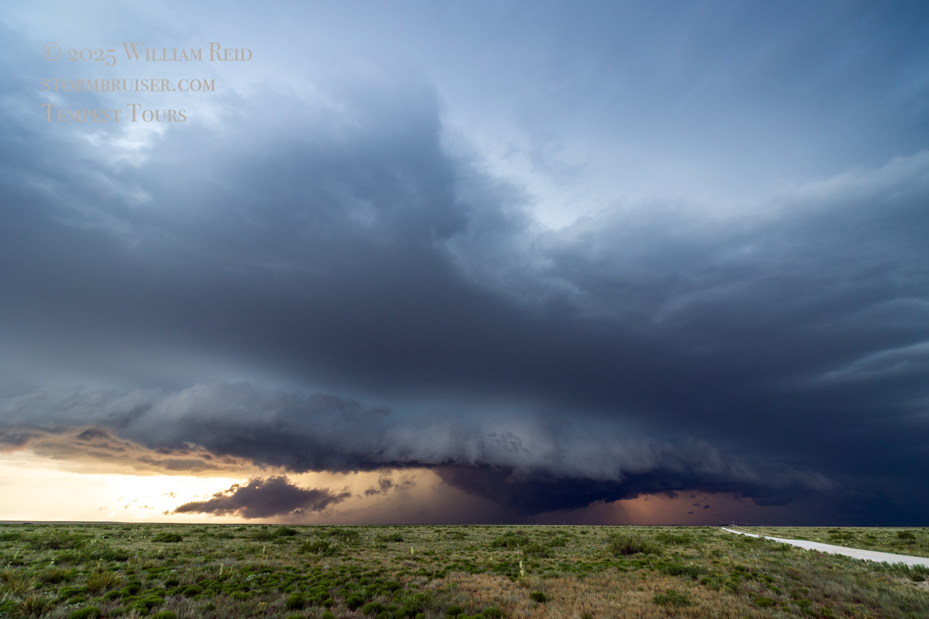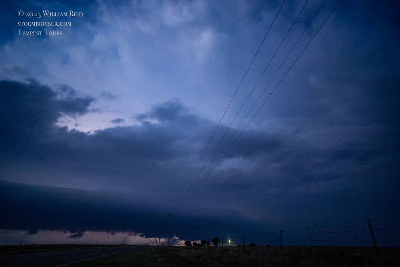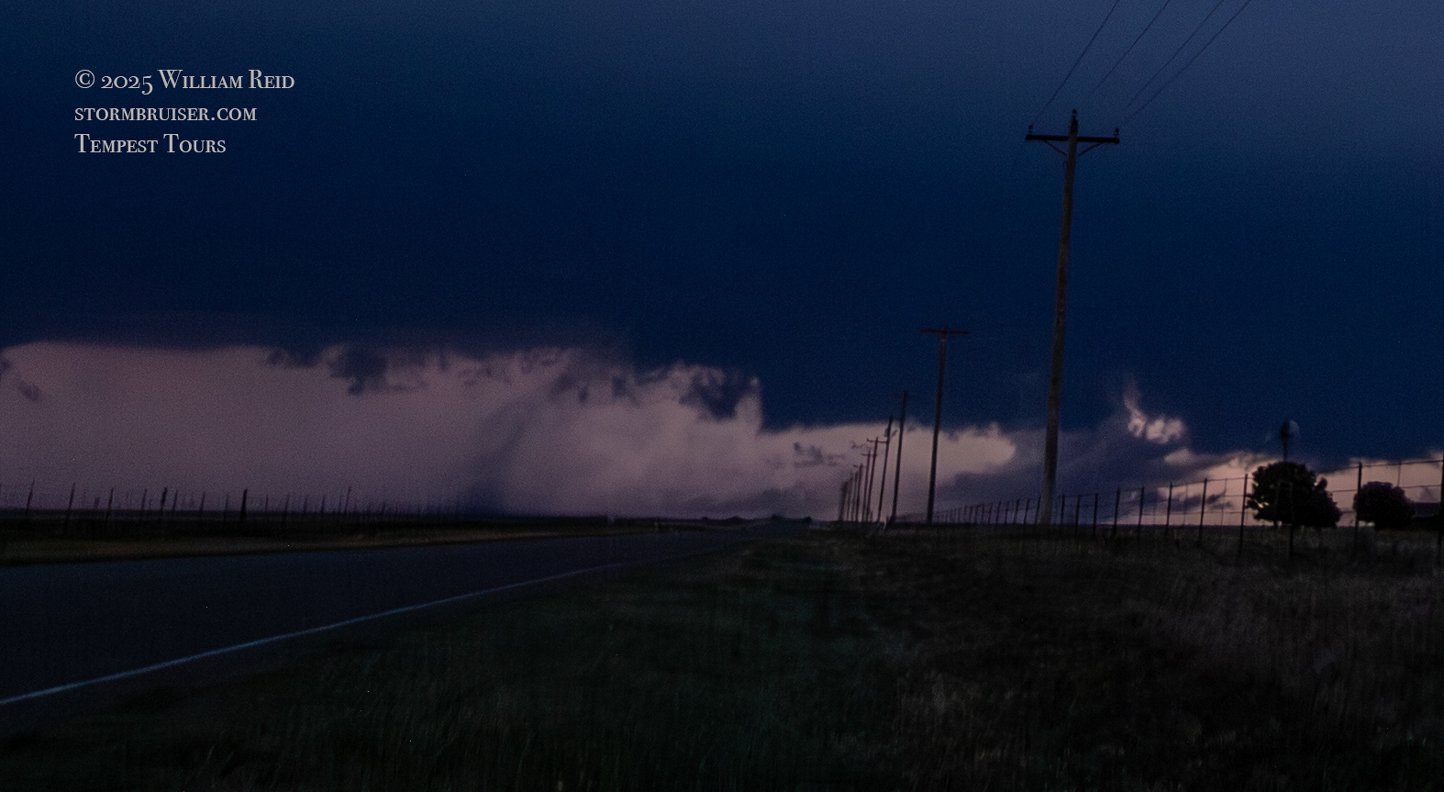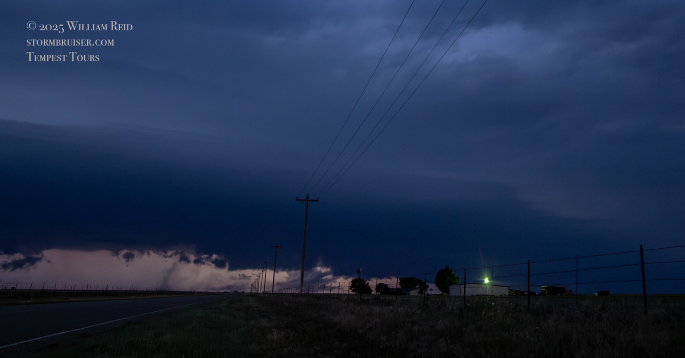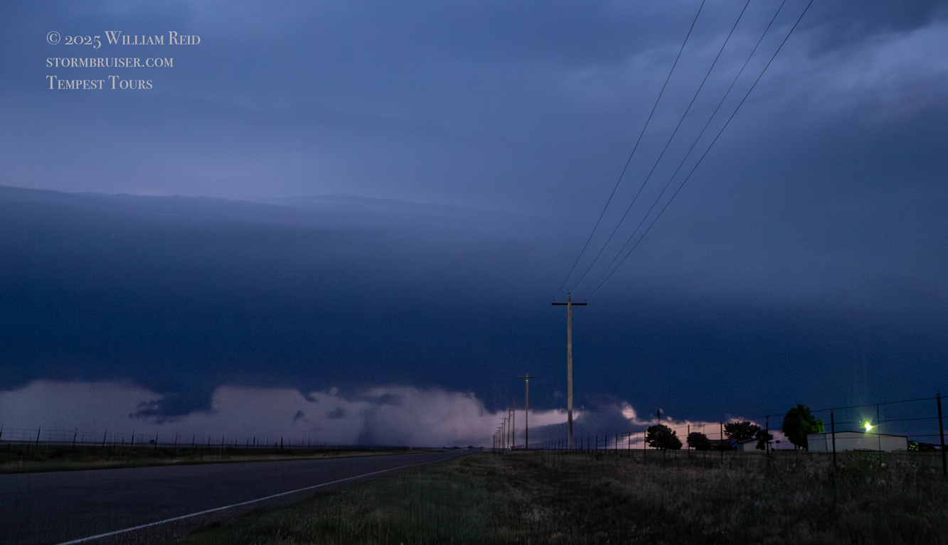The storm maintained a good look as it continued to the east just after sunset. We had to scoot back south to Fort Sumner and our road east to keep with it. At Melrose it was getting dark, and we went north a few miles to get another look (see the last five shots in the Canon section above). We had a decent supercell going, and some of the lightning flashes revealed a fairly solid and skinny tornado which we, apparently, did not notice at the time.
