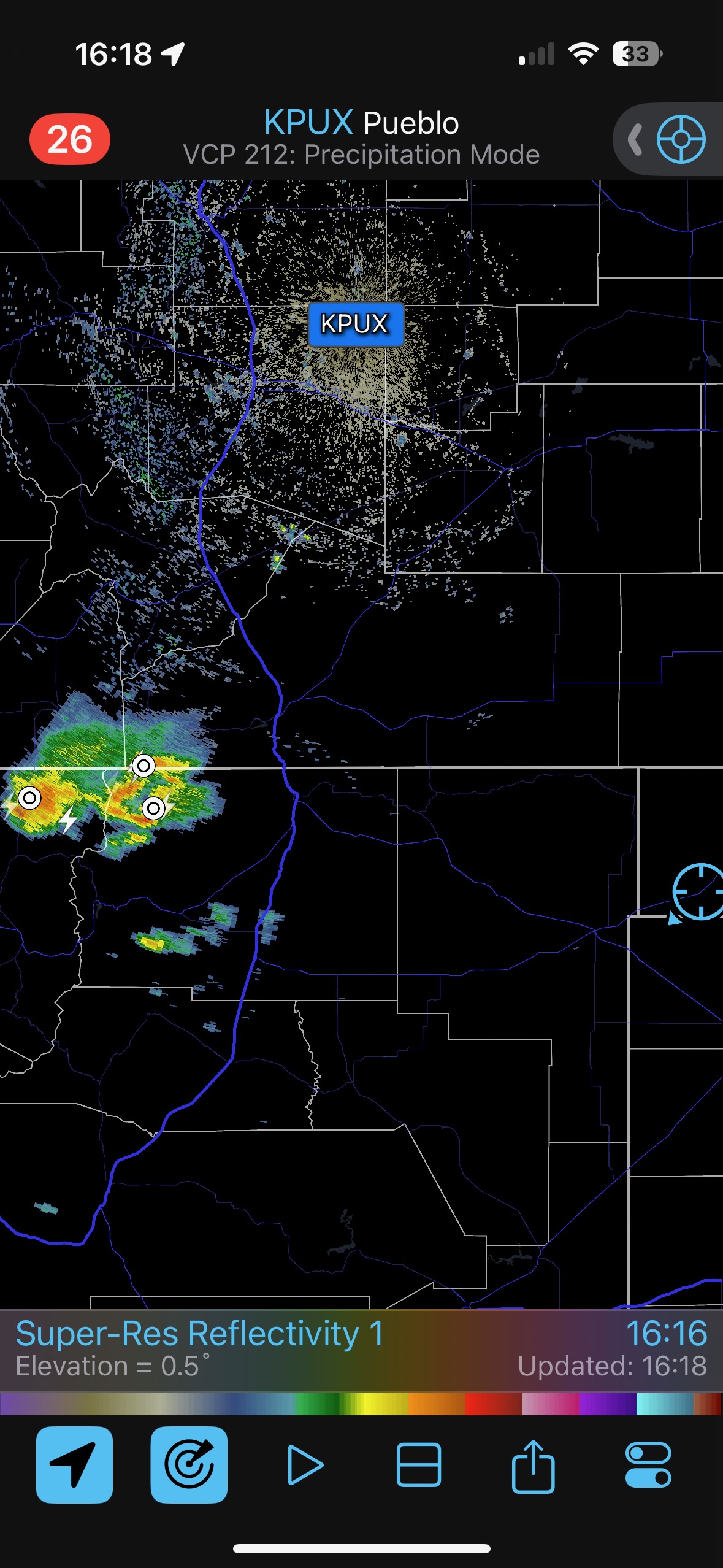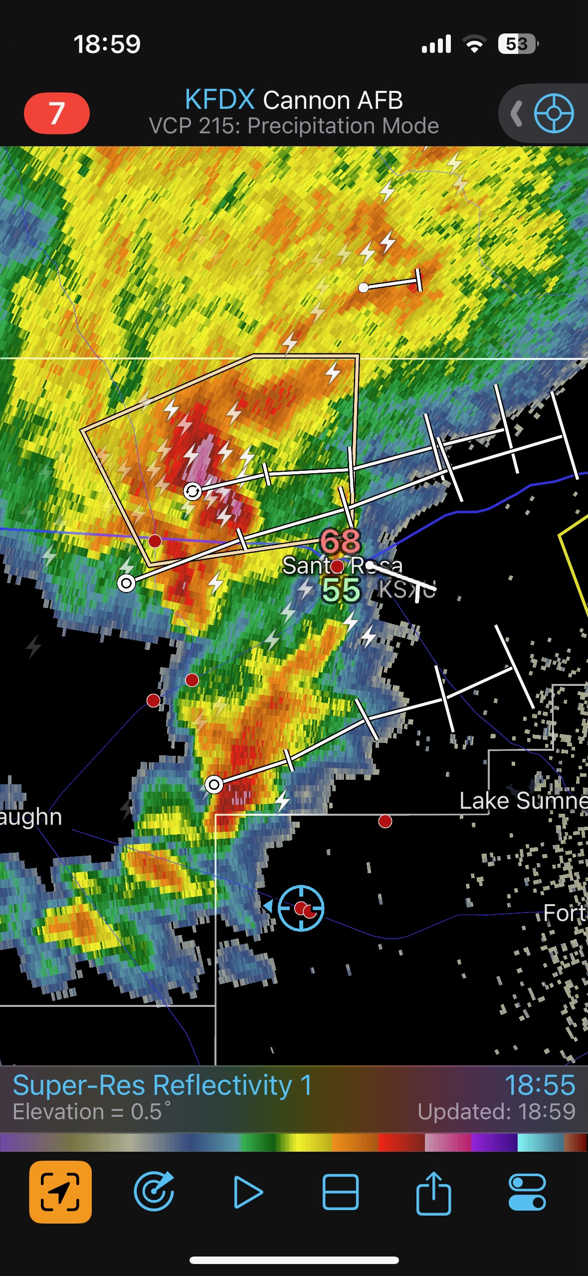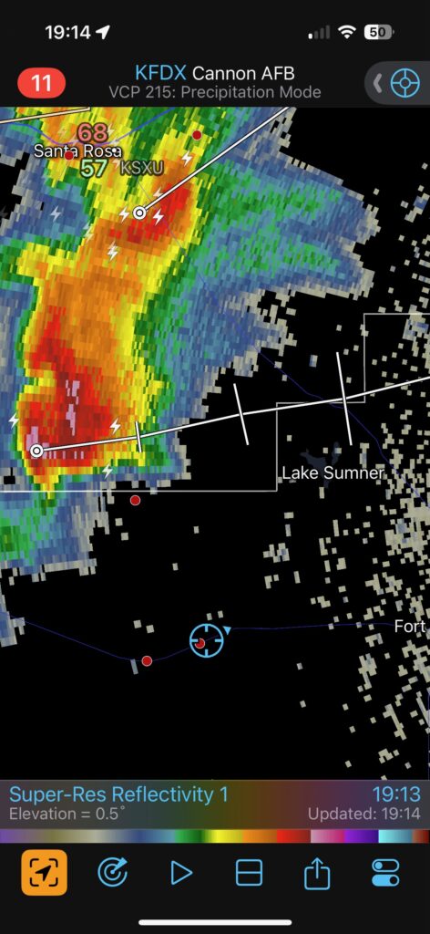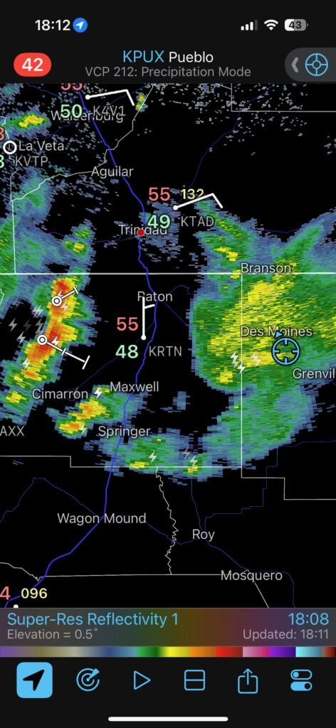 Let’s get the June 3 reposition day iPhone pics out of the way, first. After we checked out some survey markers and checked into the Holiday in Clayton, we took a look at the activity to our west near Des Moines. It was pathetic.