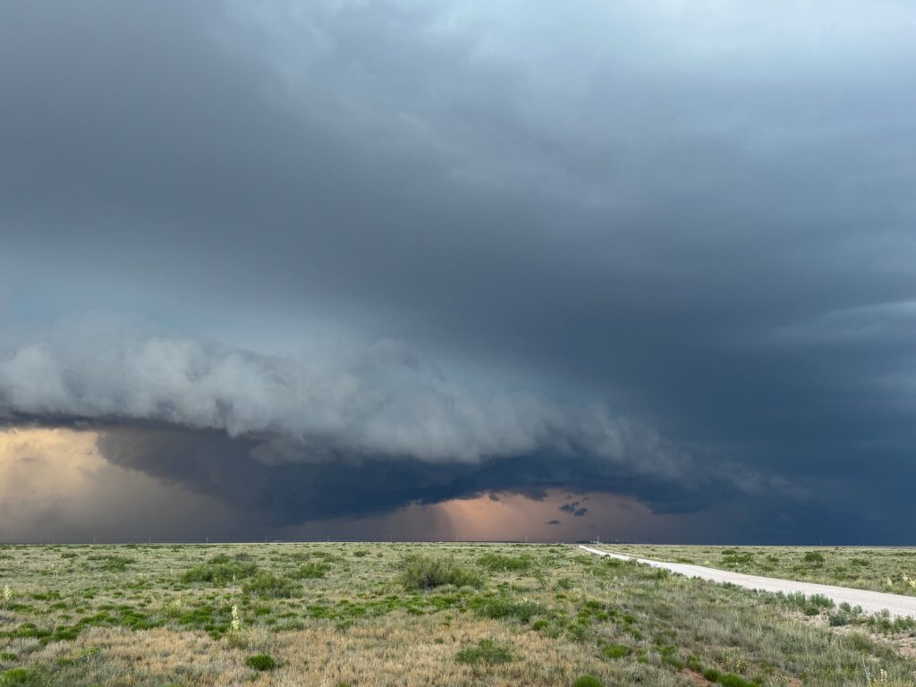 On this chase day in eastern New Mexico we found a supercell near Fort Sumner and Melrose, NM. My pics at dusk show a little tornado with the storm north of Melrose (below).