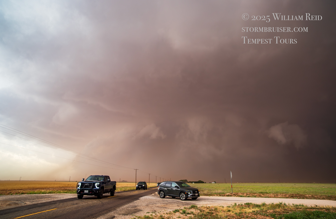 Youtube link for video by Chris Gullikson, including rooftop timelapse. Chris and the Tempest Tours photo group were generally within a few miles of our location in the Morton area. He did not scoot east to Morton as early as I did, and wound up with a great look at the dusty wedge to his north.