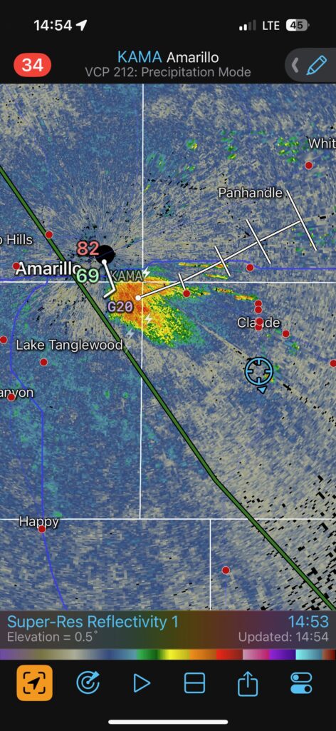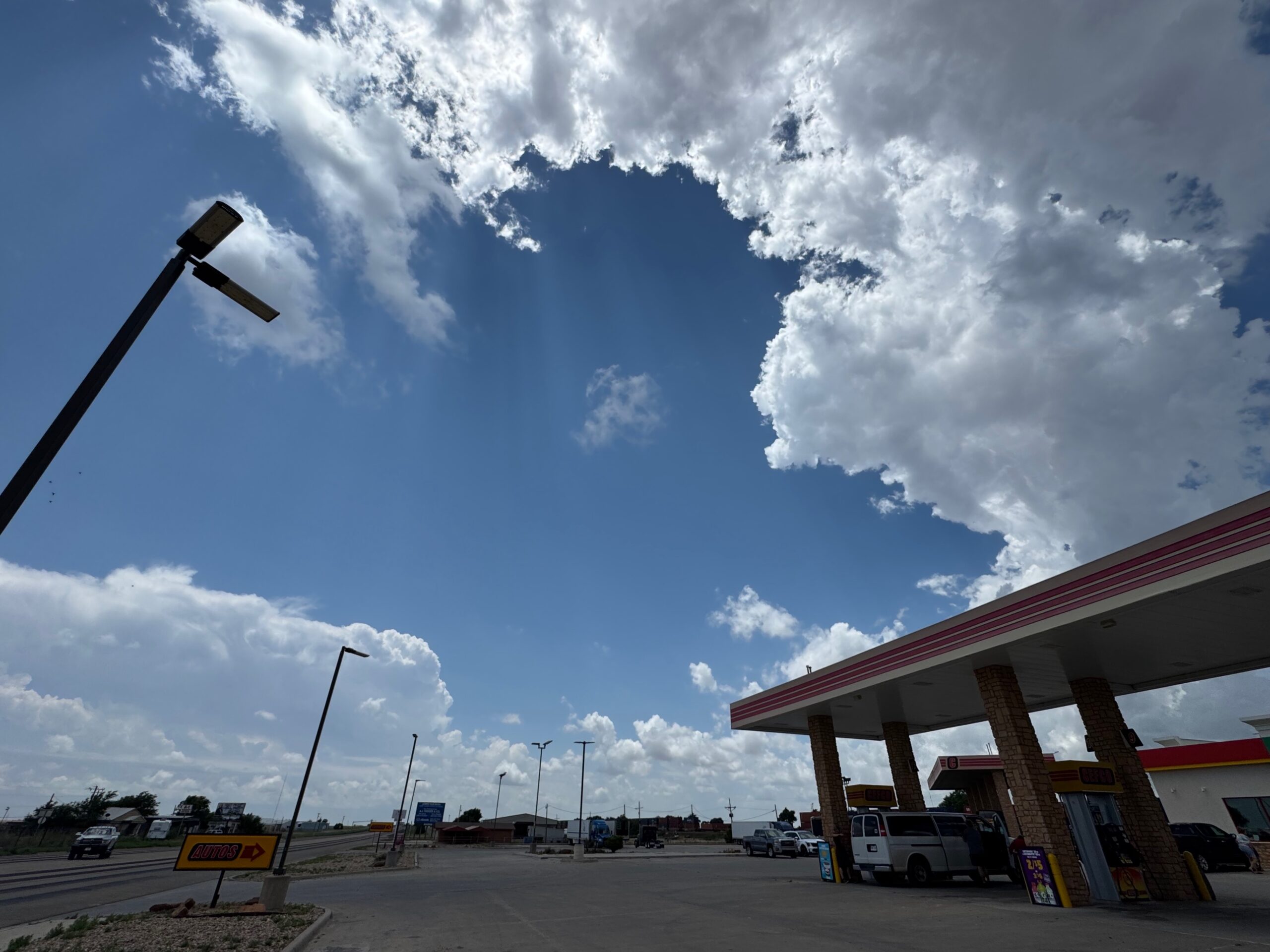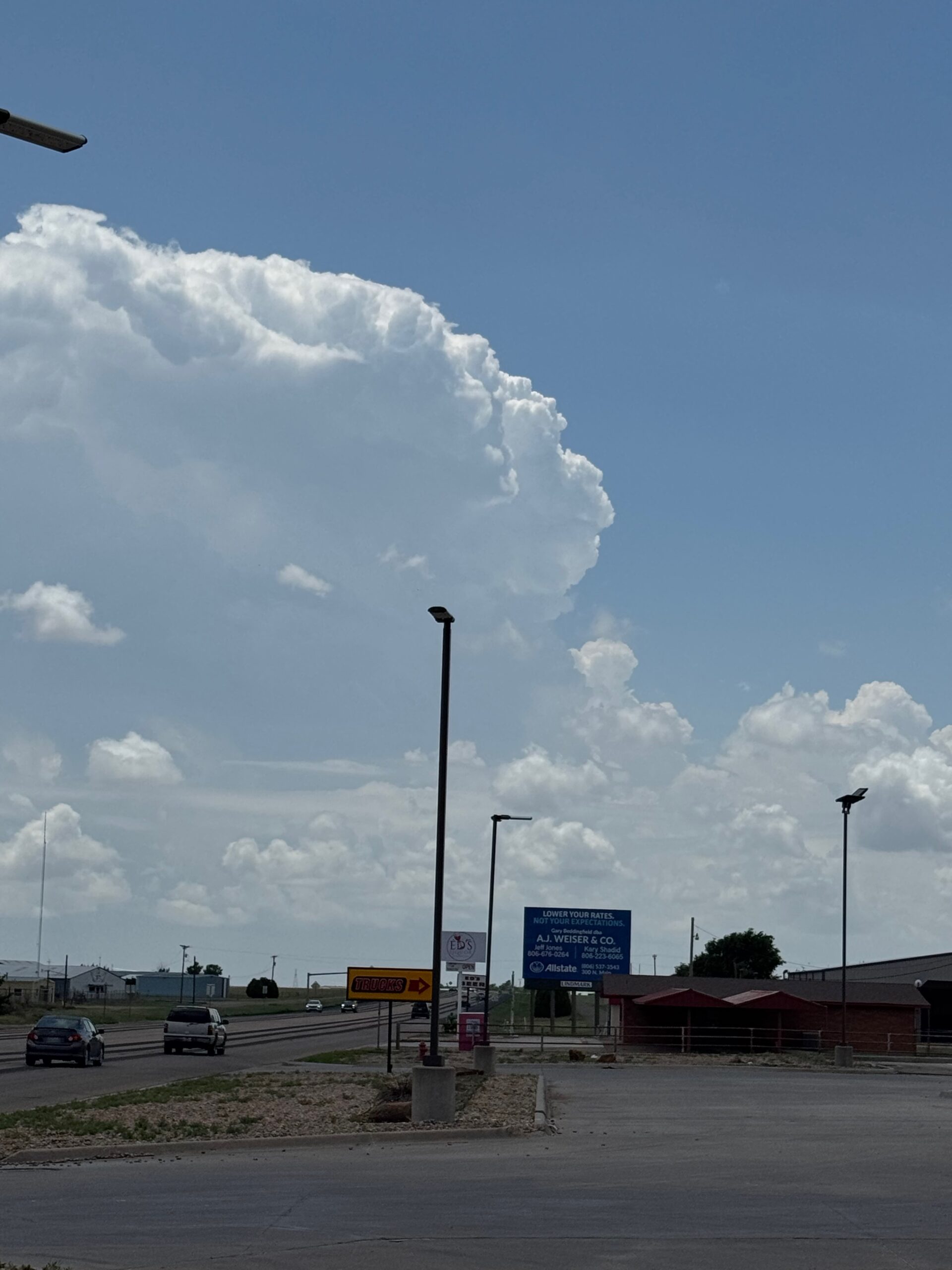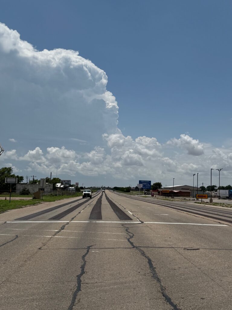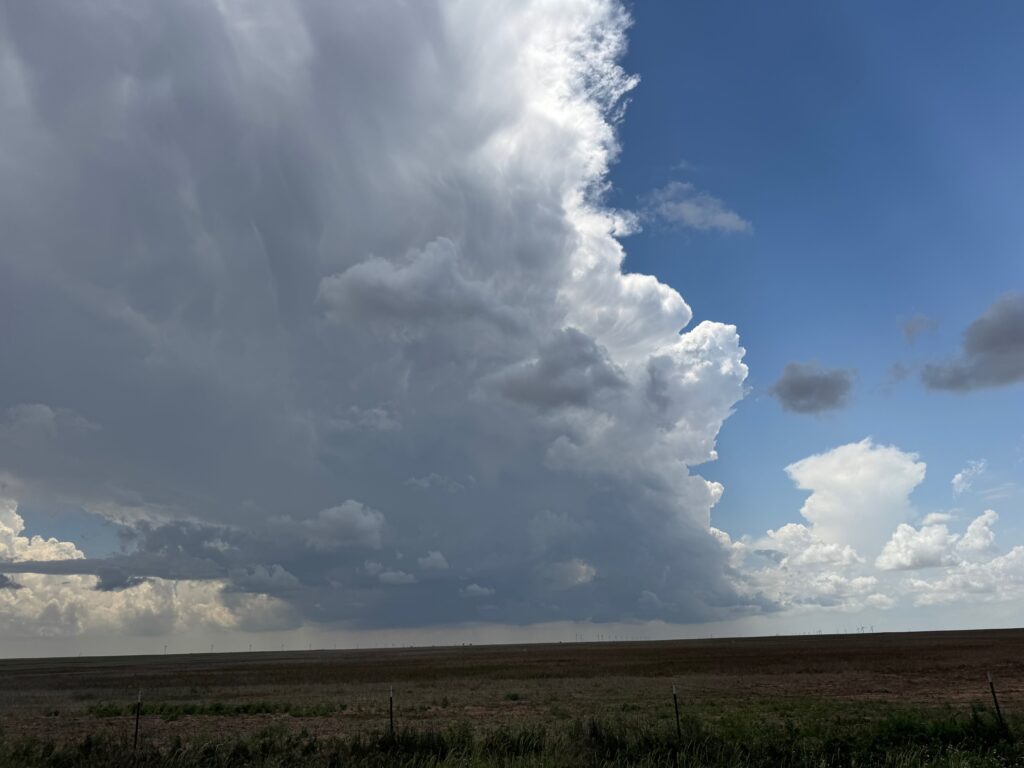Once again our chase day began in a very convenient location. This time it was Amarillo, and we found a yummy spot for lunch on the east side of town. Shear and moisture were really good again on the Panhandle. It looked fairly obvious that we should stick pretty close to Amarillo for the start of the show. Plenty of midday elevated convection was throwing a bit of shade onto matters, figuratively and literally. But that junky stuff moved out of the way soon enough, and we had big towers forming really close to Amarillo by mid-afternoon.
