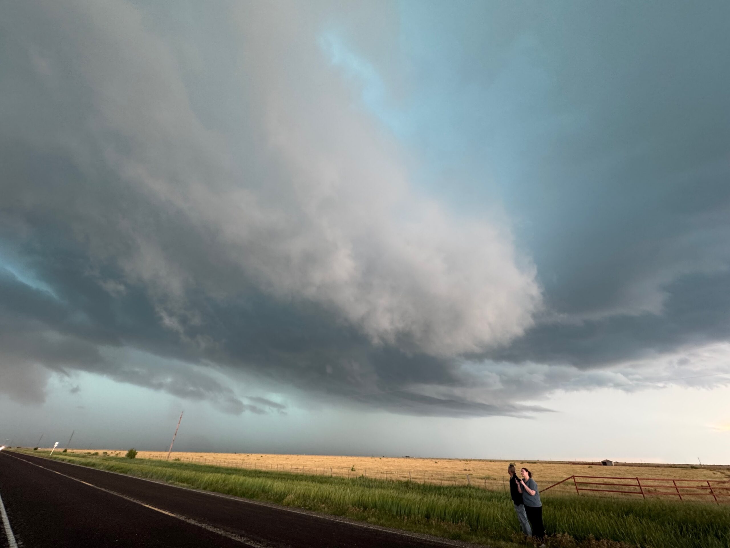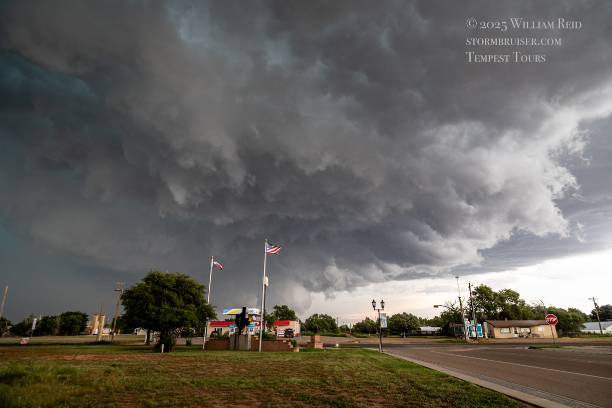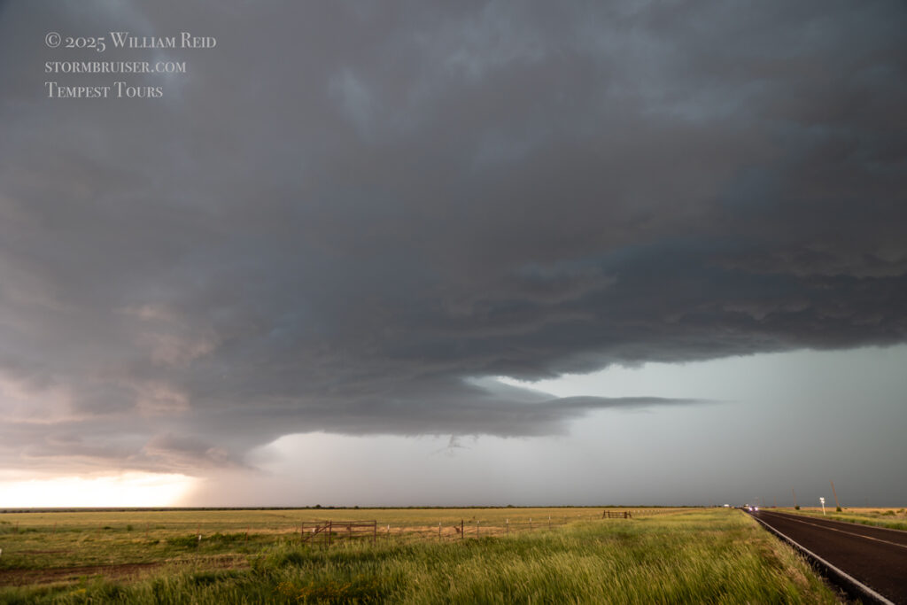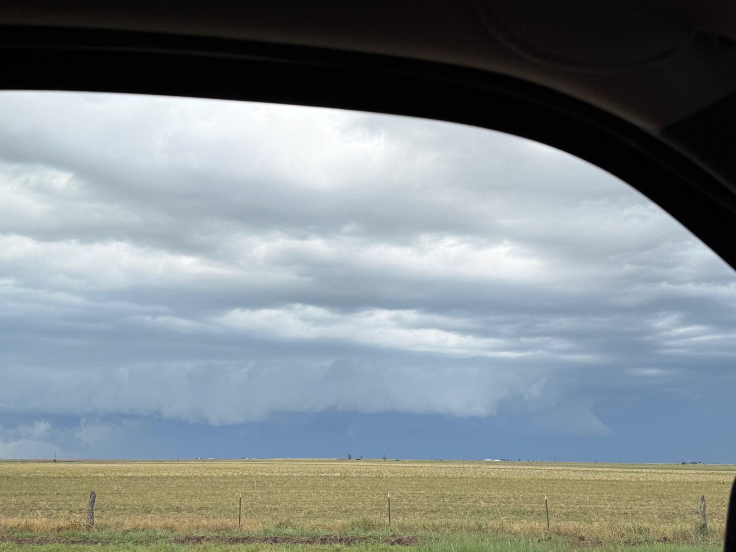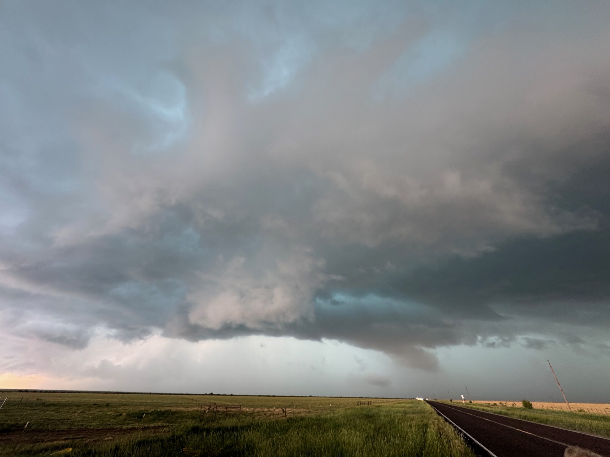 At Turkey, we were met with some coolish outflow and a long line of chasers from the north just prior to the advance of a shelf cloud. This was outflow-ish junk with wind and hail, and little-or-no tornado chance. Am I jaded now? We waited out the wind and hail under some cover at Turkey, but the main core was a few miles to the east. I was done with this one, and we went back to Amarillo for the night, with another storm or two to observe near town.