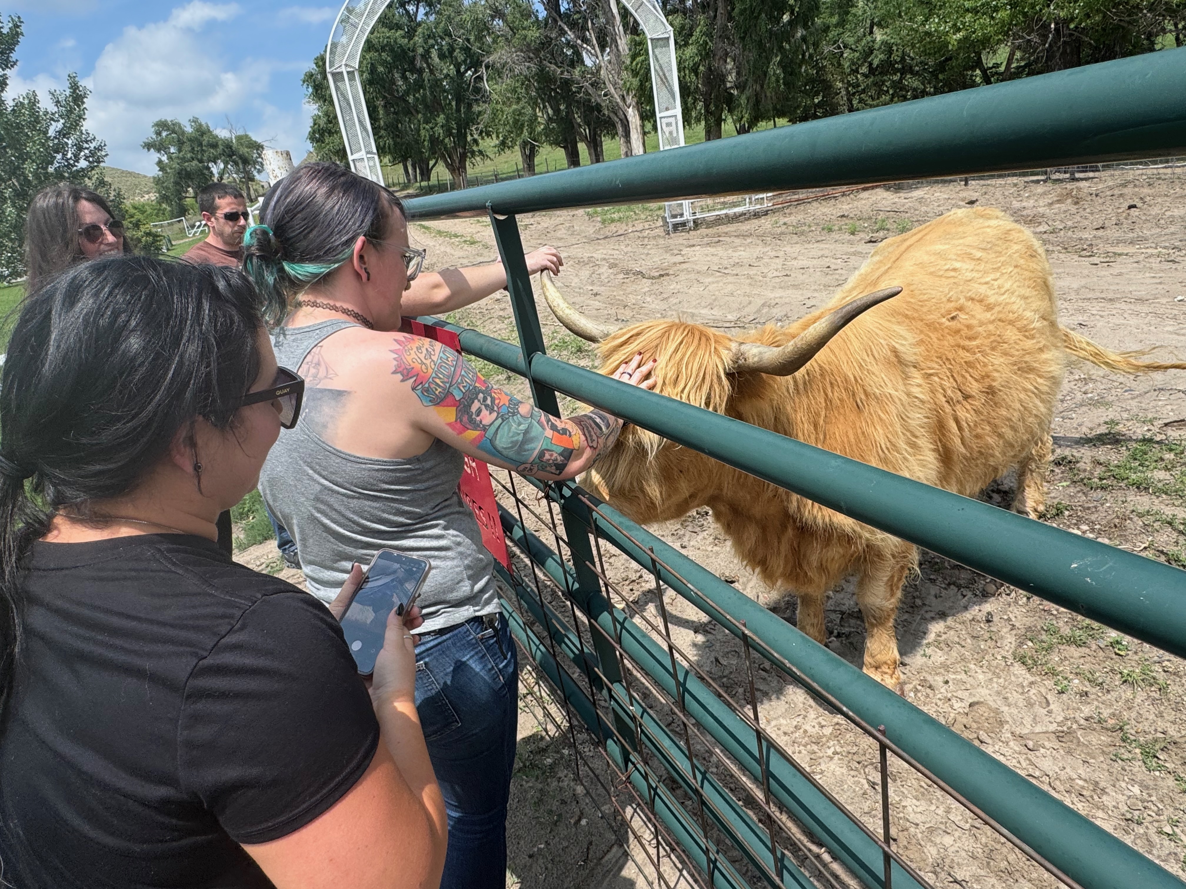 We had a late-morning brunch in Valentine and then began to drift southward. Any storm development would likely not be until rather late in the afternoon. One stop was at the old (Bryan) bridge over the Niobrara, and another stop was at an animal farm in Seneca, a little west of Thedford (first two photos below). We were killing lots of time along U.S. 83, as I felt quite comfortable with regard to where we needed to be if something were to develop.