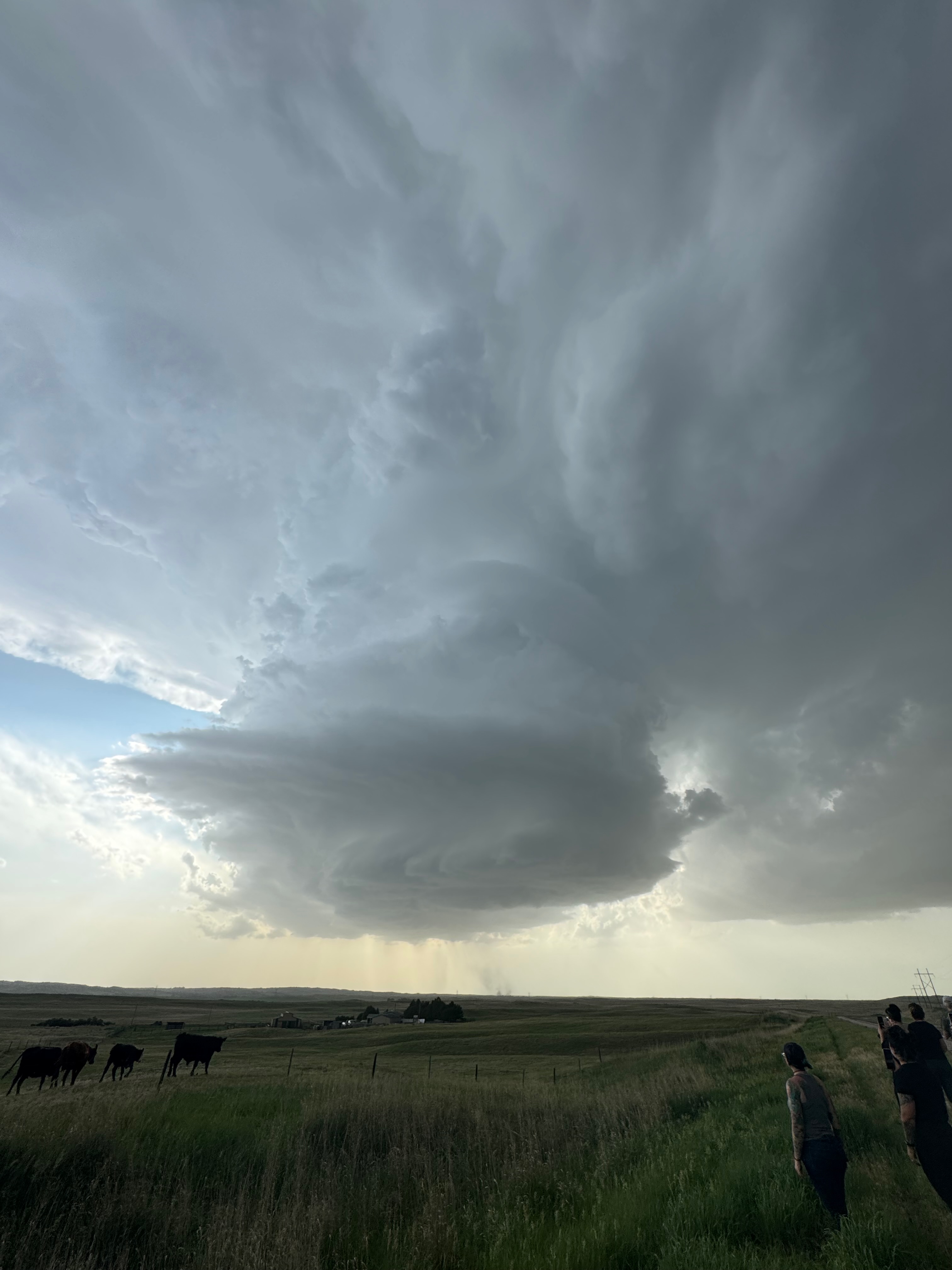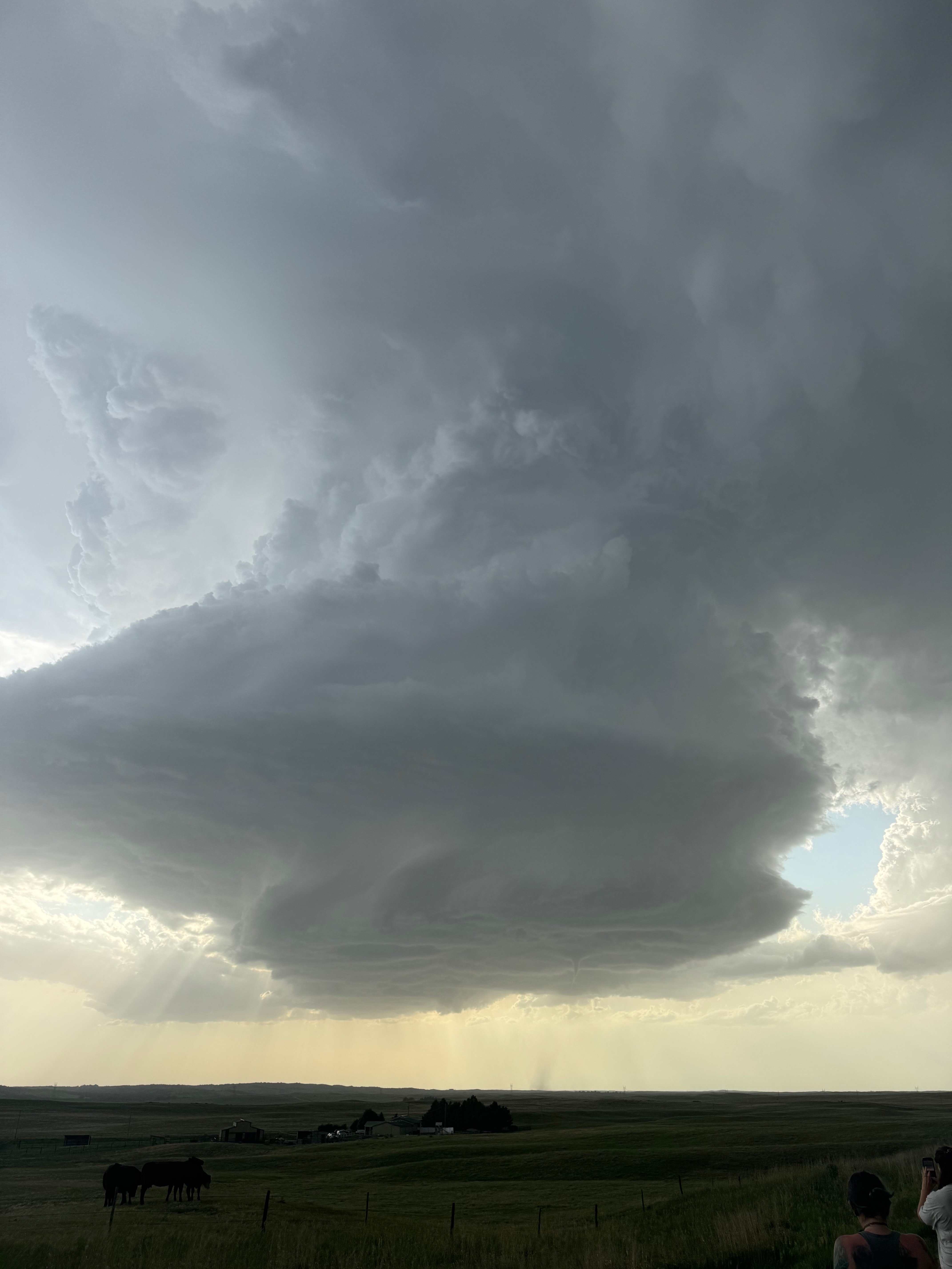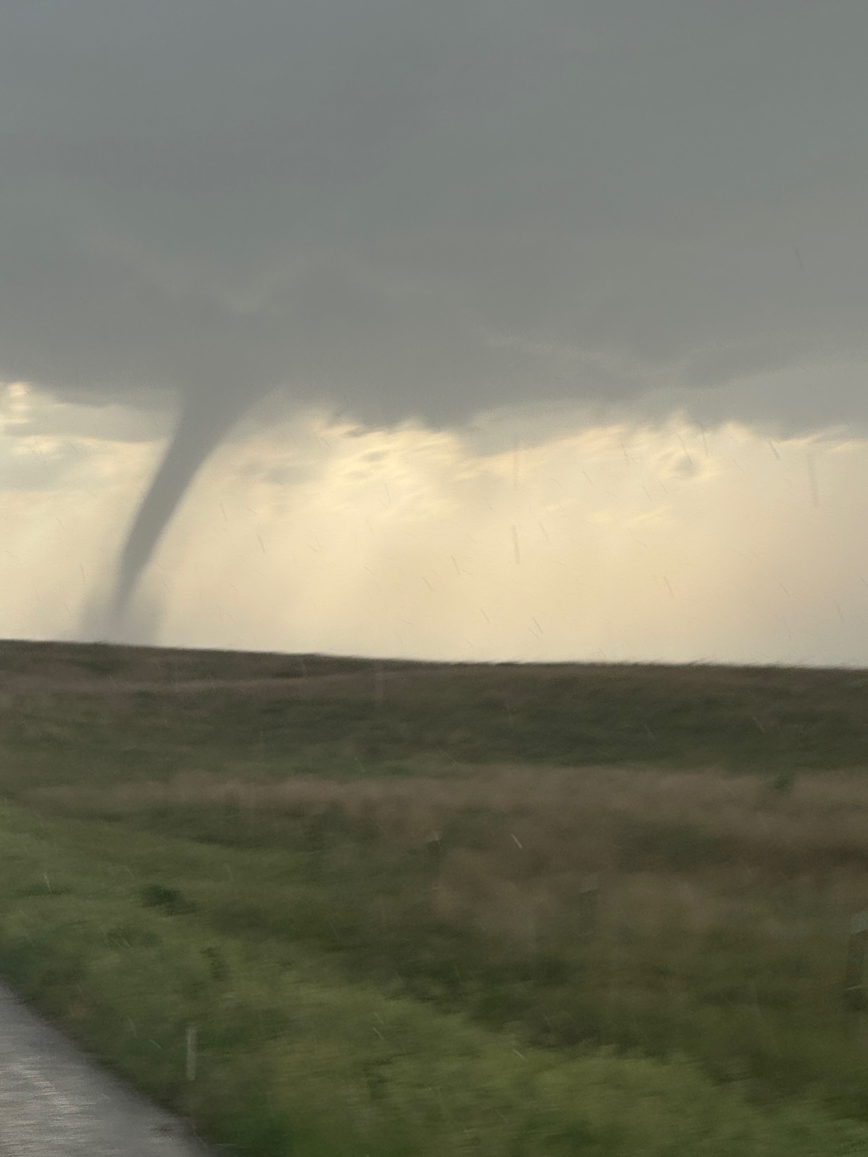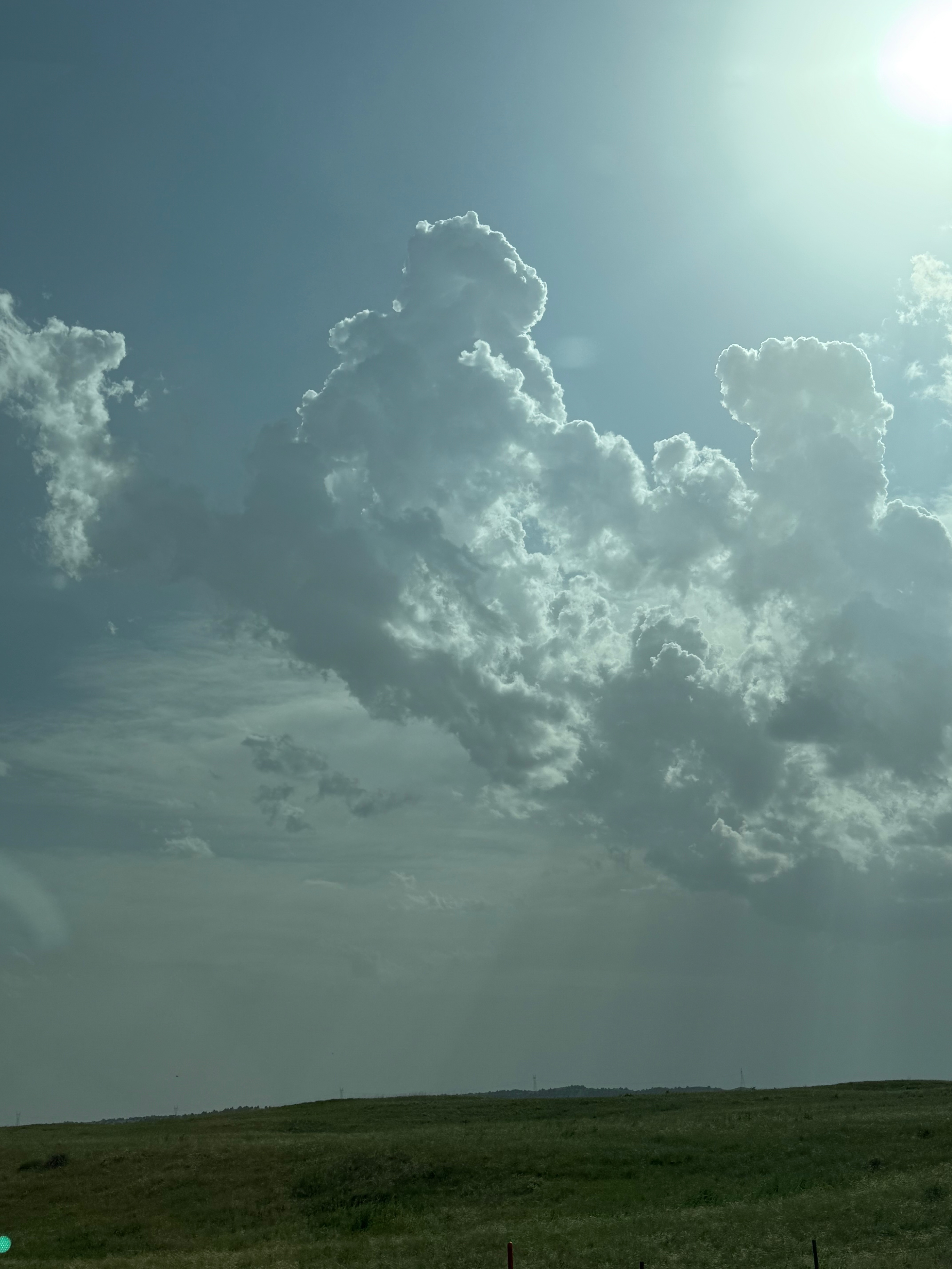Around the time that we were approaching the storm base on Highway 23, Chris Gullikson shared his view of the storm with me, see image below. This was a very healthy storm! Chris and crew were still a good 30 miles or so distant, along I-80 and west of Sutherland. They would soon dive south from Sutherland to Wallace, and turn east on 23 towards Dickens and come up to the west/back side of the storm in time.