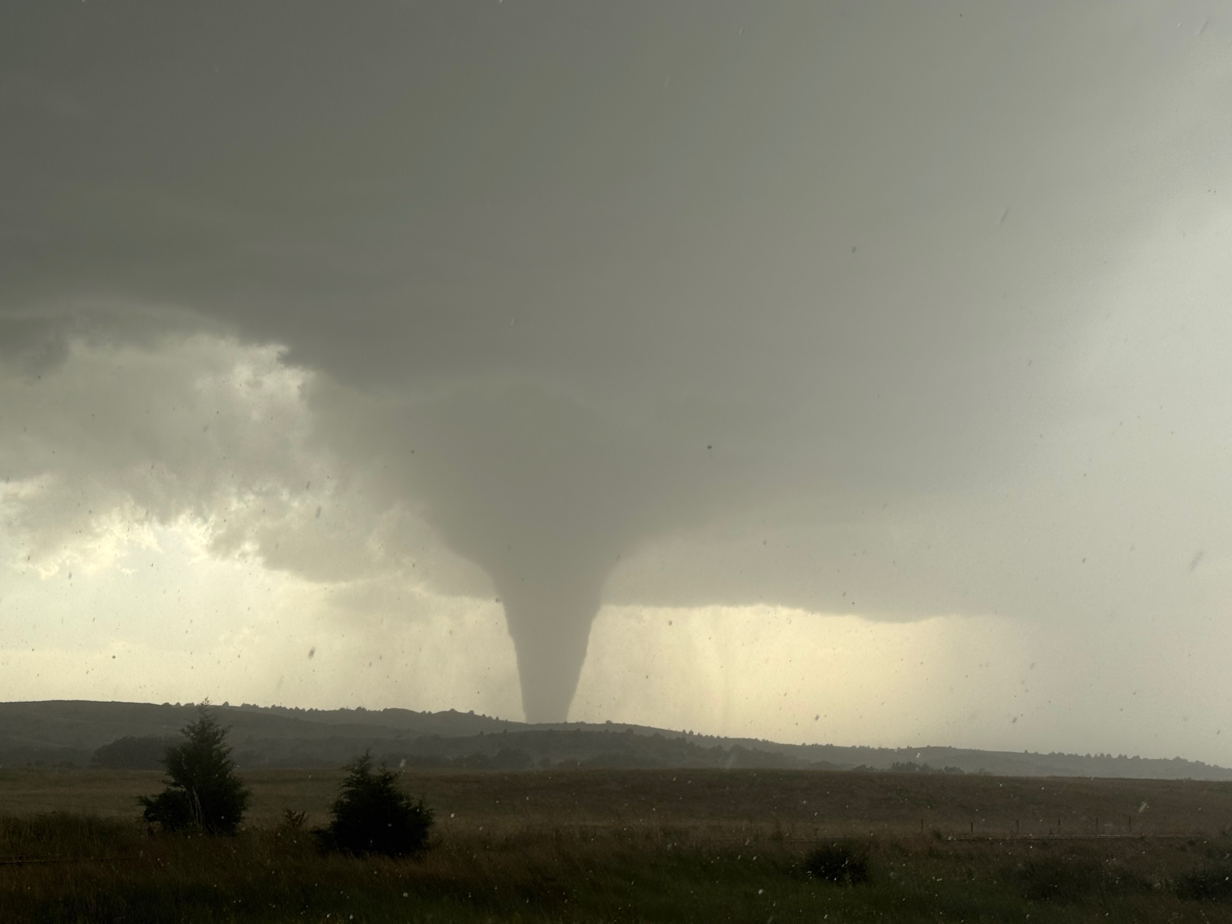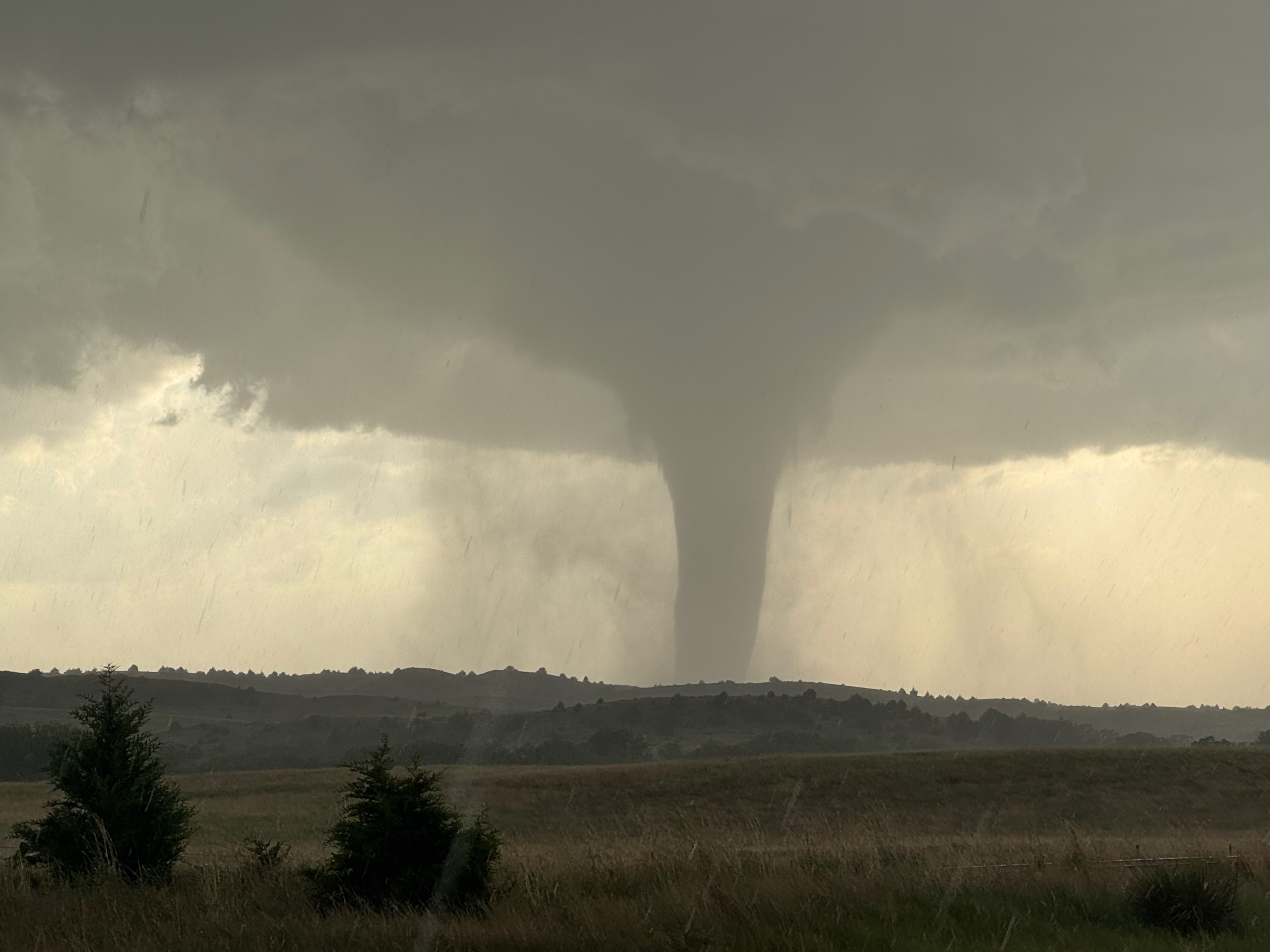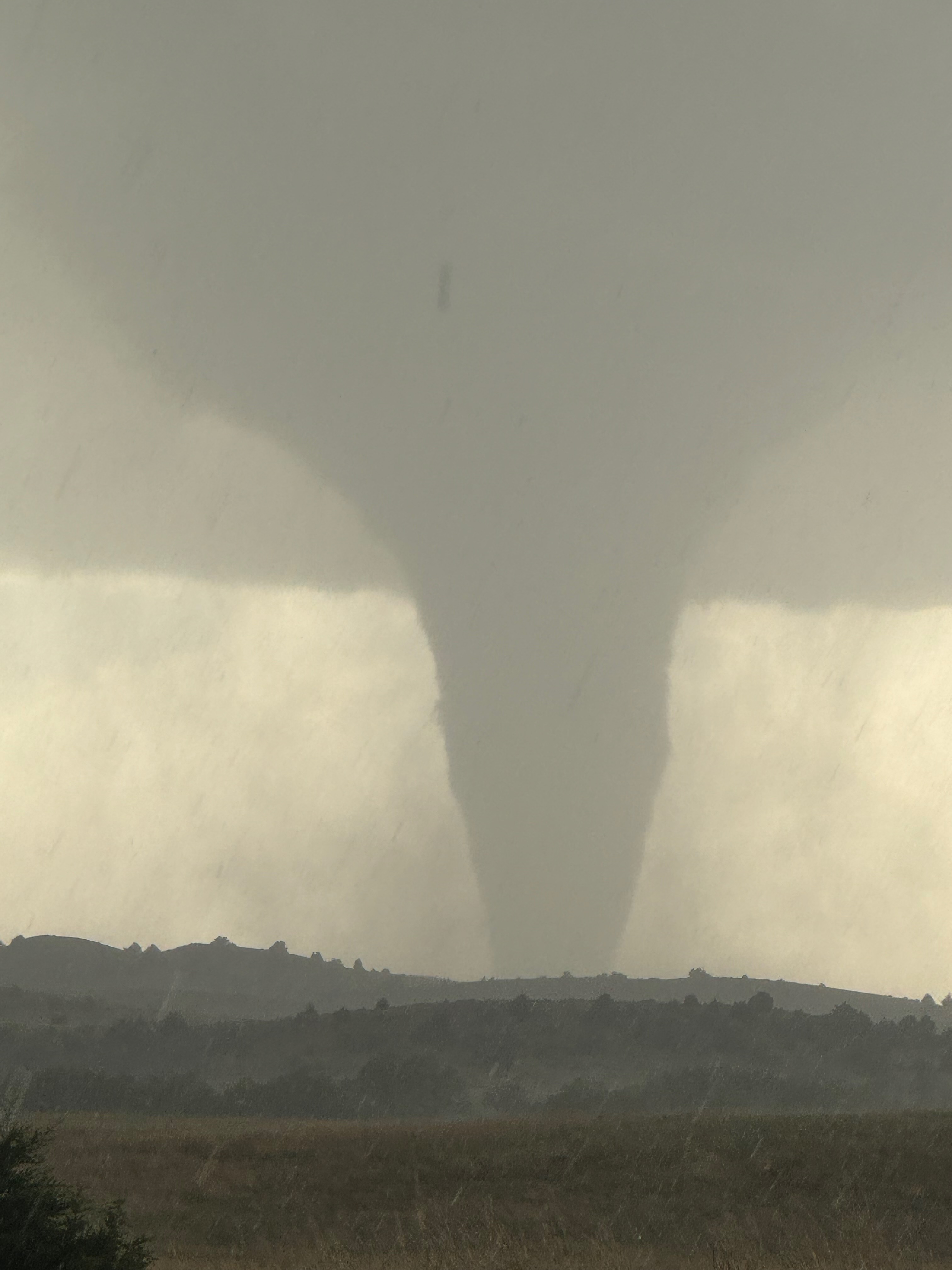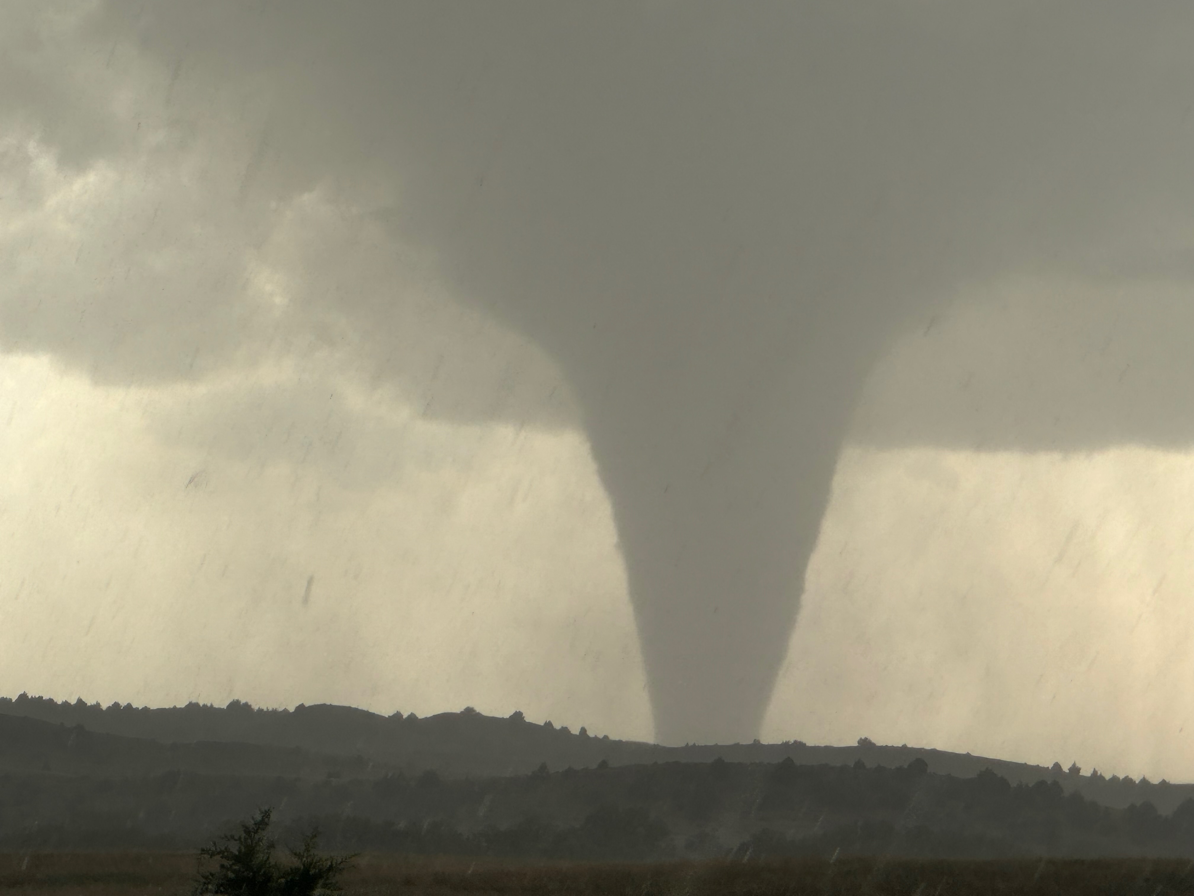 The tornado was gone by around 8 p.m. CDT, close to an hour after the wispy dusty stirrings beneath the base began, a few miles east of Dickens. The second tornado moved mostly to the south, winding up a few miles southeast of Dickens.