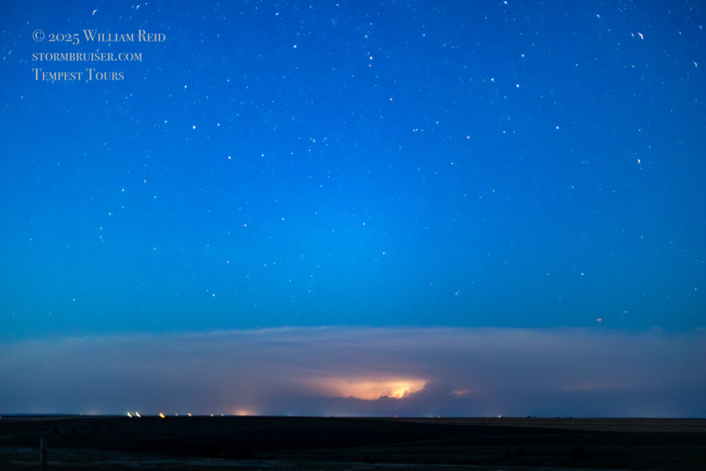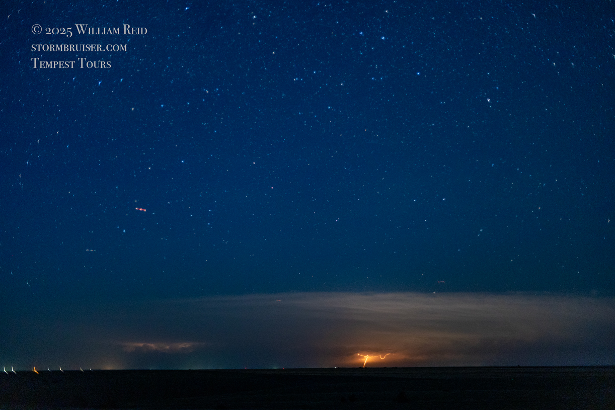 Below are additional images off of my Canon R6 camera with the fast 50mm lens, made during our “sprites” run north of Oberlin on the evening of June 19th. The distant supercell at this time was over Valley County, Nebraska, approximately 140 miles to our northeast. See the SPC mesoscale discussion at 10:07 p.m. linked below for more details on the storm.