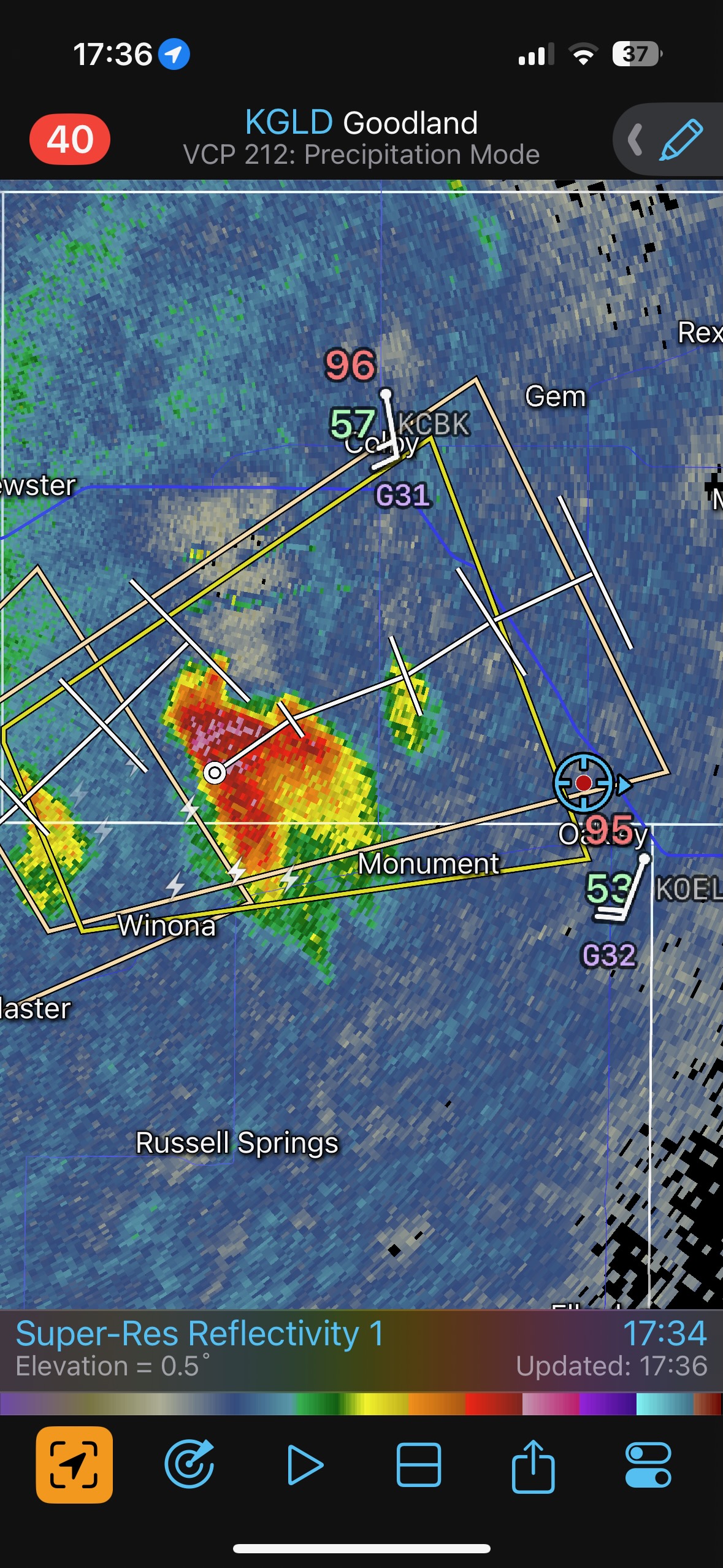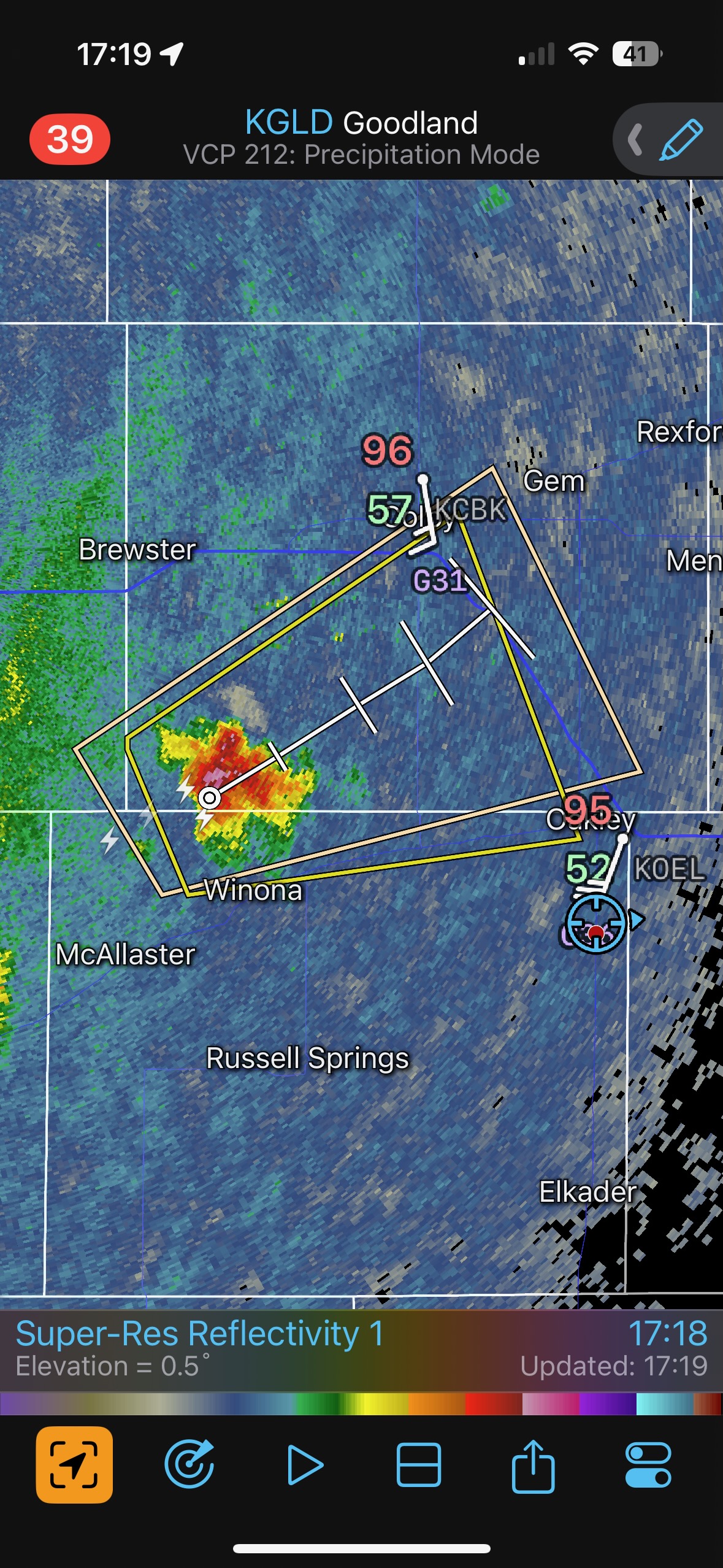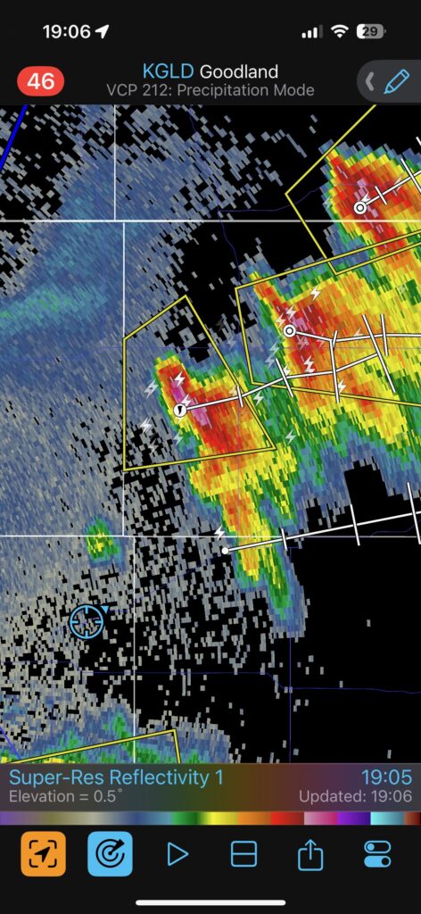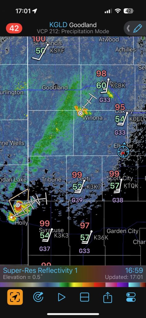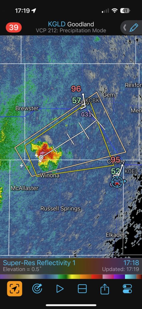 The iPhone images and screenshots below are from the 19th, from about Winona to west of Norton in Kansas. Temperatures were nearing 100F, which is good if you want high-based storms.
