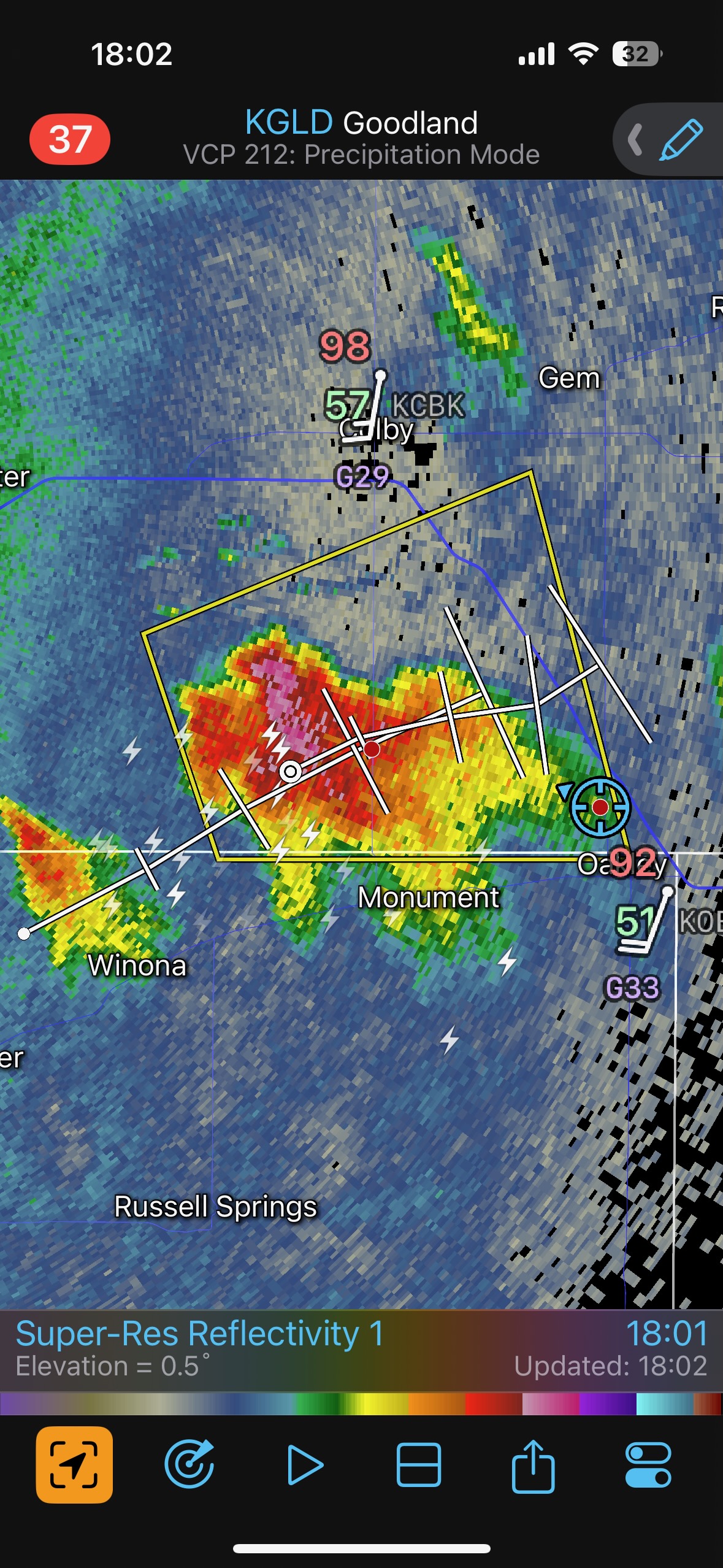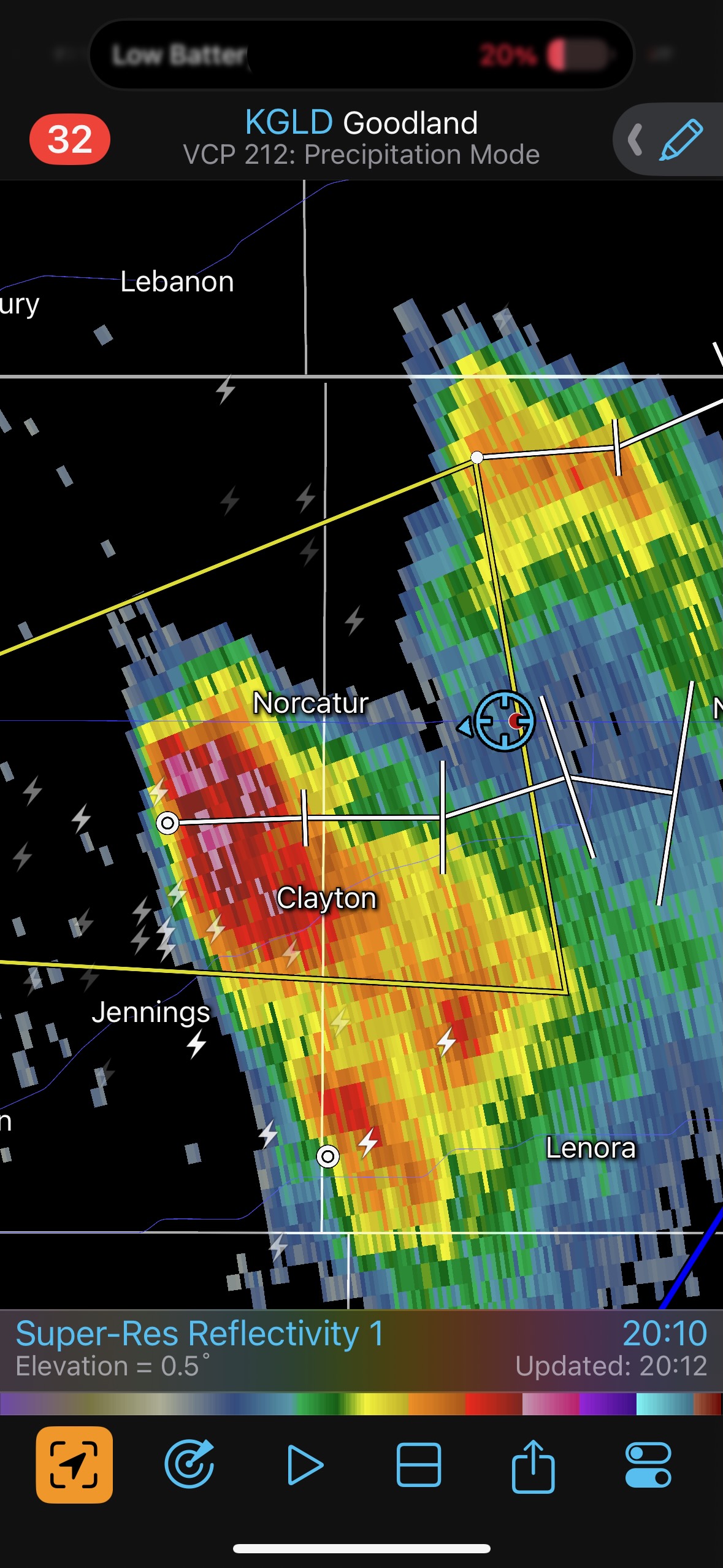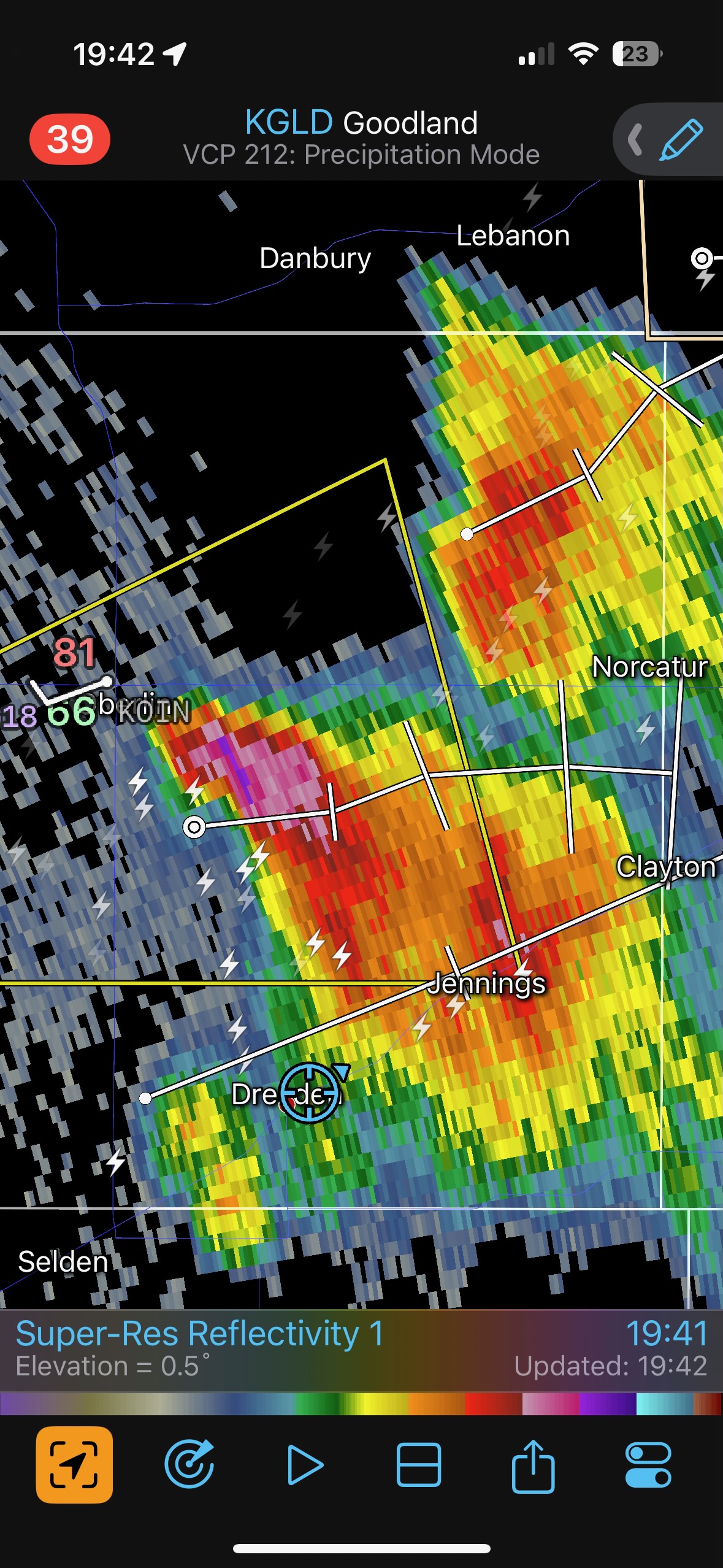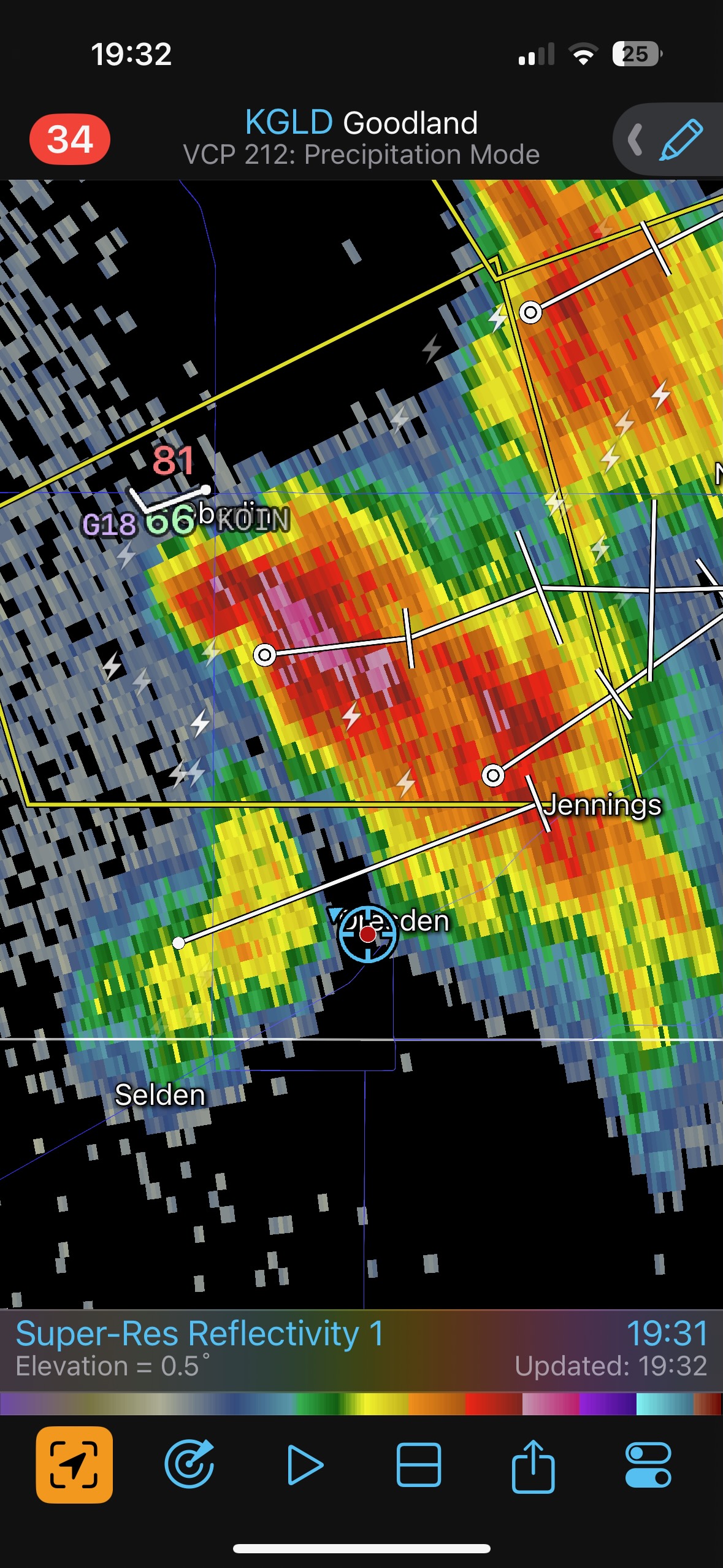 The iPhone images and screenshots below are from the 19th, from about Winona to west of Norton in Kansas. Temperatures were nearing 100F, which is good if you want high-based storms.