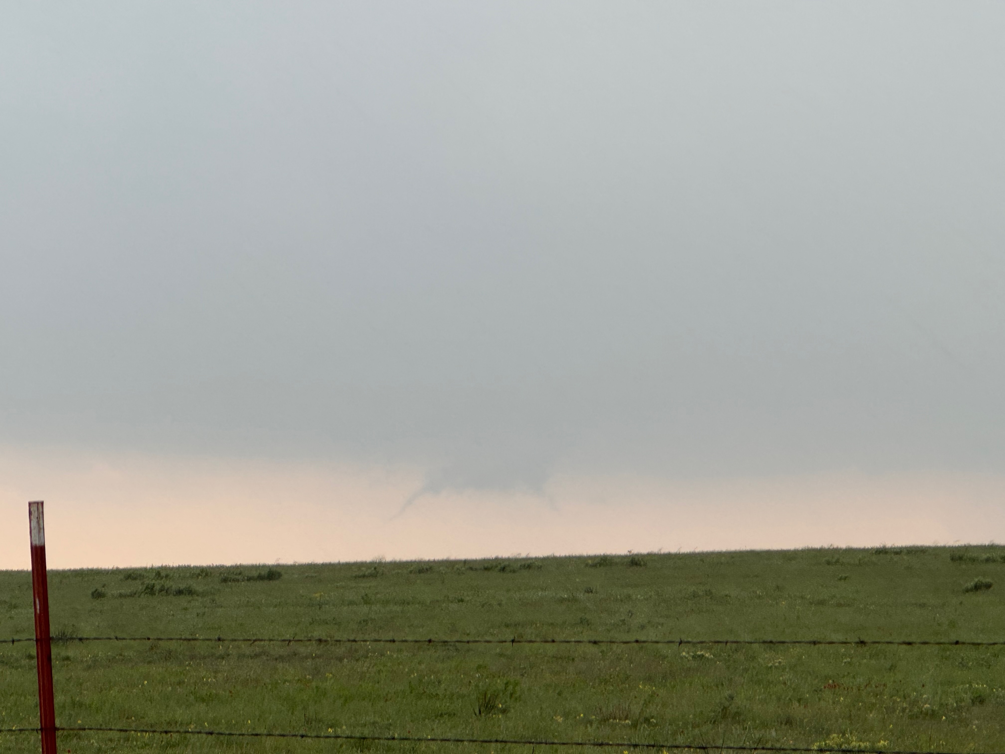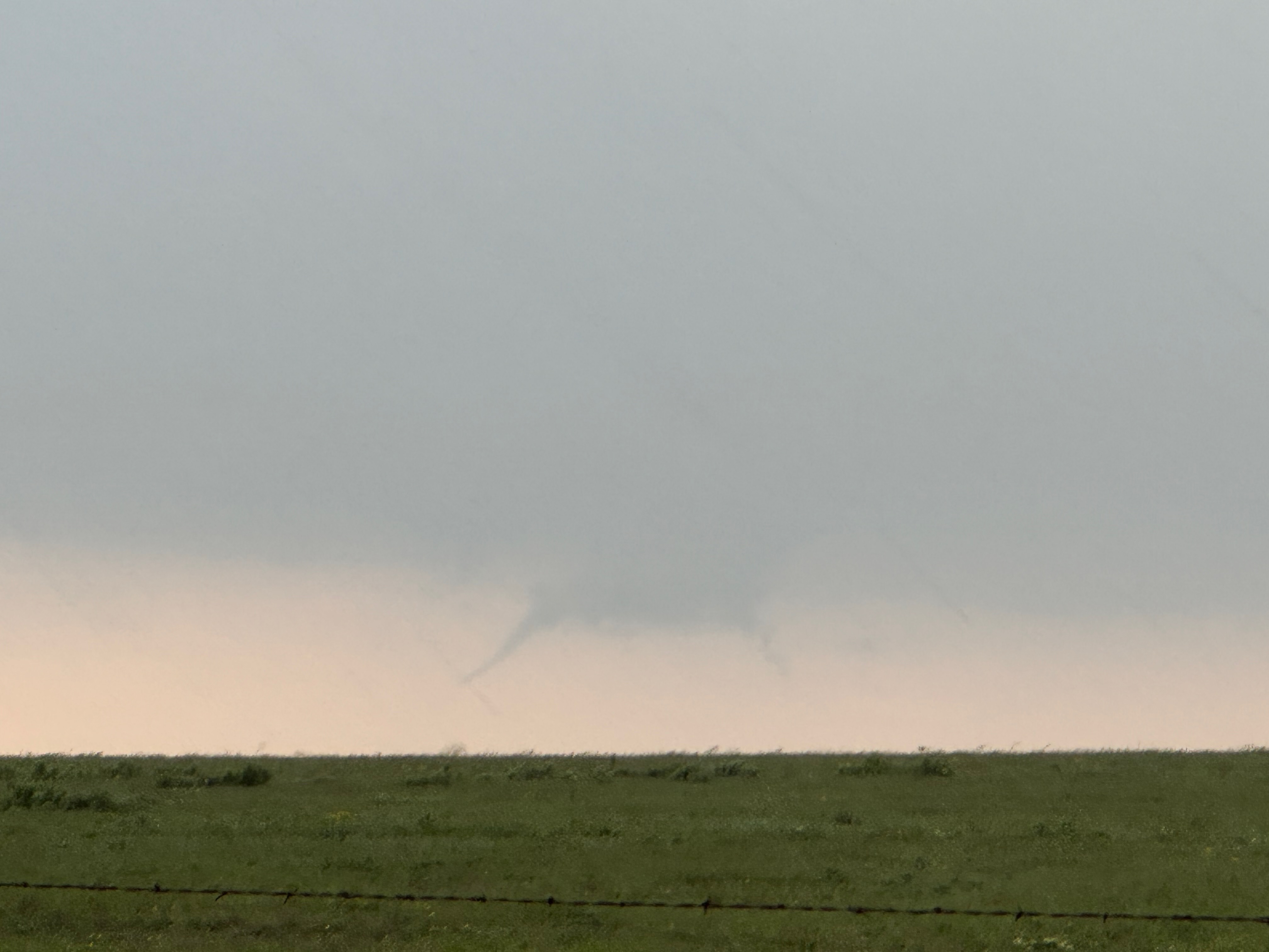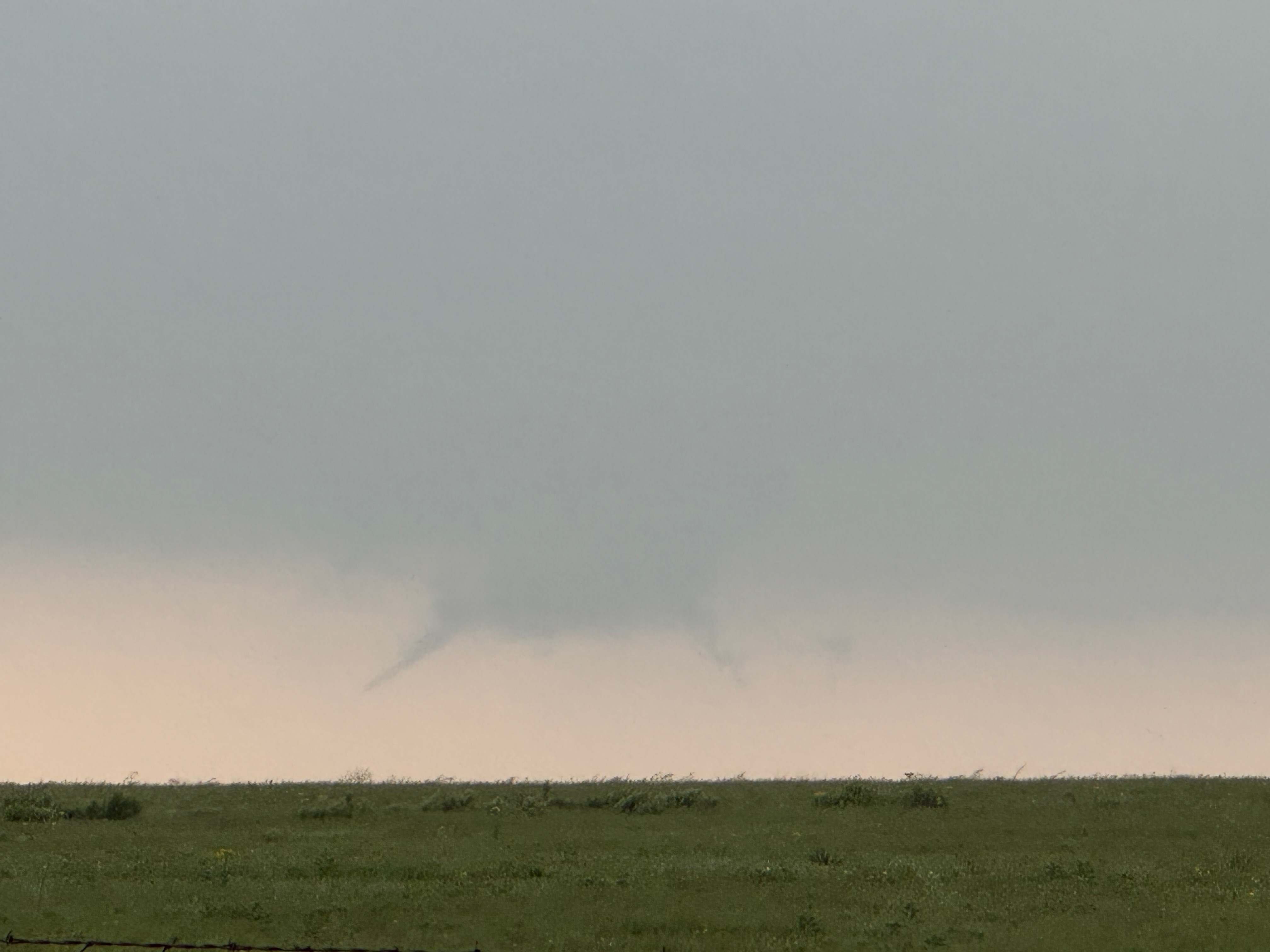 The storm base and tornado are moving left-to-right from our perspective here. The tornado roped out right about the time that it was due west of us, close to U.S. 60 and just west of Arnett.