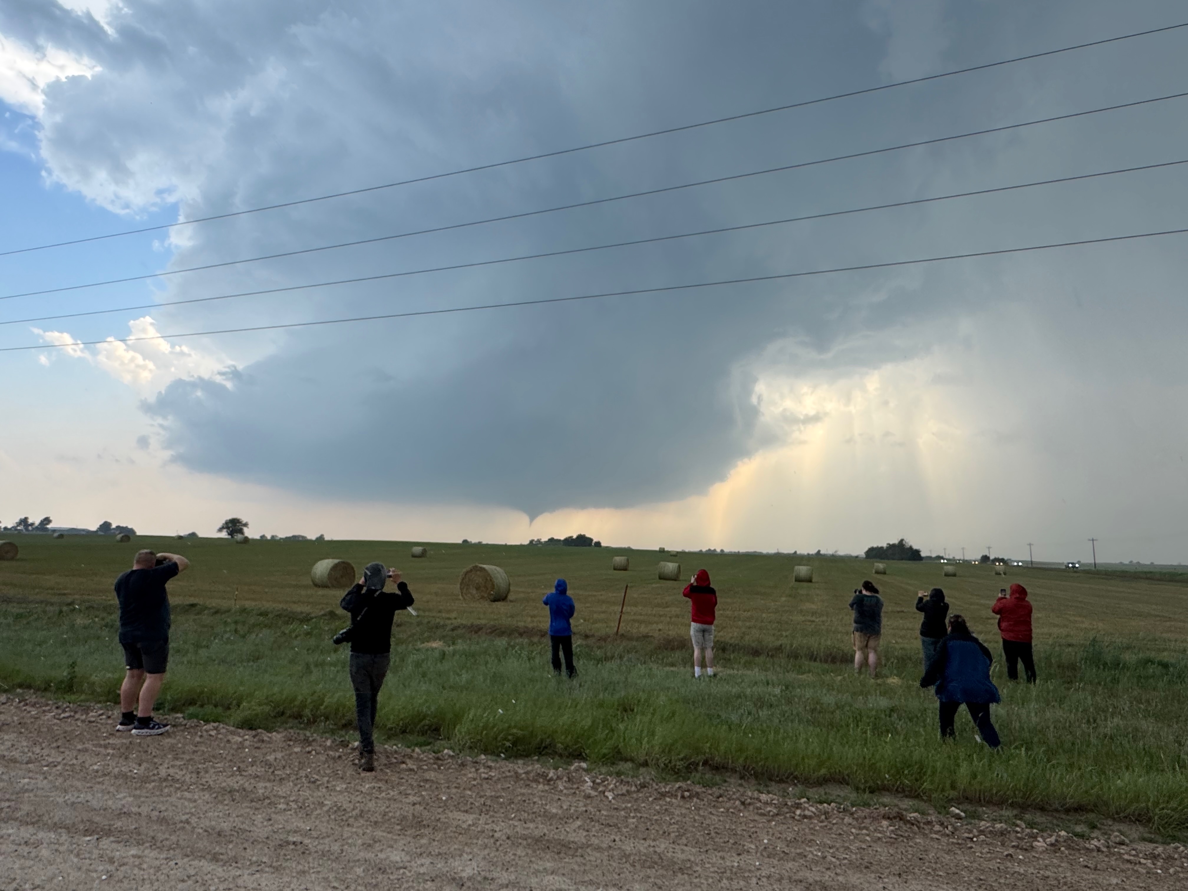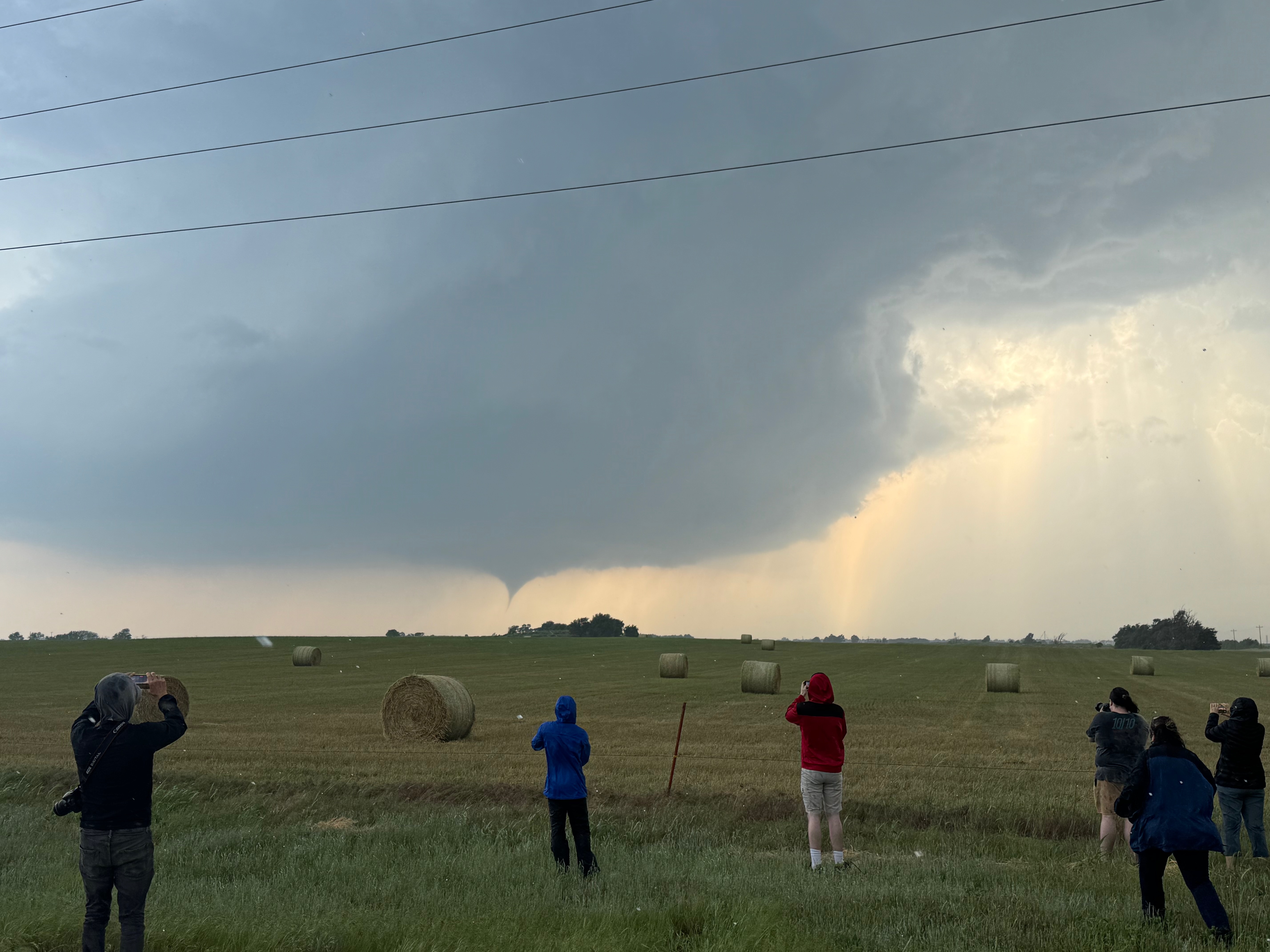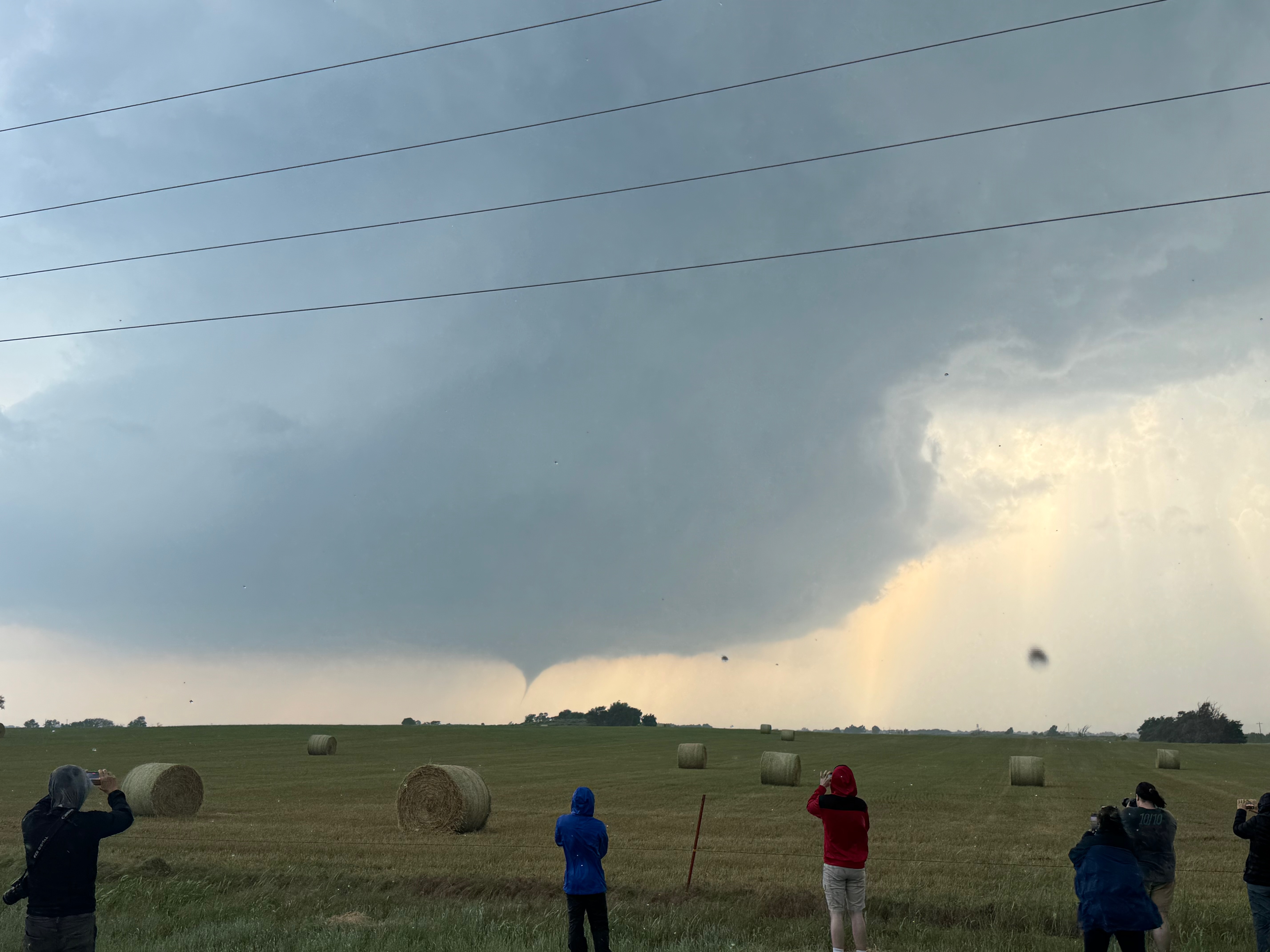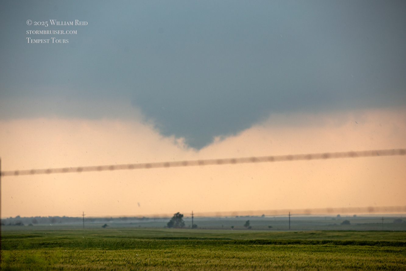 The storm base and tornado are moving left-to-right from our perspective here. The tornado roped out right about the time that it was due west of us, close to U.S. 60 and just west of Arnett.
