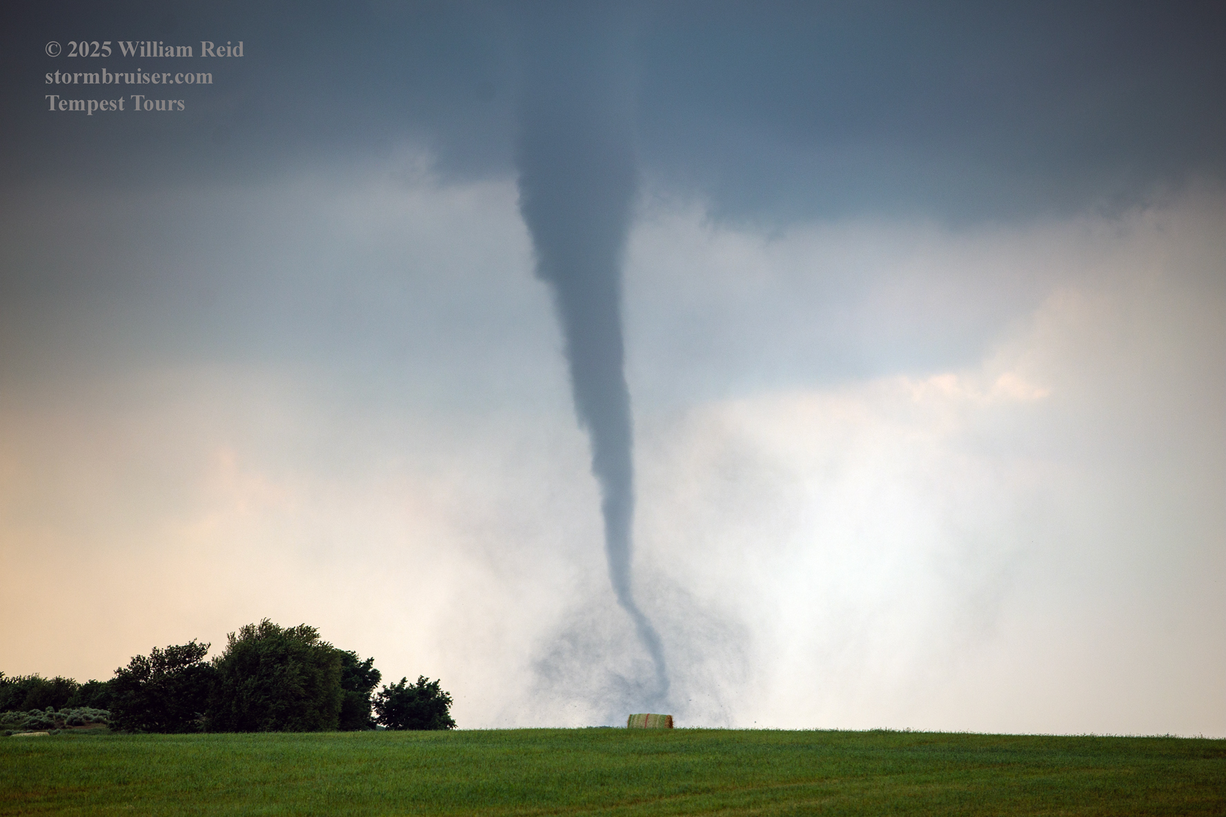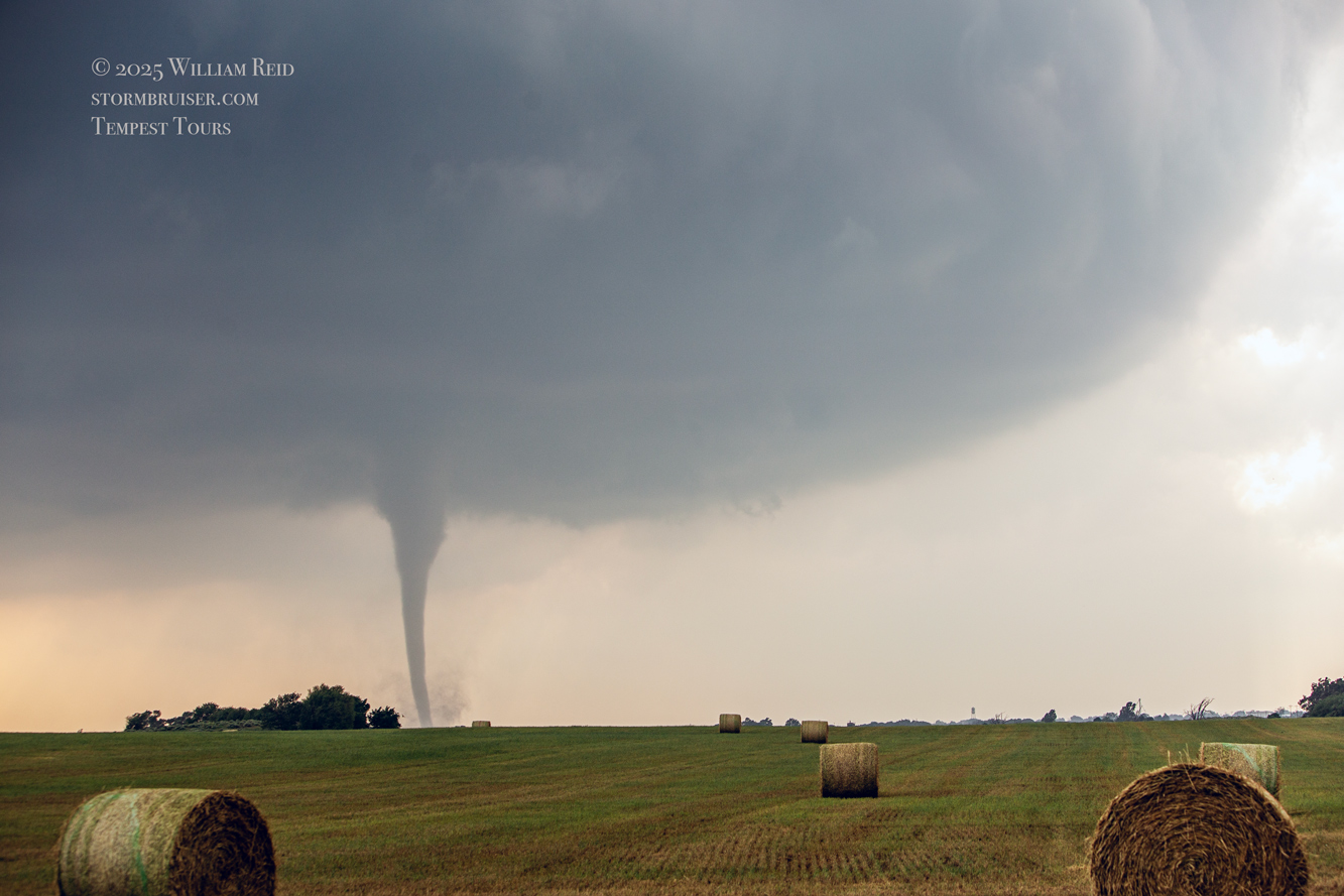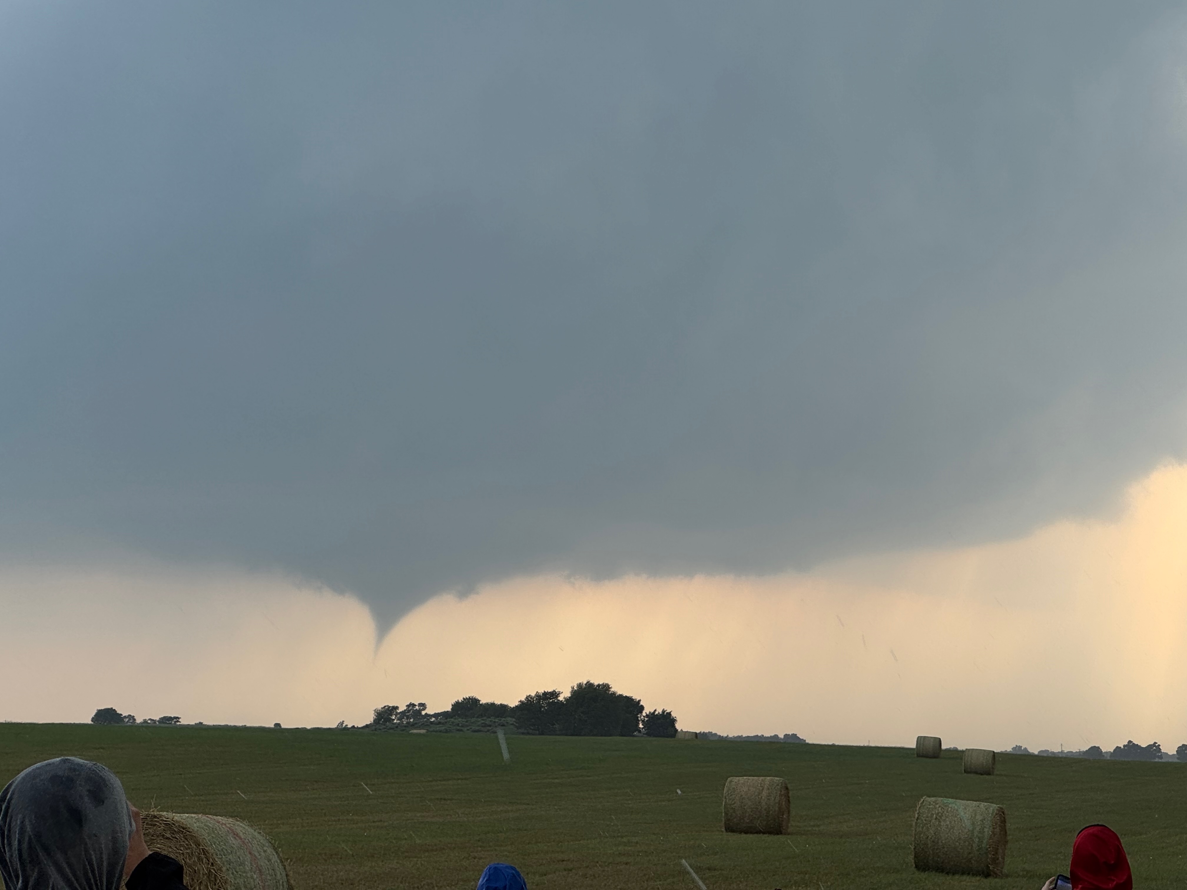 It was close to 5:30 p.m. CDT now (see radar grab above), and once again a slender tornado developed. This one persisted for several minutes at least, and the storm edged nearer. See pics below.