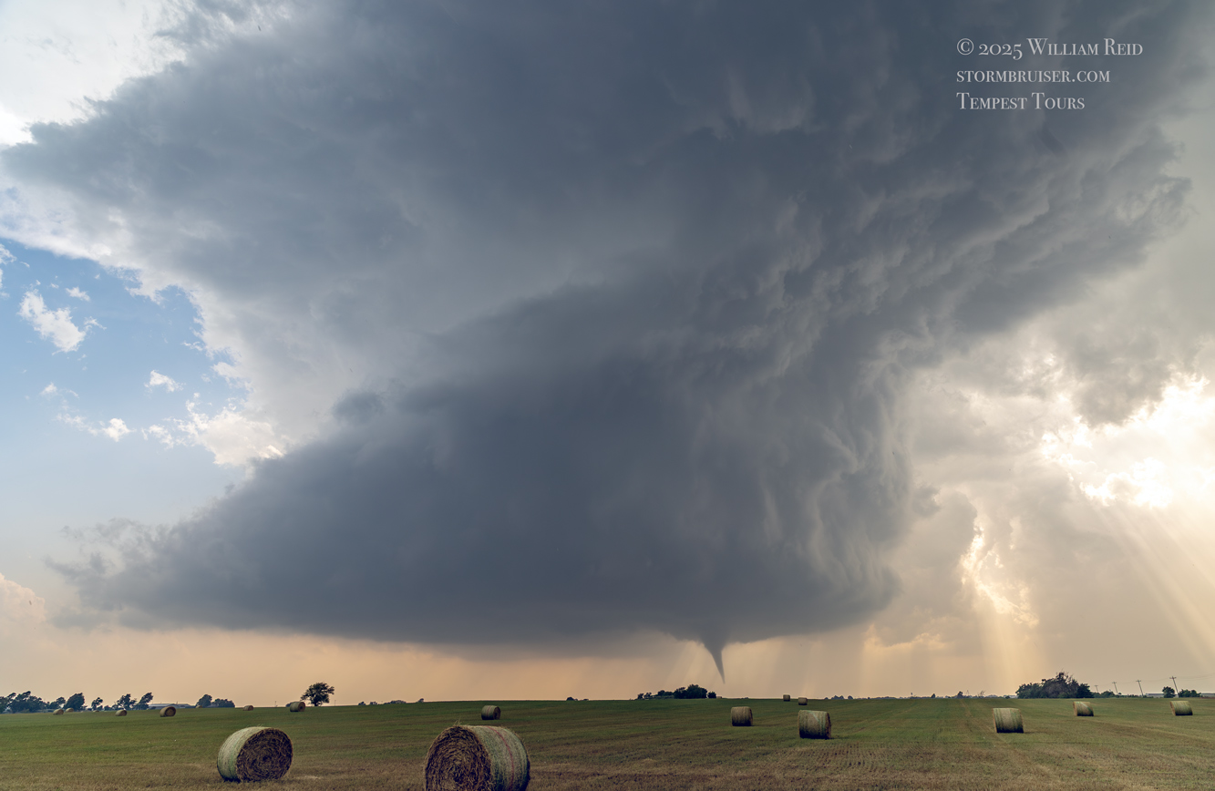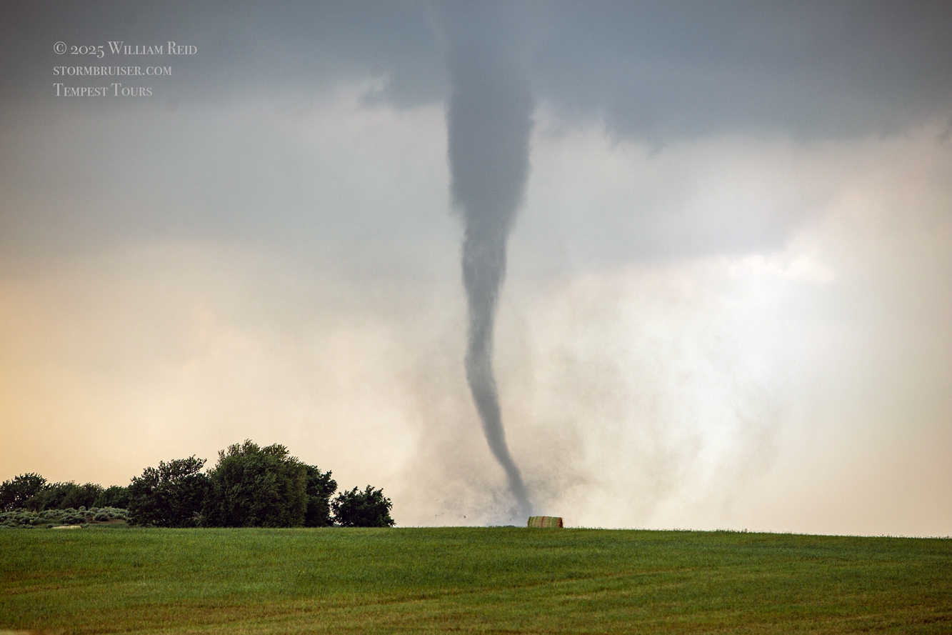 The Arnett tornado lasted a good 10 minutes, and luckily it quit before it reached the town. We again were getting rained on a little, but it wasn’t nearly enough to spoil the show. Chasers who ventured close to the tornado, west of Arnett, were battling two-to-three inch hail.