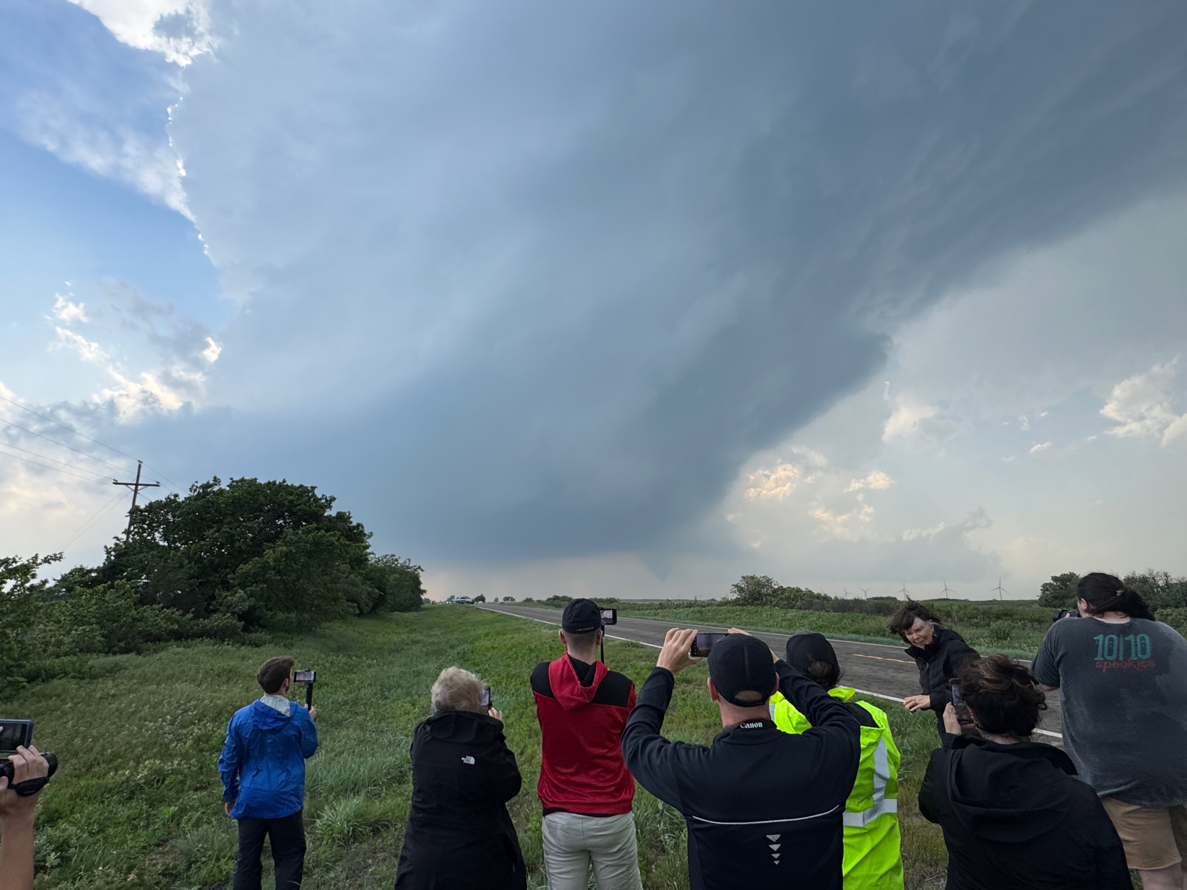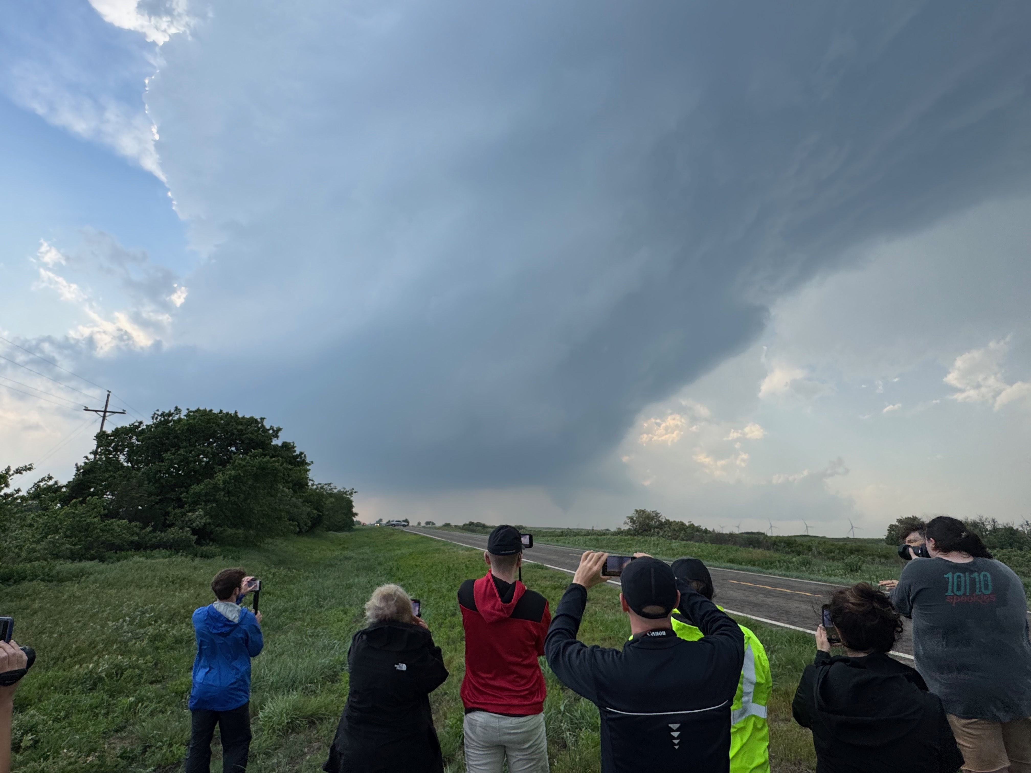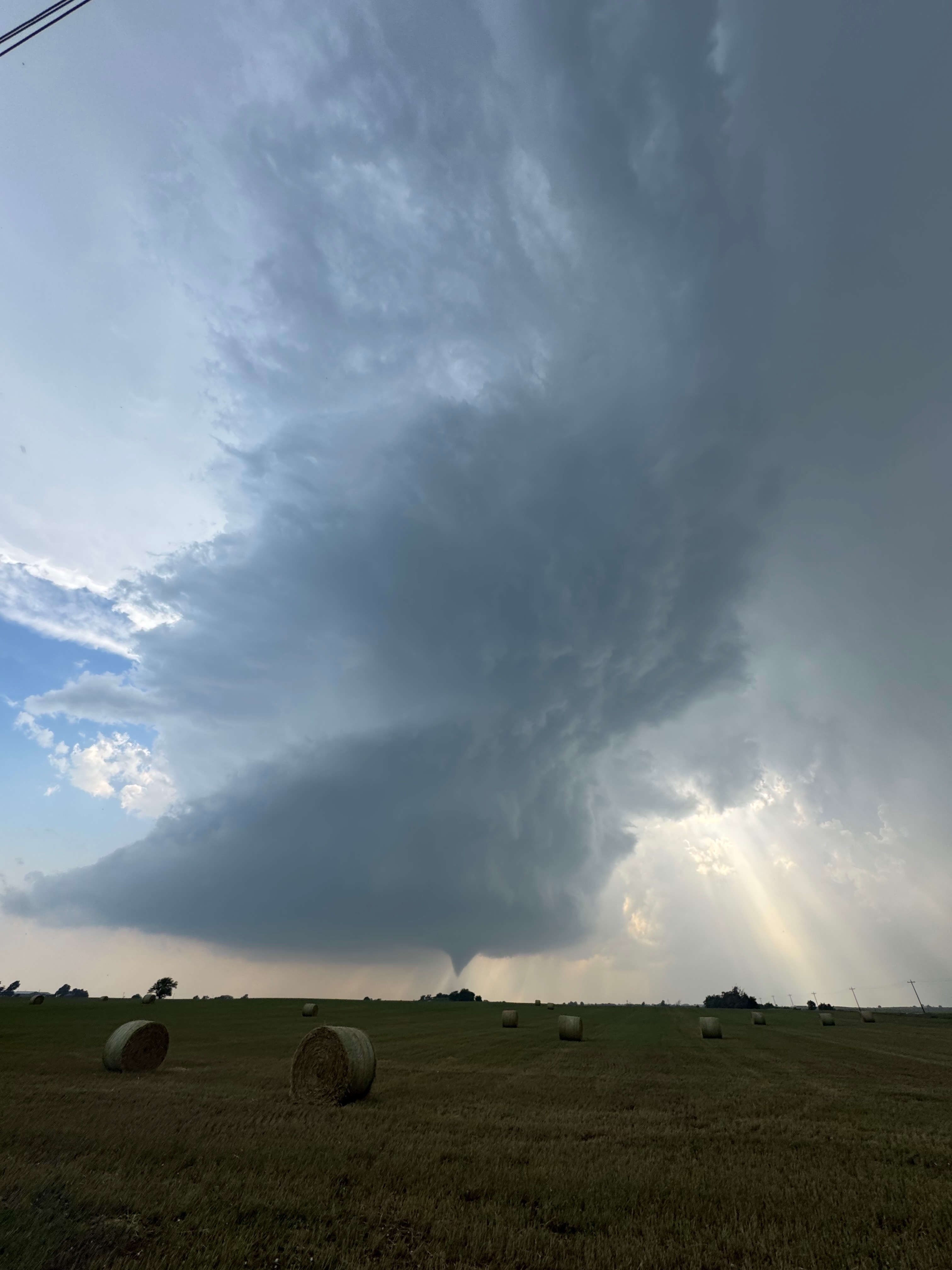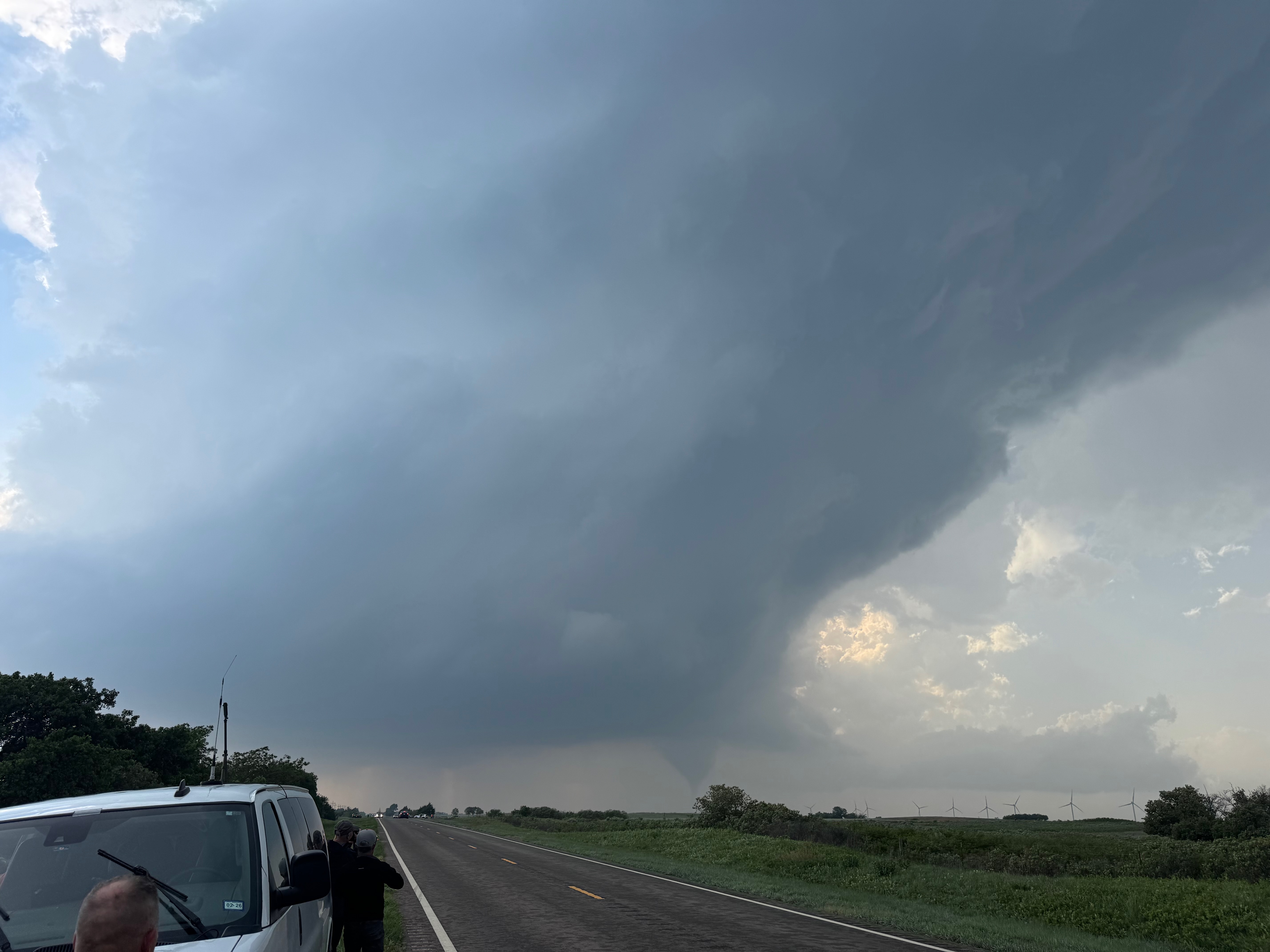 We were moving quickly east again once this most-recent tornado was done, and about a half hour later we were north of Vici on 34, east of the supercell, and looking for a decent high point in these hills to watch its approach. As far as I know, the storm did not produce another tornado during this repositioning. The iPhone images below show the storm when west of Sharon and later near Mooreland.